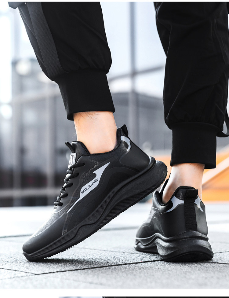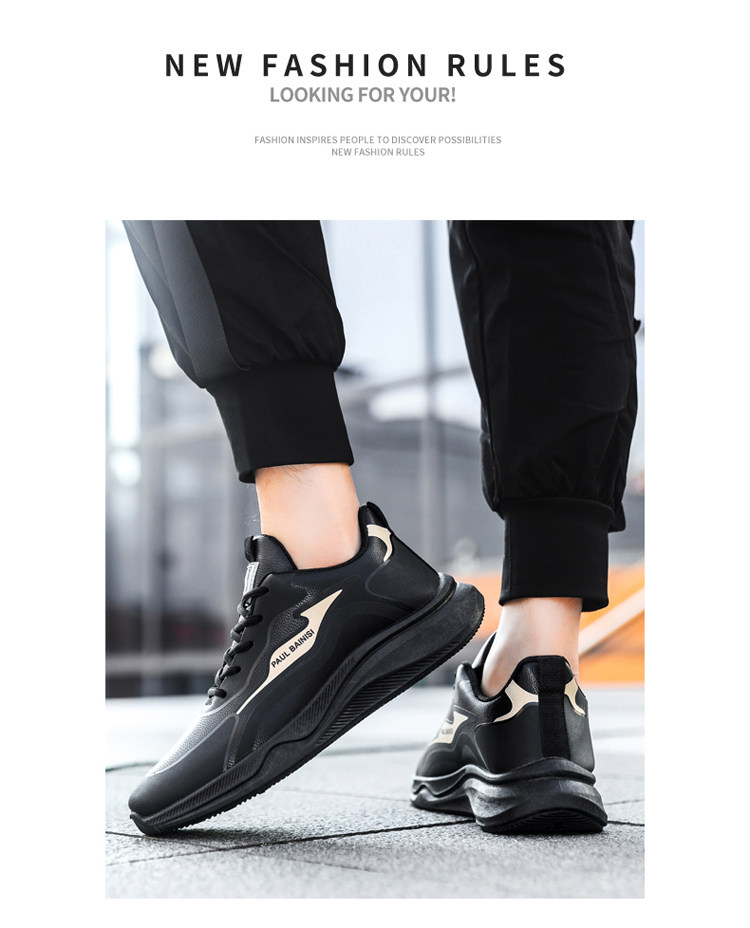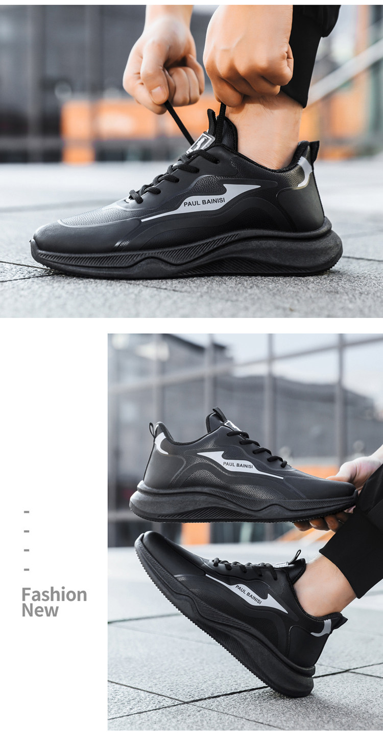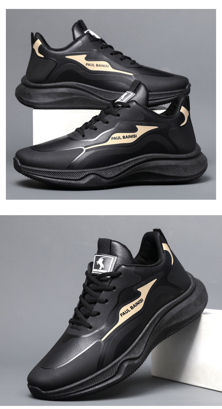 Paul Daflyn Men's Leather Shoes Spring and Autumn Men's Thick-Soled Non-Slip Running Waterproof Soft-Soled Casual Sports Shoes for Men