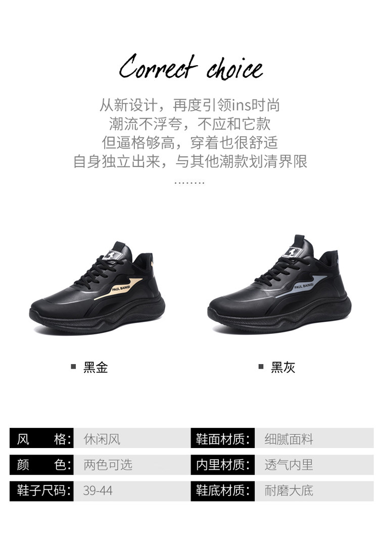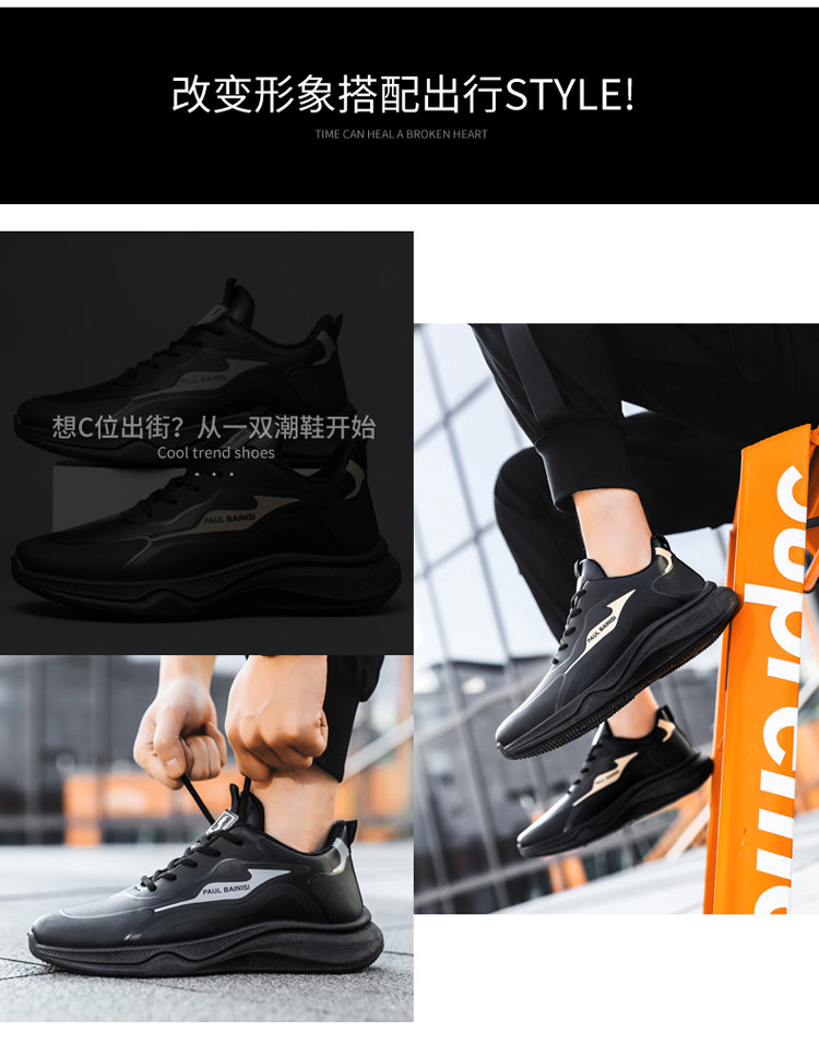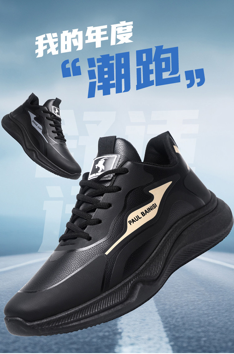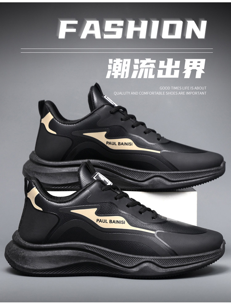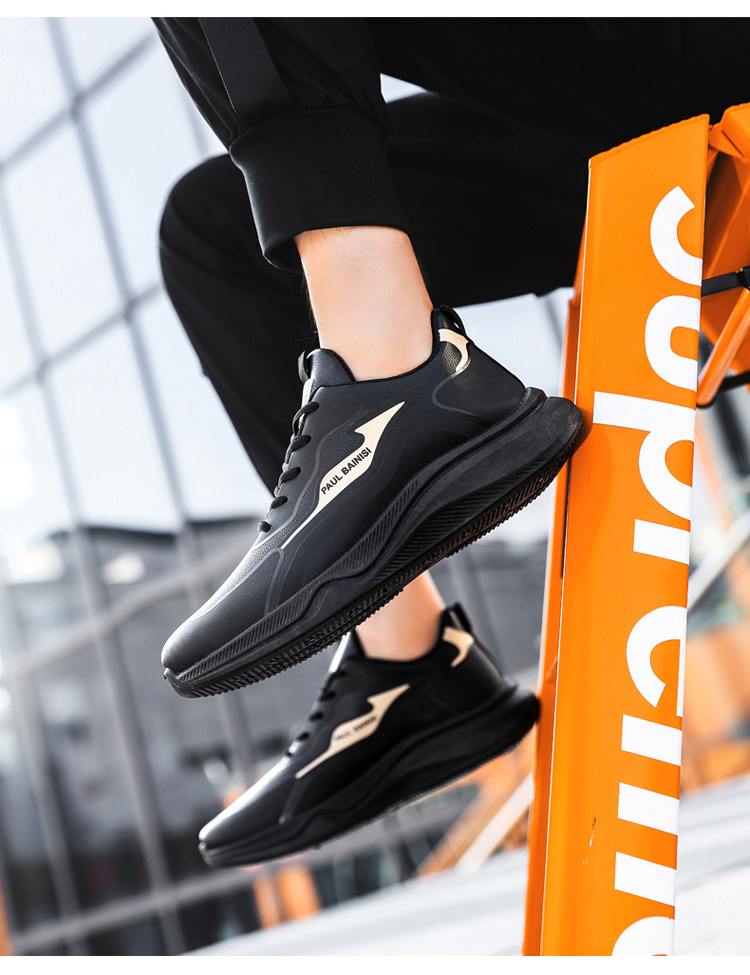 Paul Daflyn Men's Leather Shoes Spring and Autumn Men's Thick-Soled Non-Slip Running Waterproof Soft-Soled Casual Sports Shoes for Men