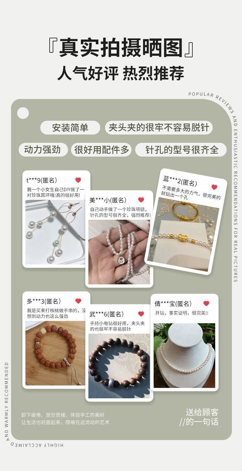 | Color Classification | Suitable for Drilling Holes in Materials Like Soap Nuts, Pearls, Walnuts, and Shells.,Dual-Bearing Design, High Concentricity, Accurate Drilling Without Deviation,ãLightning Deliveryã Orders Placed Now Ship Out Within 24 Hours!,âââãTop Choice of 90% Customersã12V Corded Digital Display Model ãTouchscreen 5-Speed Adjustmentã+ Punching Kit,âââ[Store Manager Recommendation] Lithium Battery Exquisite Aluminum Body Model [8-Speed Speed Adjustment/High-End Boxed] + Punching Package,12V Plug-In Model [Fixed Speed Type/180 Motor] + Punching Package,12V Plug-In Model [Fixed Speed Type/280 Motor] + Punching Package,â Lithium Battery Digital Display Model [8-Speed Adjustment/Front Light Illumination] + Punching Kit,â High-Power Lithium Battery Model [8-Speed Adjustment / 380W Motor] + Punching Kit,160W Plug-In Model [Stepless Speed Regulation] + Punching Package,185W Plug-In Model [6-Speed Speed Adjustment] + Punching Package |
