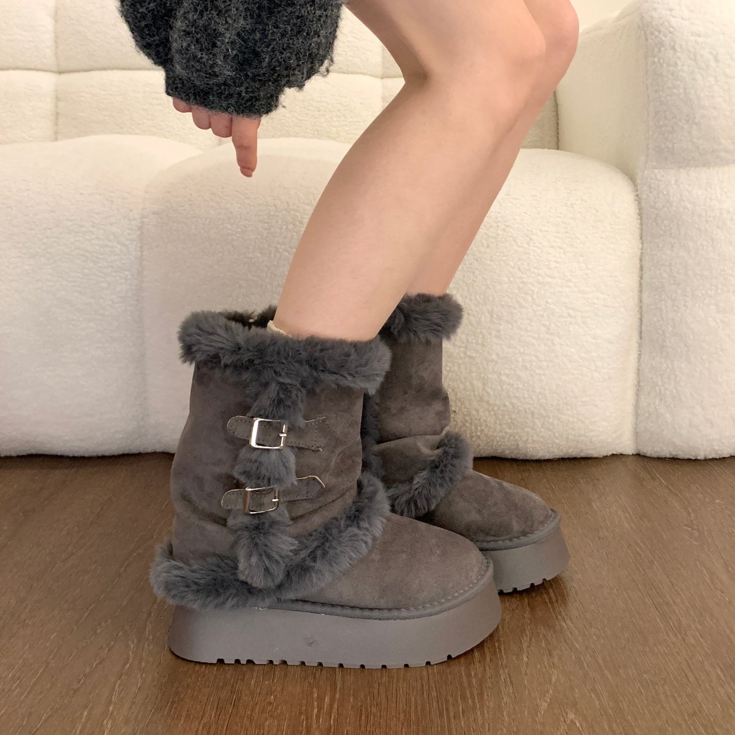 Thick-Soled Mid-Calf Fleece-Lined Thickened Snow Boots for Women, 2025 Winter New Style, Leather and Fur Integrated Short Boots, Furry Northeast Cotton Shoes