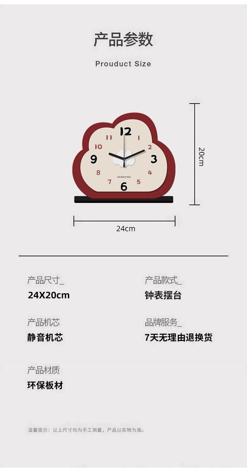 Modern Simple Cloud-Shaped Desk Clock Red Creative Clock Desktop Decoration Clock Ornaments New Fashion Desk Clock