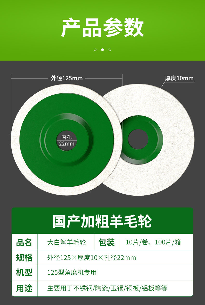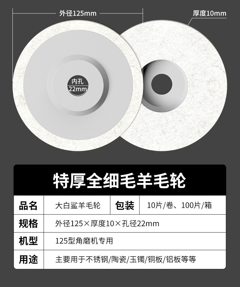 Great White Shark Wool Polishing Wheel 125 Type Mirror Polishing Stainless Steel Metal Stone Grinding Disc Whole Box Grinding Disc