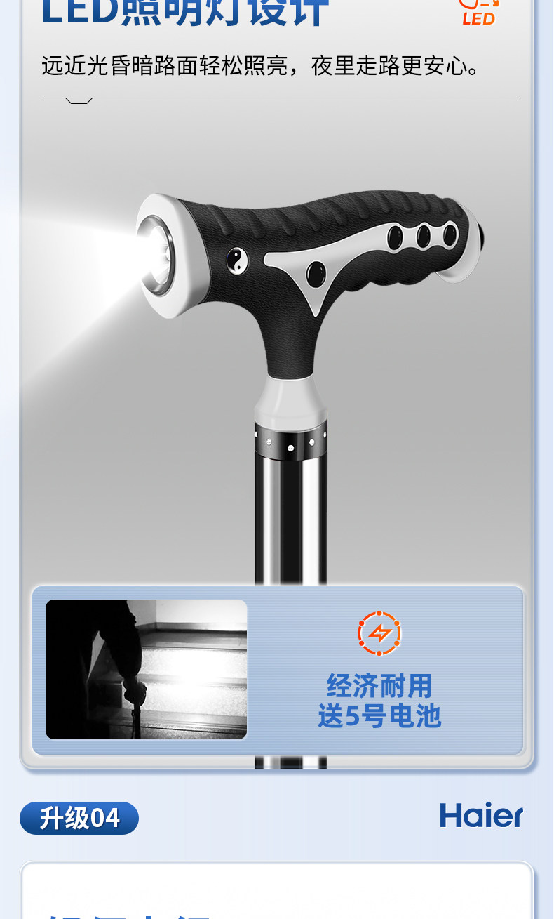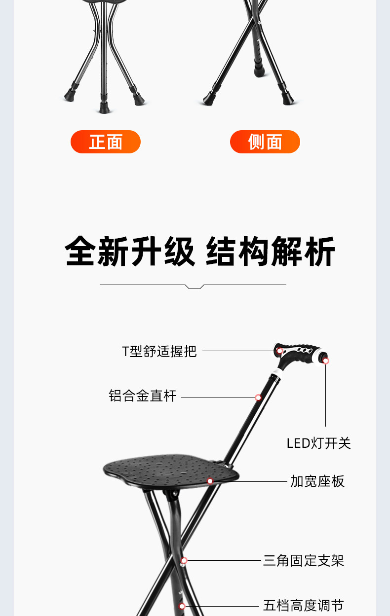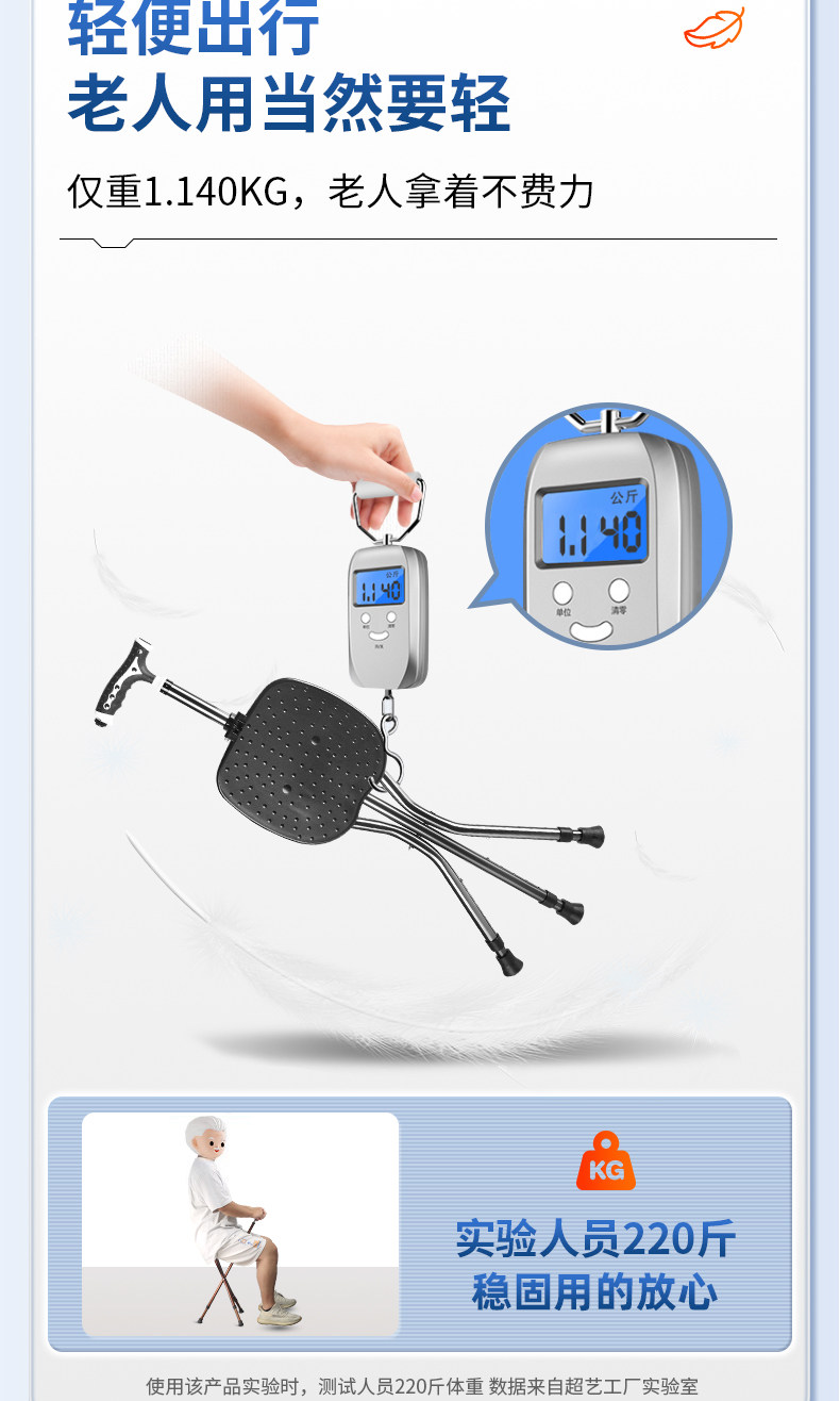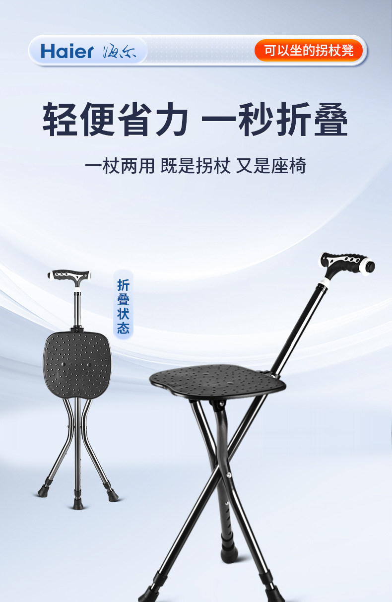 Haier Crutch Chair, Special for the Elderly, Non-Slip Crutches, Rehabilitation Walking Crutches, Stool, Lightweight, Stable, Foldable and Portable