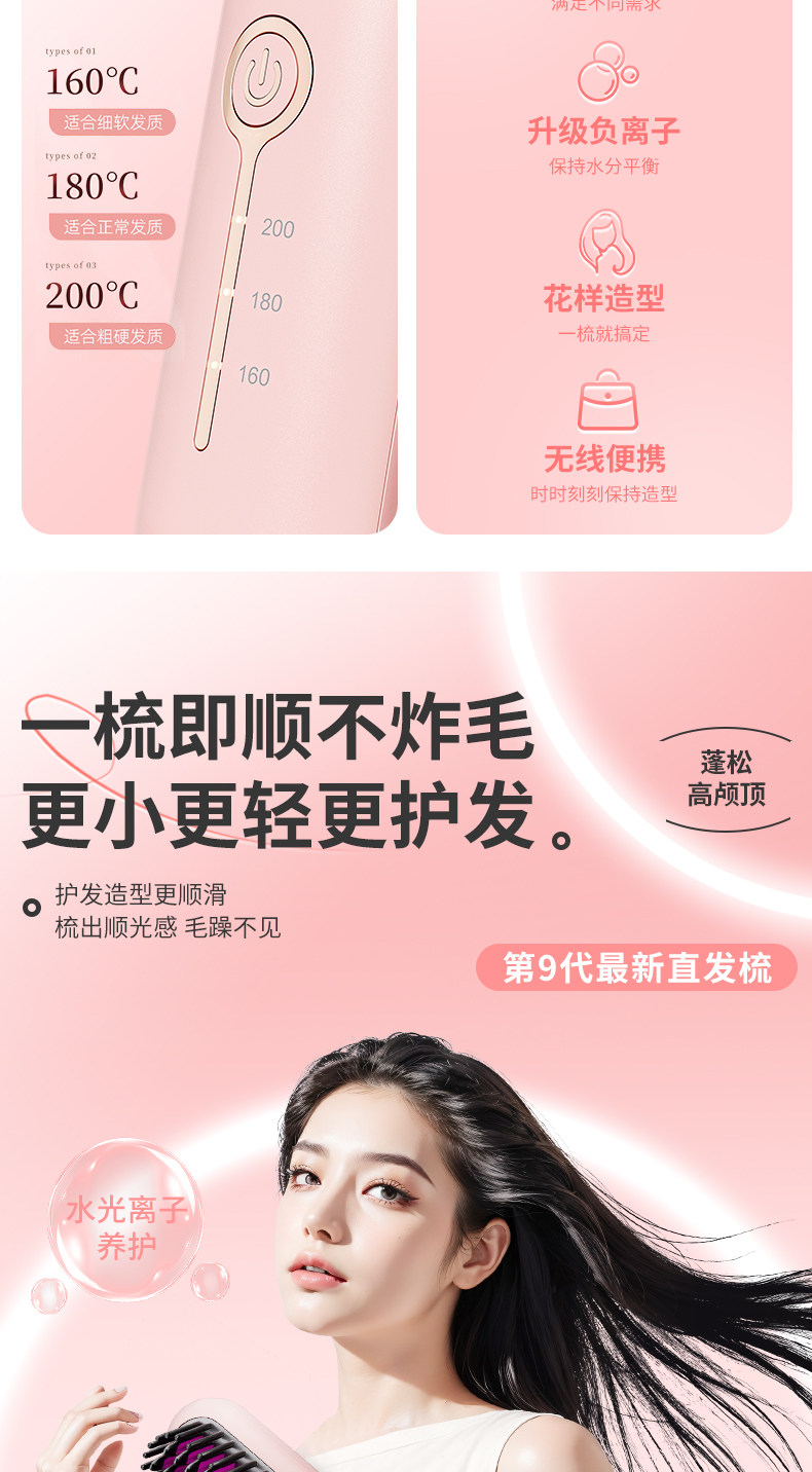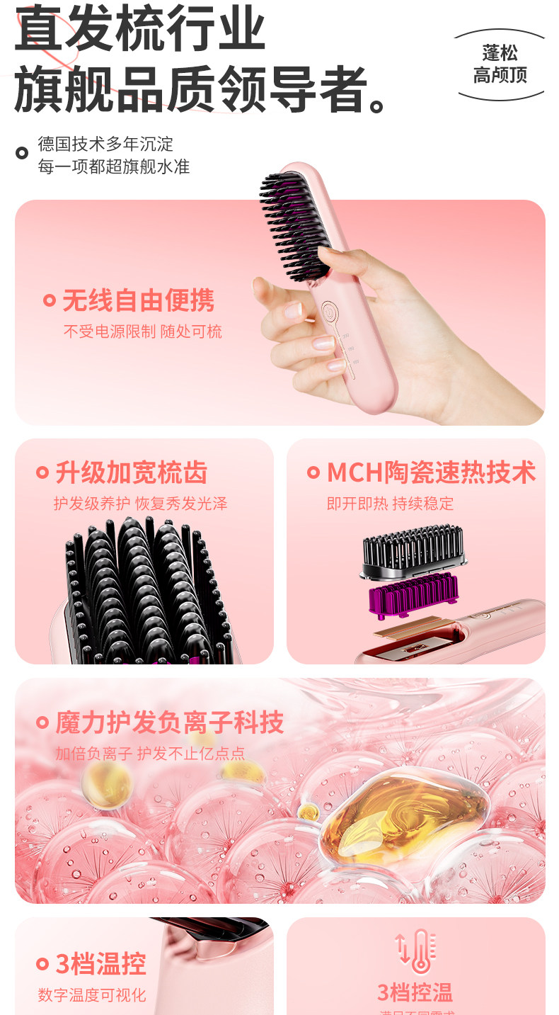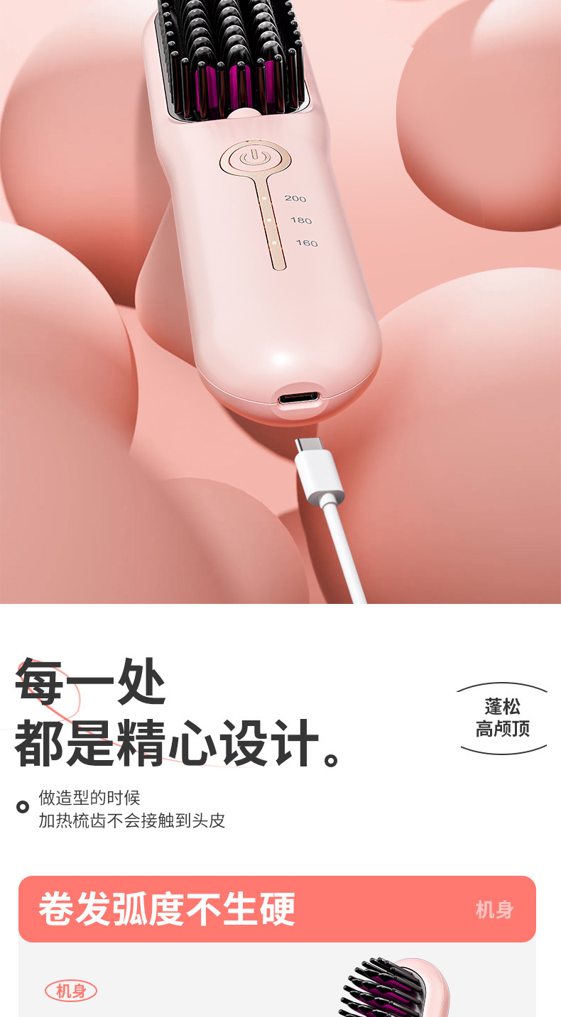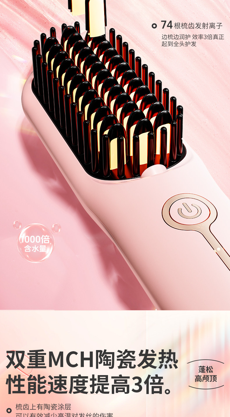 Wireless Negative Ion Hair Straightening Comb, Non-Damaging, Portable Hair Straightening Tool, Dual-Use for Straightening and Curling, Long-Lasting Styling, High Crown Bangs