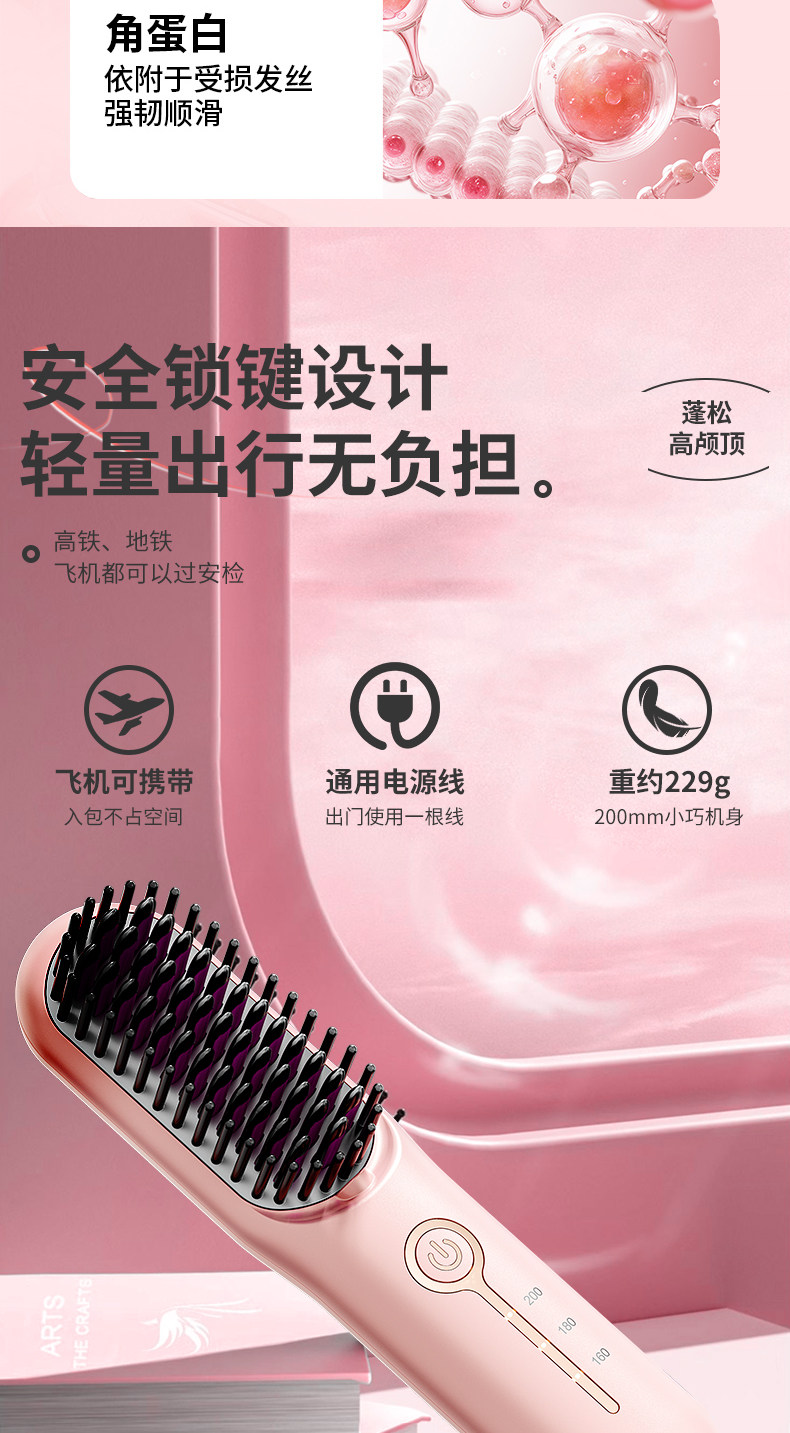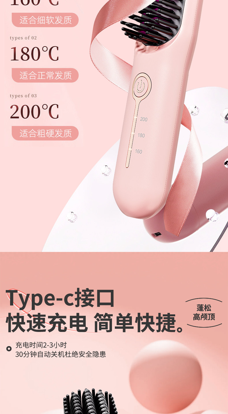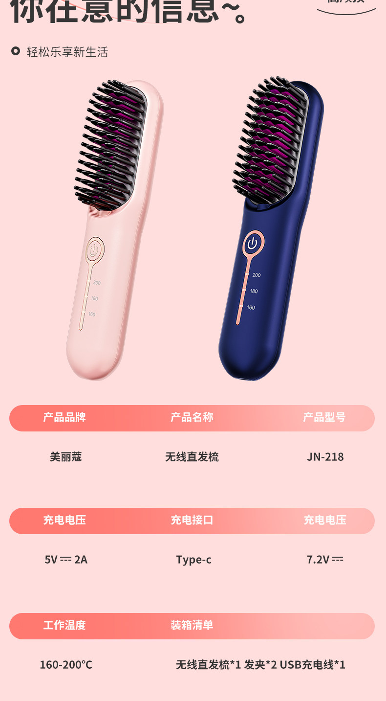 Wireless Negative Ion Hair Straightening Comb, Non-Damaging, Portable Hair Straightening Tool, Dual-Use for Straightening and Curling, Long-Lasting Styling, High Crown Bangs