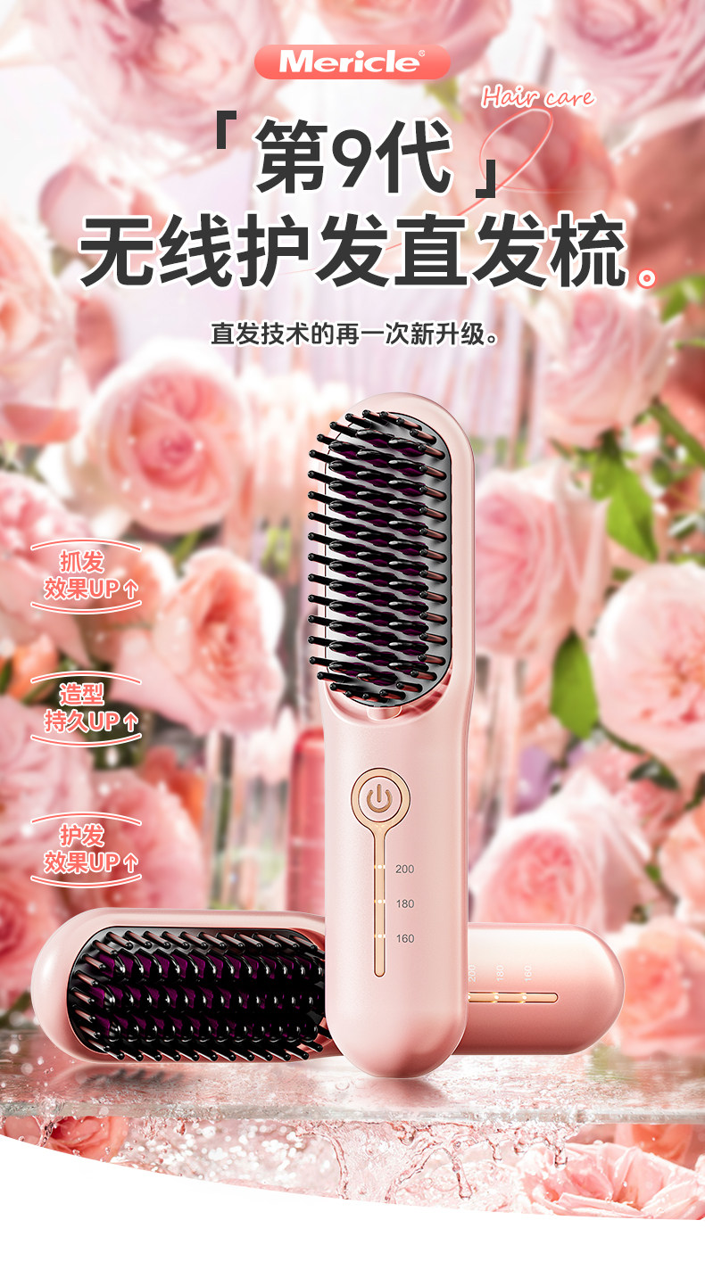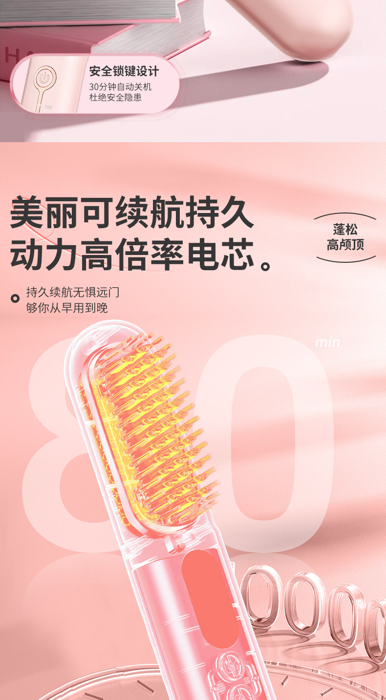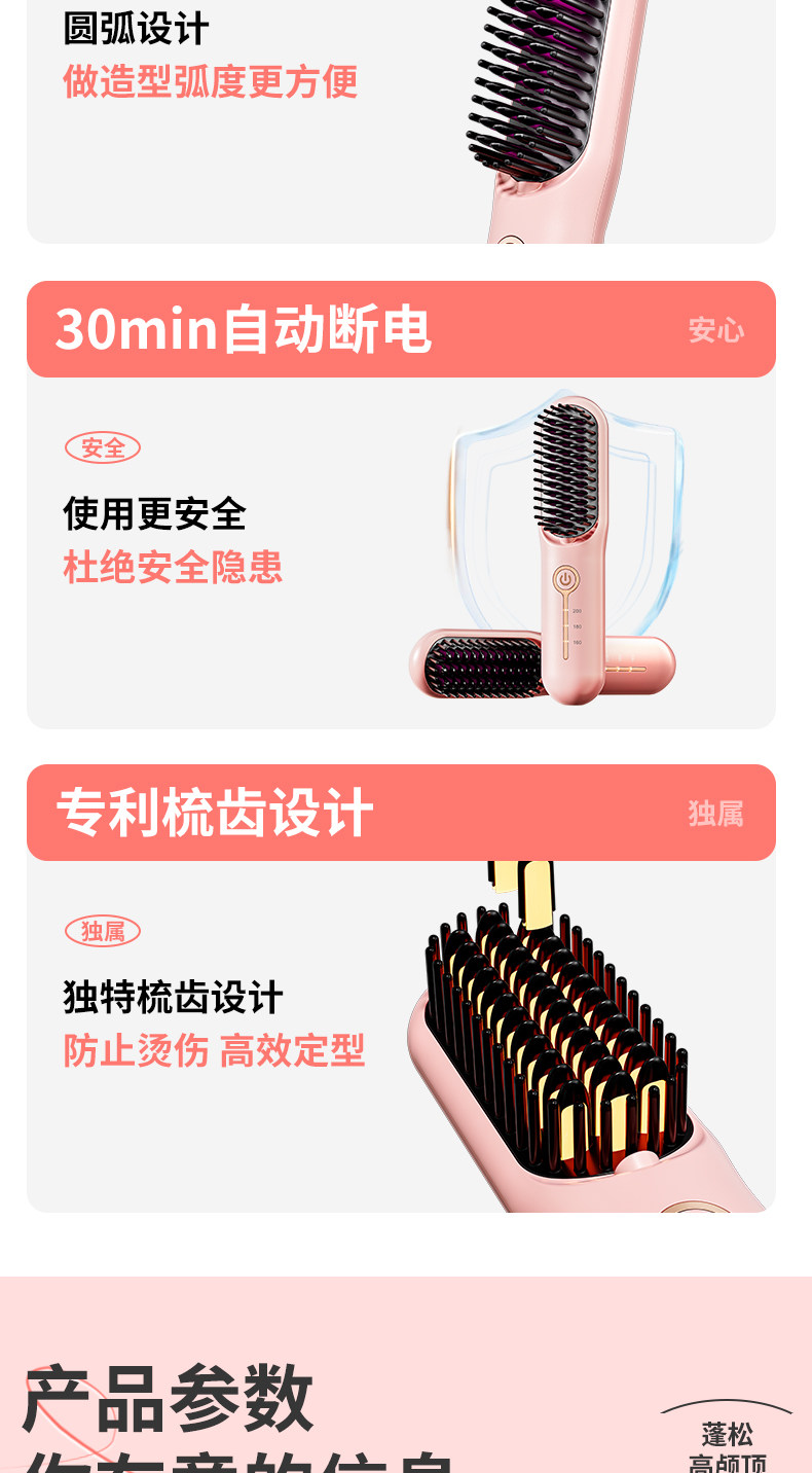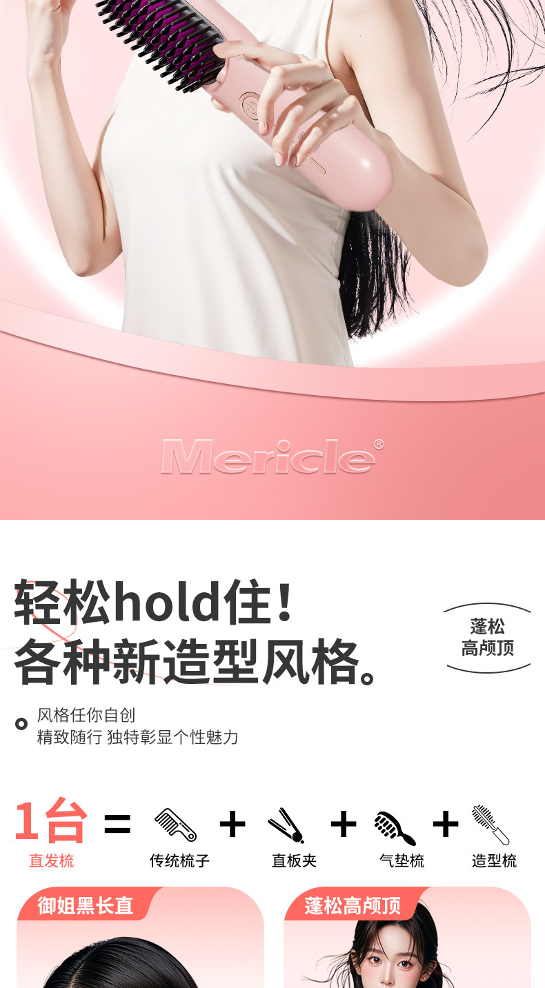 Wireless Negative Ion Hair Straightening Comb, Non-Damaging, Portable Hair Straightening Tool, Dual-Use for Straightening and Curling, Long-Lasting Styling, High Crown Bangs