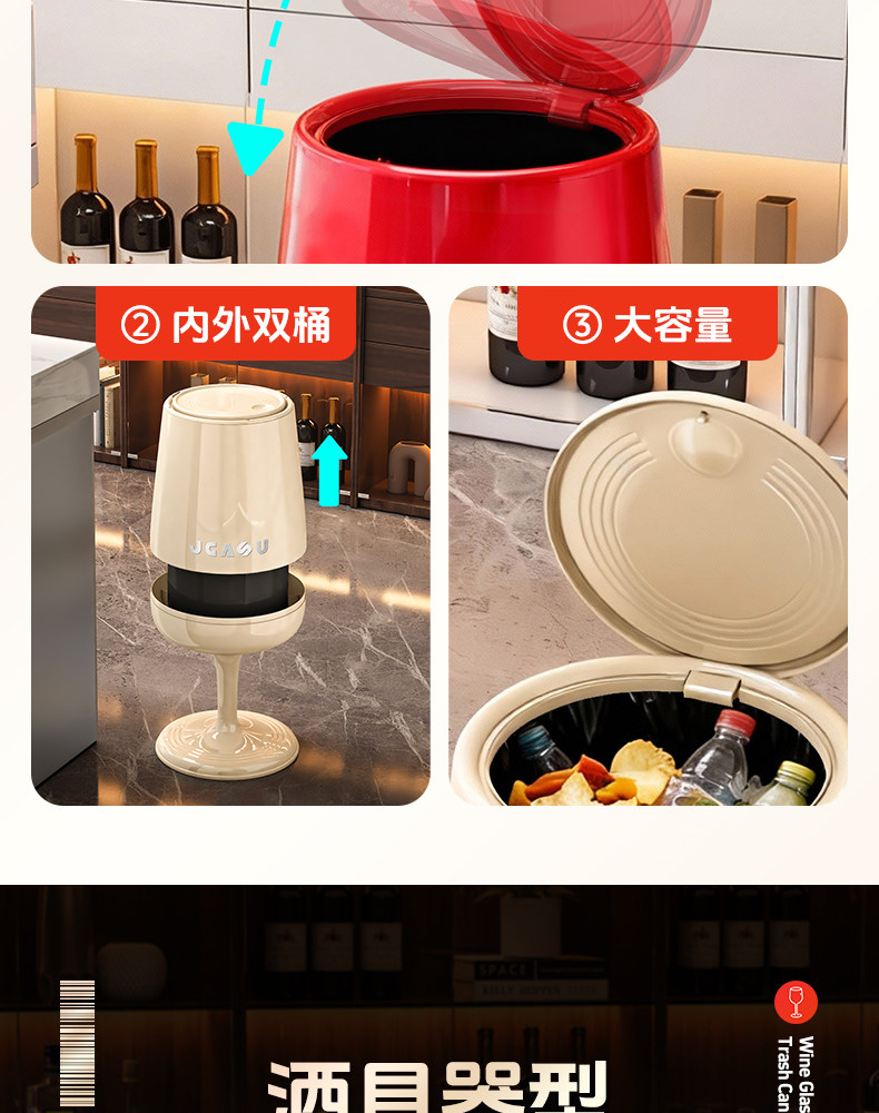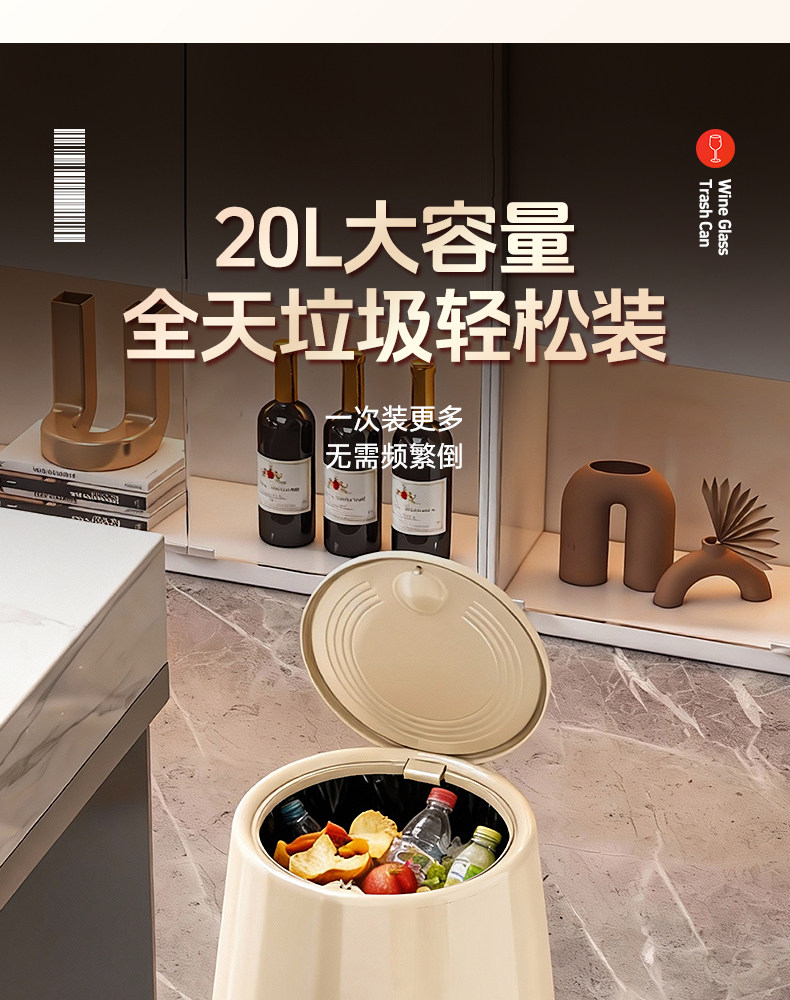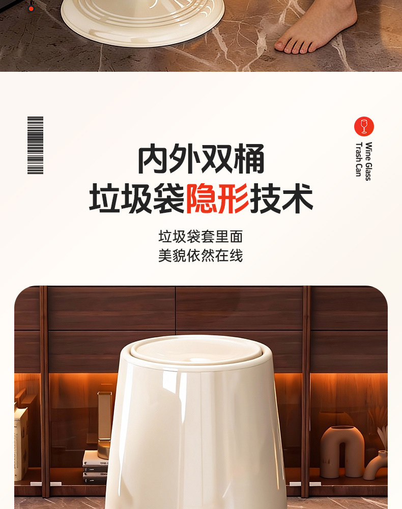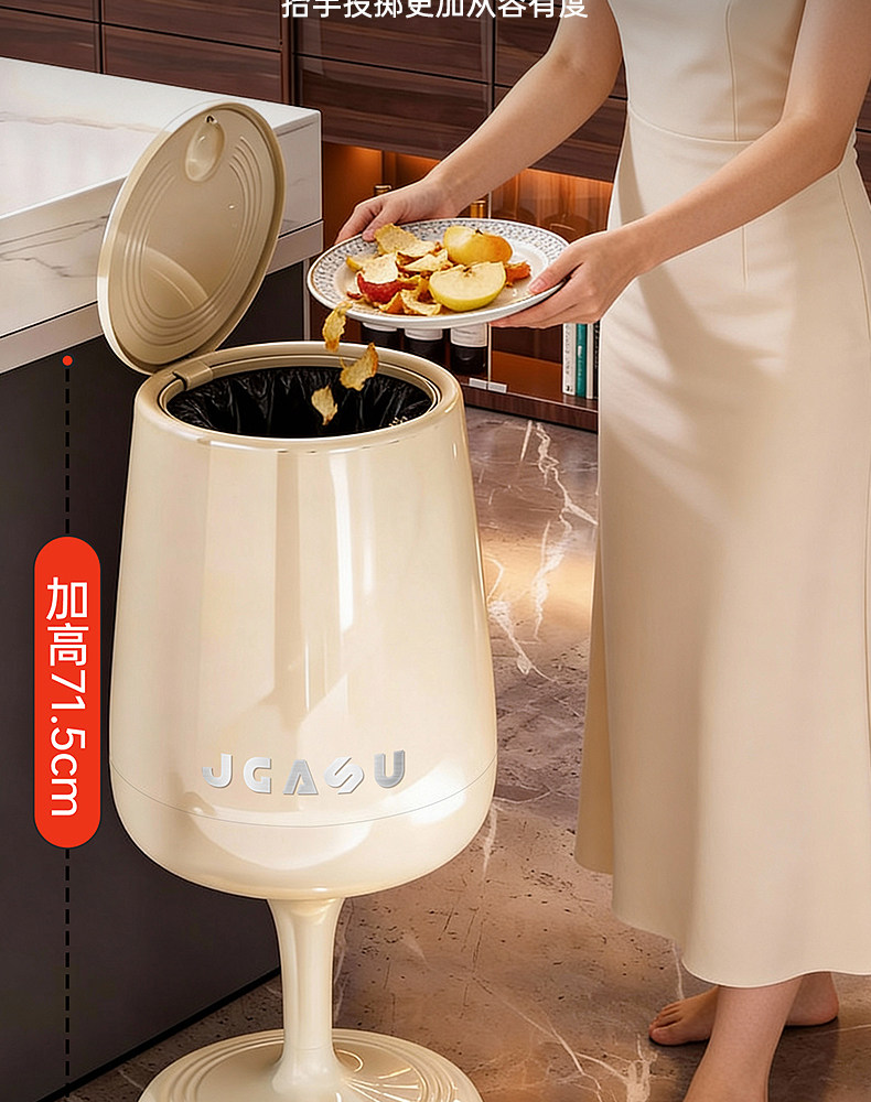 Trash Can for Home Use 2026 New Model, Kitchen-Specific, No Need to Bend Over, with Lid, Large Capacity, Living Room, Light Luxury, High Aesthetic Value