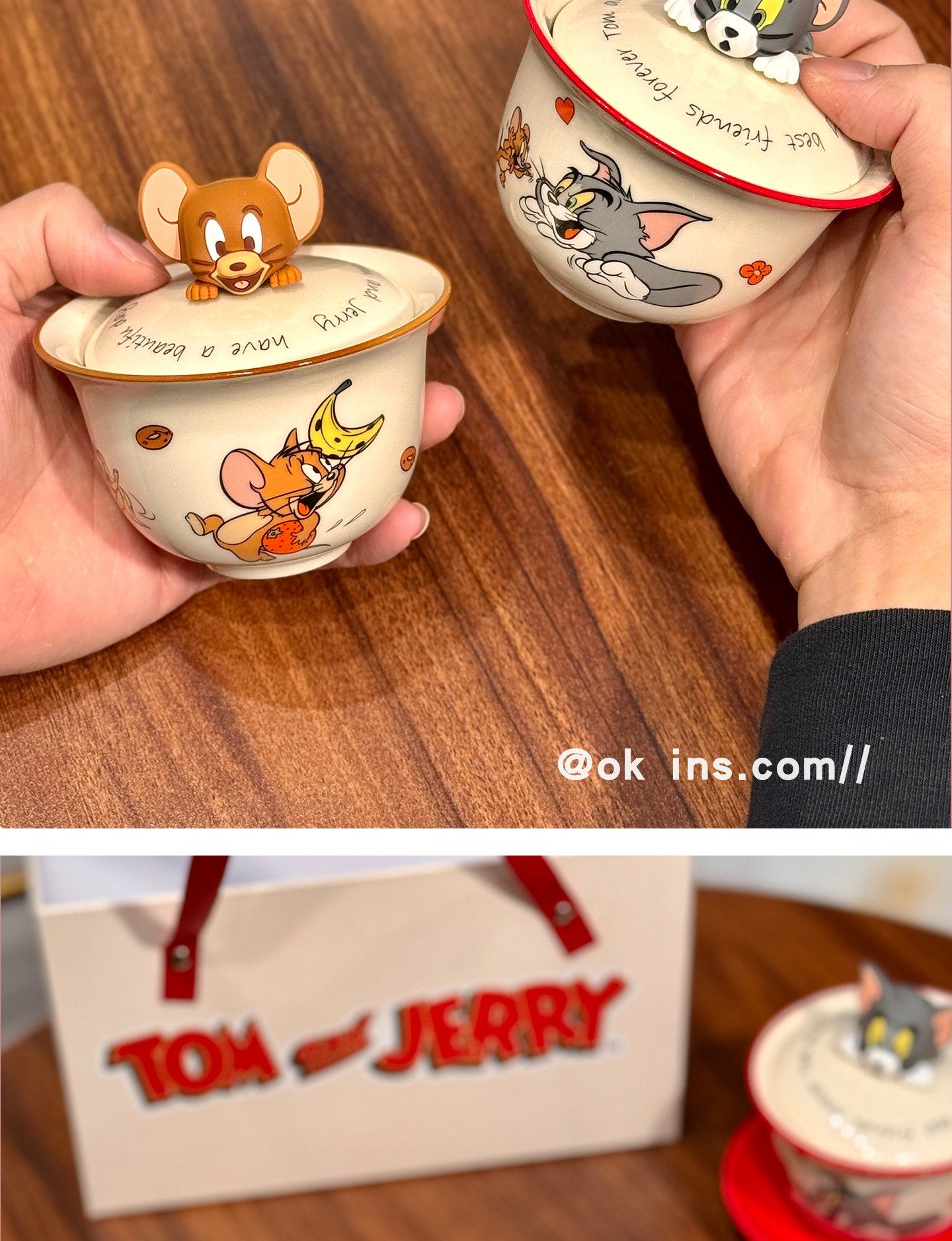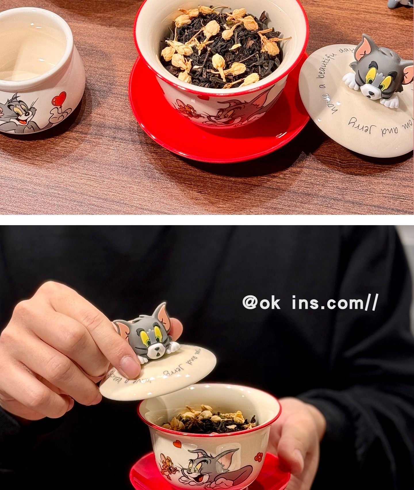 Tom and Jerry Ceramic Gaiwan Cartoon Tea Set Gift Box Gift Bag Set Office Tea Cup Internet-Famous Tea Drinking Cup