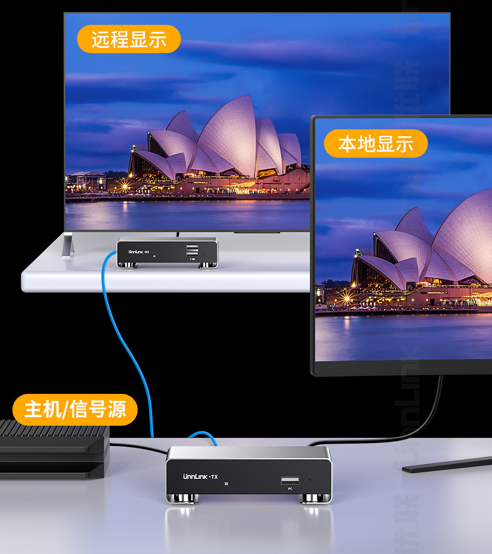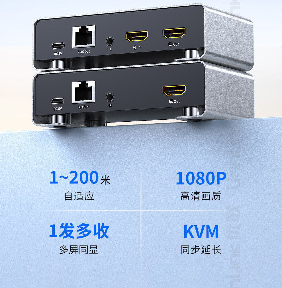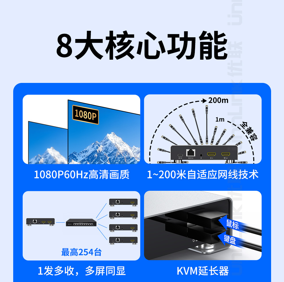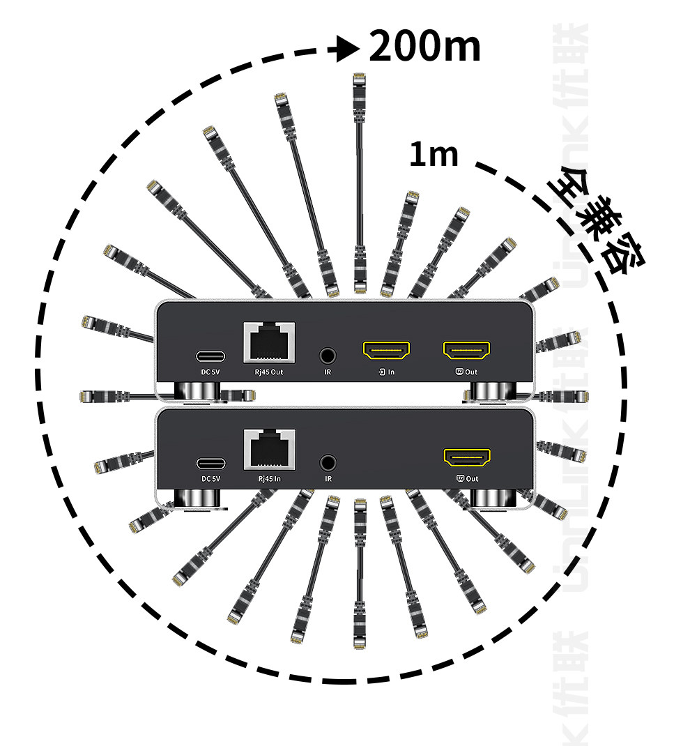 HDMI Network Extender Kvm Network Transmission with USB Keyboard and Mouse, High-Definition One-To-Many Transmission, 200m Surveillance Video Recorders, Computer Laptop Host Audio and Video Transmission Signal Amplifier