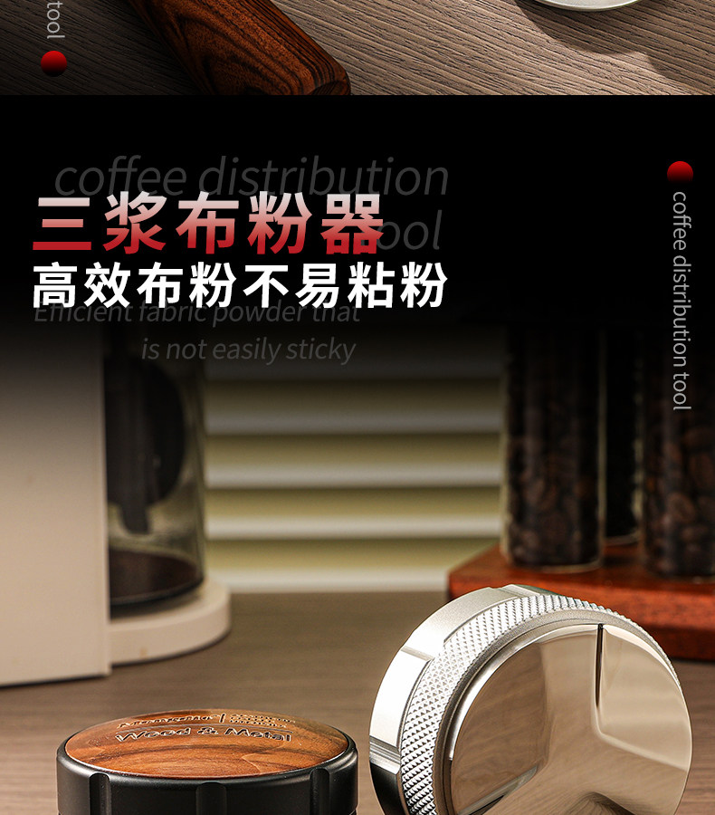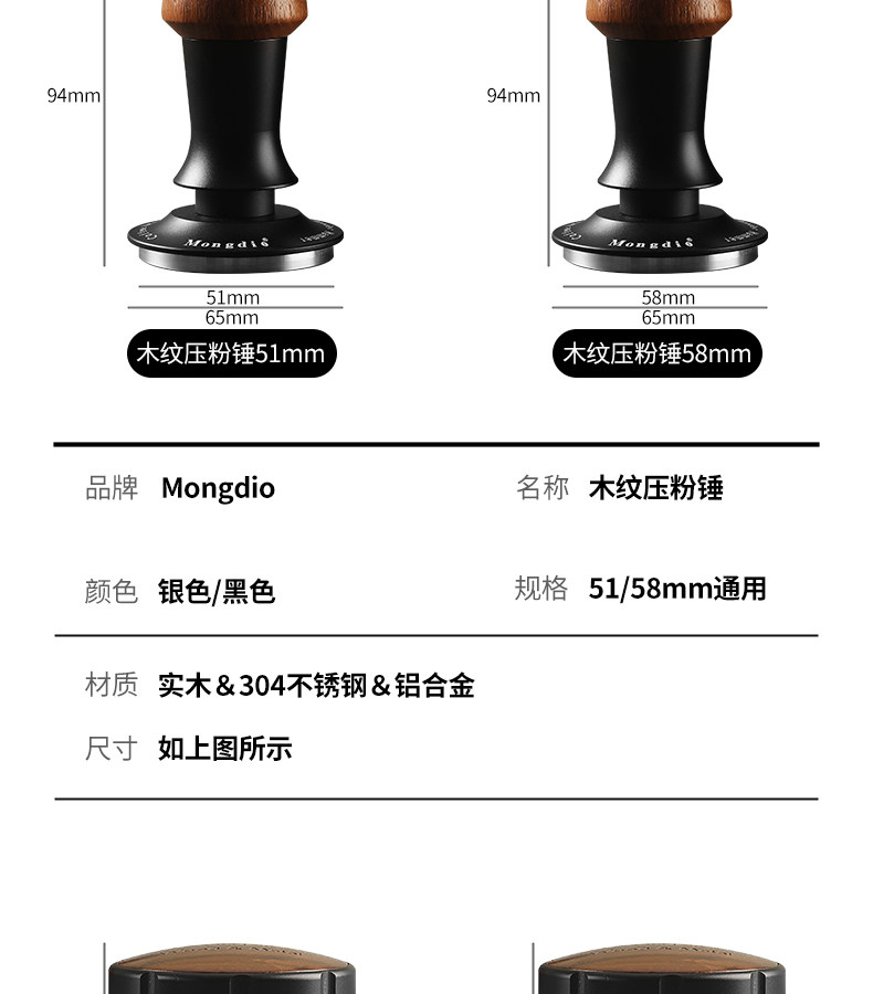 Mongdio Powder Distributor Tamper Stainless Steel Espresso Machine Accessories 51/58mm Coffee Tamper