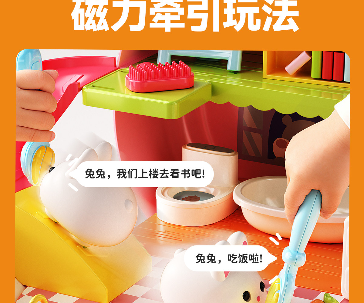 Cute Magnetic Rabbit House Toy for Little Girls, Pretend Play, Feeding, House, Children's Birthday Gift, 3 Years Old, 2, House, Kids, 5, Girls, 4