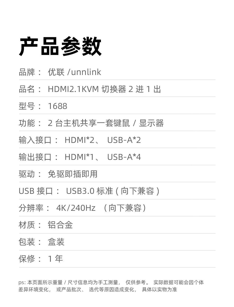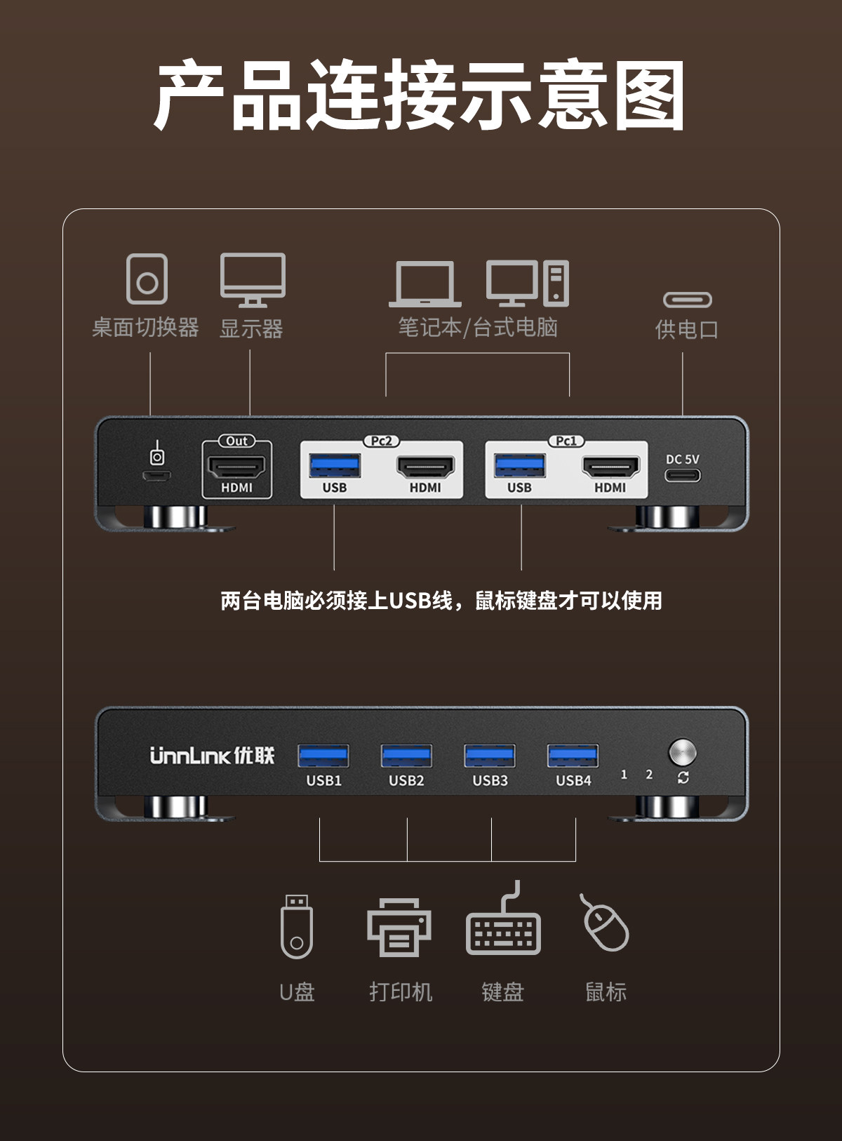 Kvm Switch HDMI Two-In-One-Out, One Set of Keyboard and Mouse to Control Two Computers, 4K144 High Refresh Rate, Dual Hosts Share One Monitor, with Multiple USB Sharing and Synchronized Screen Switching
