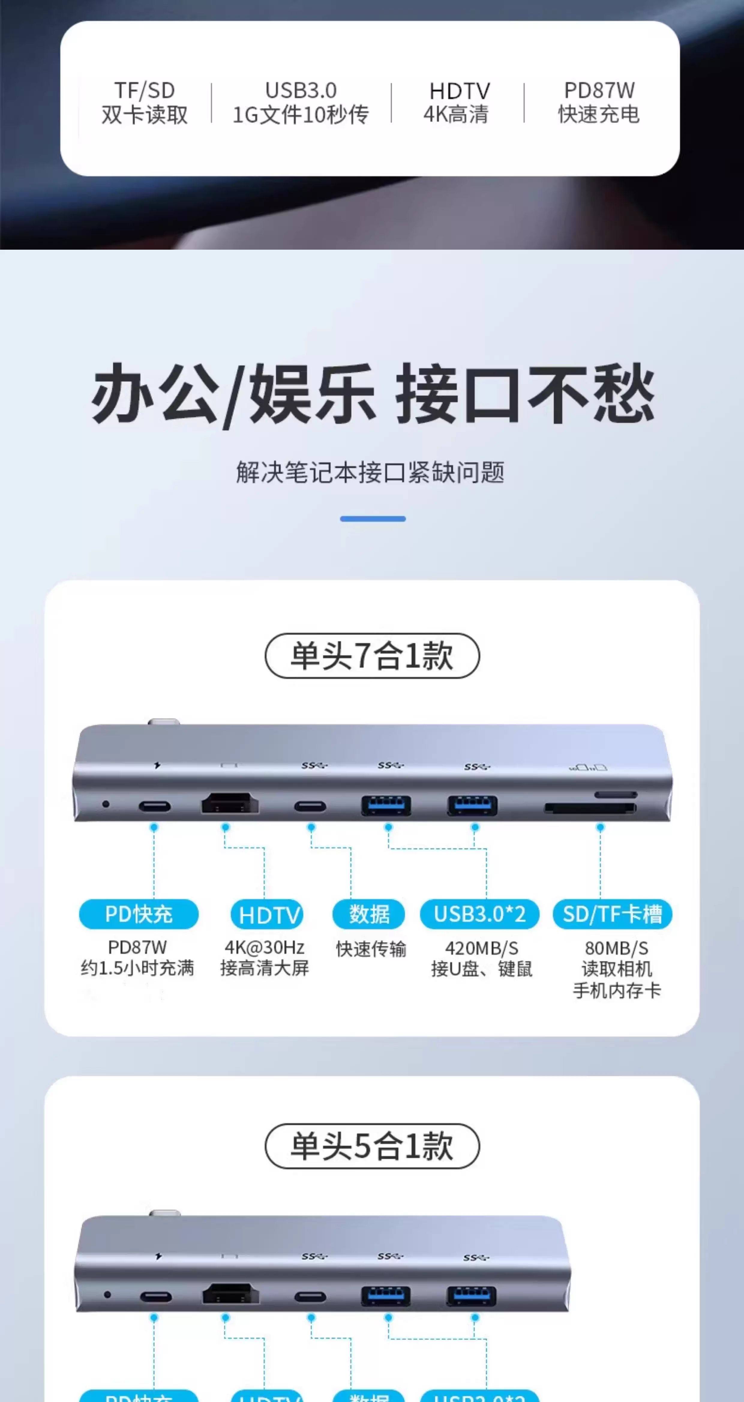 | Color Classification | 【Add to Favorites + Add to Cart】Get a 30-Day Free Trial!☆1 Year Warranty and Free Replacement,----Applicable to All Models of Apple MacBook Proair [Seamless Connection with the Notebook Is More Stable],Single Type-C Head [5-in-1 Gray] Tf/Sd Card + Dual Usb3.0 + Pd Fast Charging,Single Type-C Head [Upgraded 5-in-1 Silver] Tf/Sd Card + Dual Usb3.0 + Pd Fast Charging,Single Type-C Head [5-in-1] Hdmi+Pd100W Fast Charging+Type-C Data Transmission+Usb*2,Single Type-C Head [7-in-1] Sd Tf Card + Hdtv + Pd87W Fast Charging + Thunderbolt 3 + Dual Usb3.0,Single Type-C Head [4-in-1 Audio Model] Pd Fast Charge + HDMI + Usb3.0 + 3.5mm,Dual Type-C Head [5-in-1] Pd100W Fast Charge + HDMI + Usb*2 + Typec,Dual Type-C Head [6-in-1] Pd Fast Charging 96W+Usb3.0+Usb2.0*2+Tf/Sd Card,Dual Type-C Heads [7-in-1] Pd100W Fast Charging + HDMI + Usb3.0 + Usb2.0 + Typec + Sd/Tf Card Slot] |
