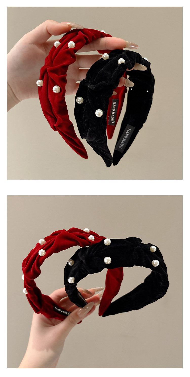 | Color Classification | 1#Retro Red Velvet Pearl Headband - about 4cm,2 # Black Velvet Pearl Headband - about 4cm,3 # All Need 2 Pieces |