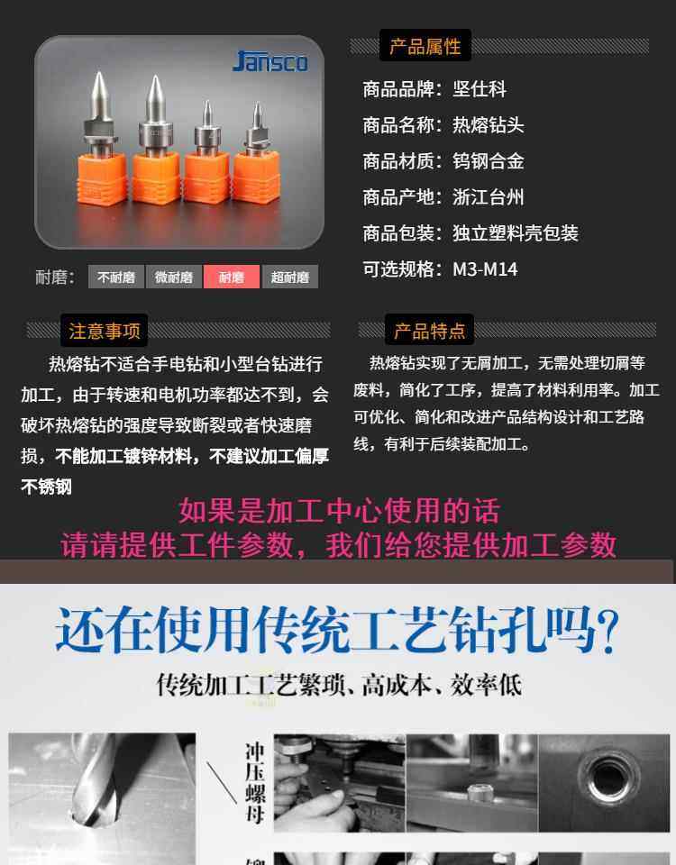 Jansco Tungsten Steel Drill Extrusion Melting Round Flat Mouth M3456810 Universal Stretch Jansco Alloy Hot Melt Drill Bit