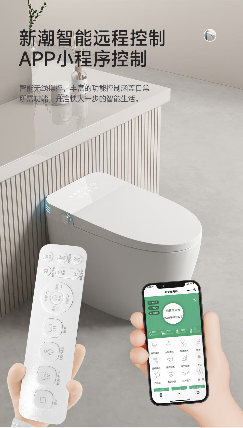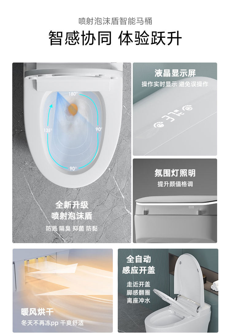 | Additional Features | Kicking Flush,Mobile Control,Antibacterial Toilet Seat Cover,Seat Heating,Flush Water Pressure Adjustment,Flush from the Seat,No Water Pressure Limit,Self-Cleaning Nozzle,Wash Your Buttocks,Women Wash,Automatic Deodorization,Nozzle Moving Cleaning,Feeling of Water Flushing,Kick the Flip Cover,Instant Heating Type,Night Light,Four Seasons Warmth,Dual Waterway Design,Booster Pump,Foam Shield,Drying,Adjust the Heating.,Remote Control,Sensor Flip Cover,Water Temperature Adjustment,Power Outage Flushing,Voice Control,Heating Water Temperature |