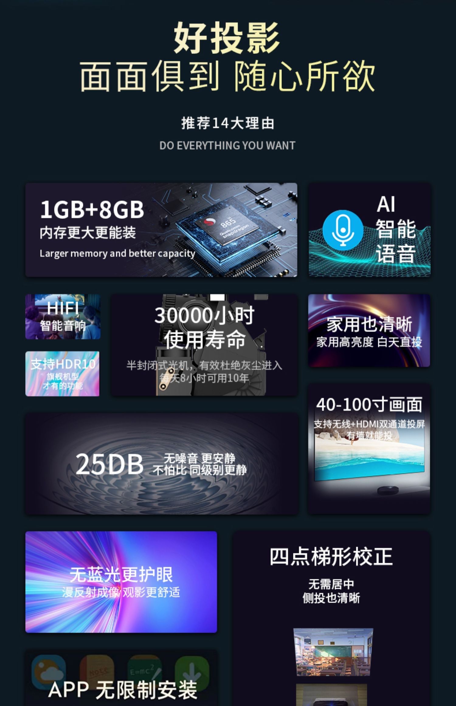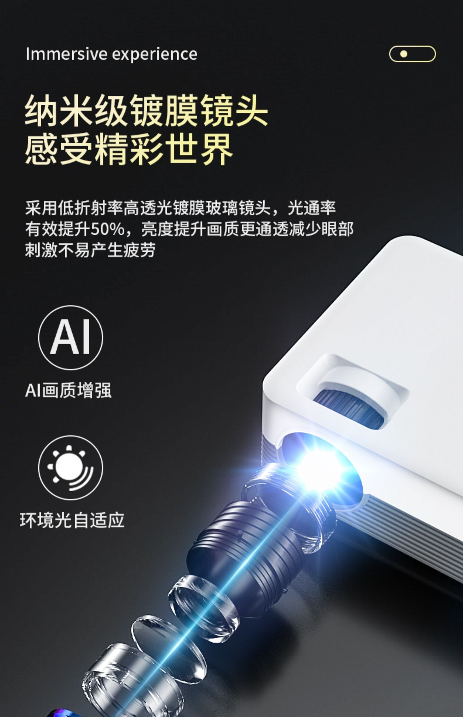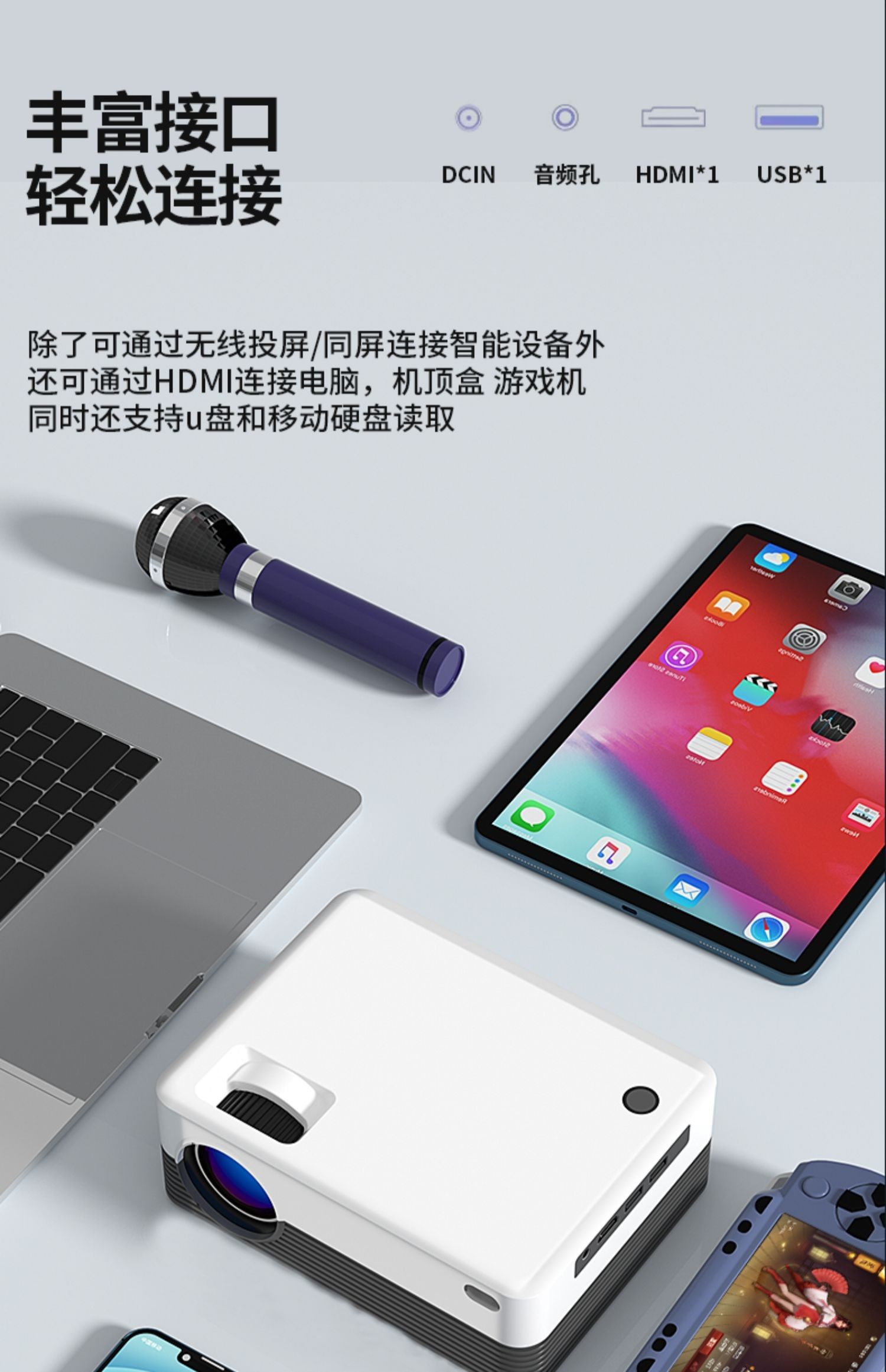 2026 New Model Projector for Home Use, Ultra-High Definition, Can Be Connected to Mobile Phones, Suitable for Bedroom, Home Theater, Office Use, Meetings, Supports HDMI Input Interface, Can Be Connected to Computer, Projector All-In-One, Baishi Internet