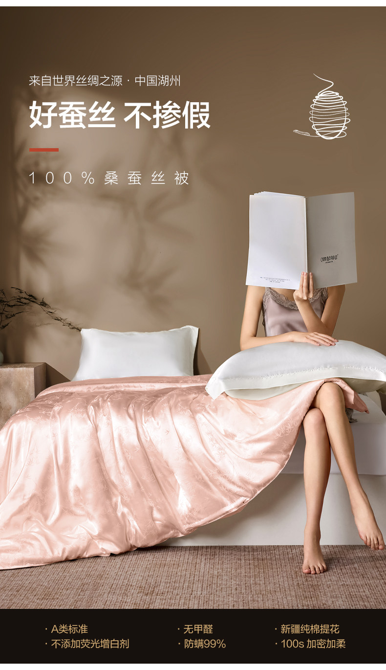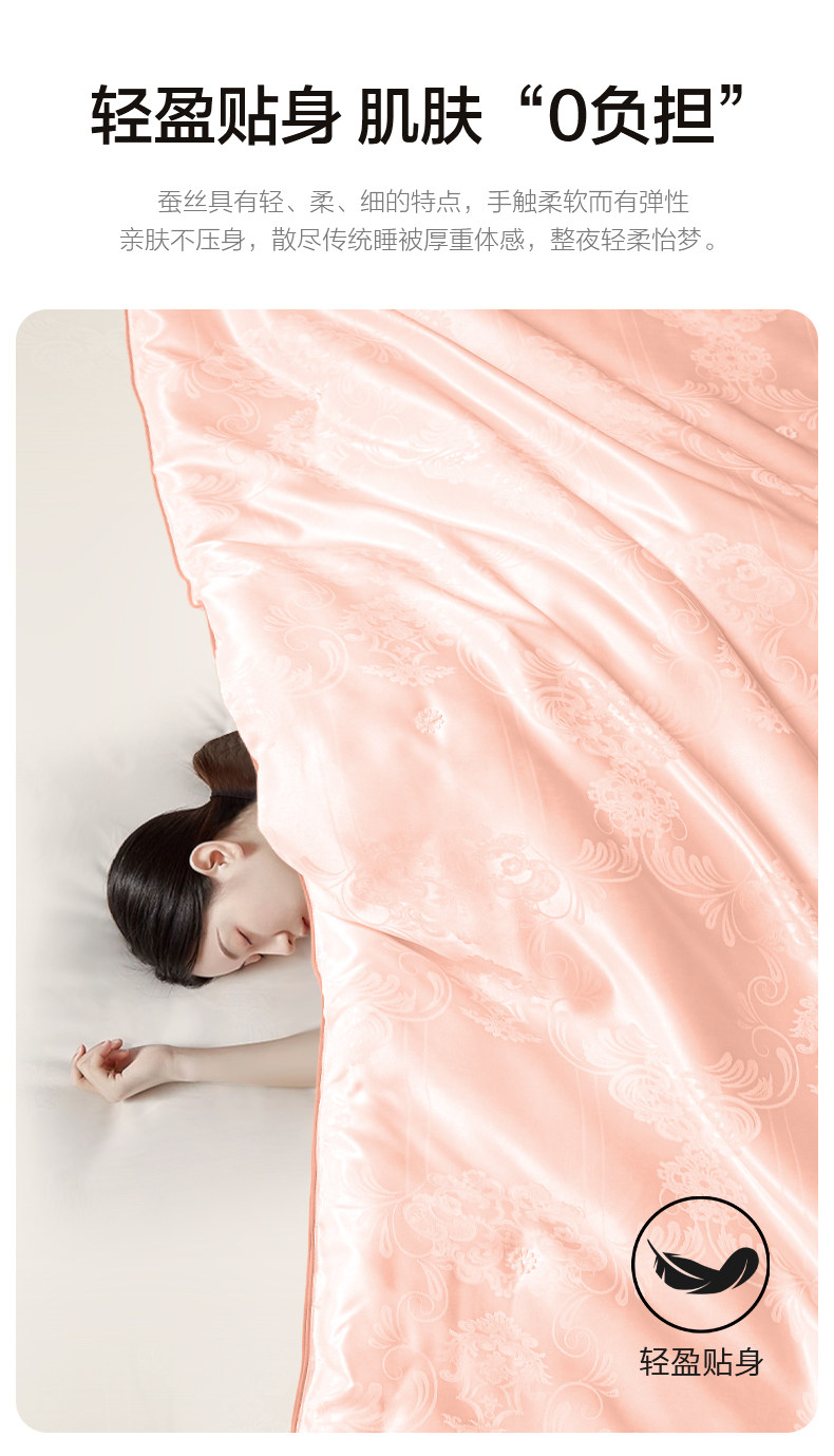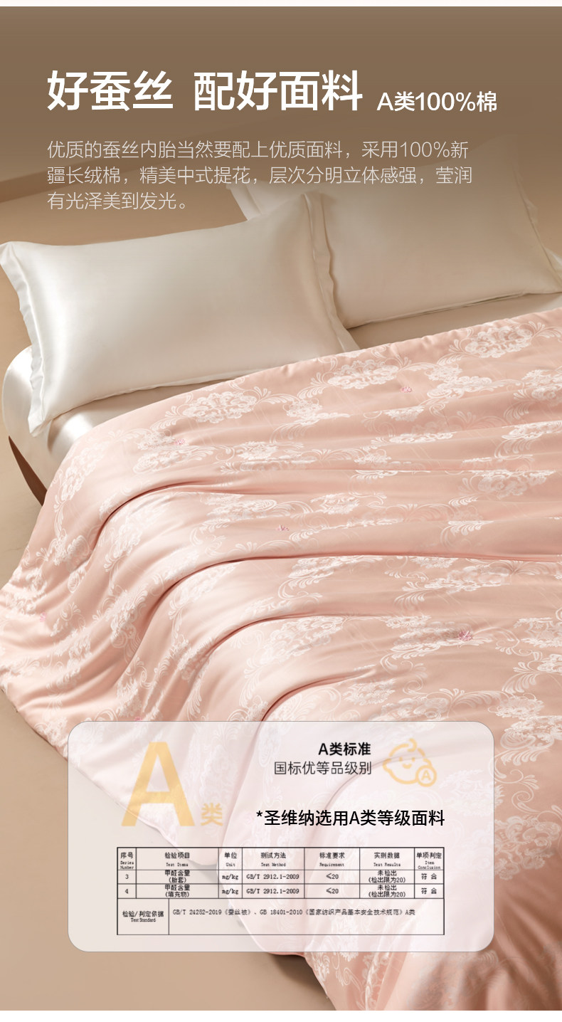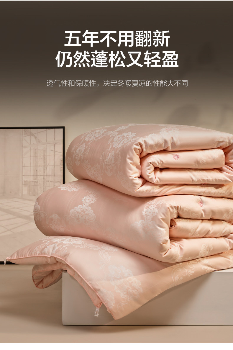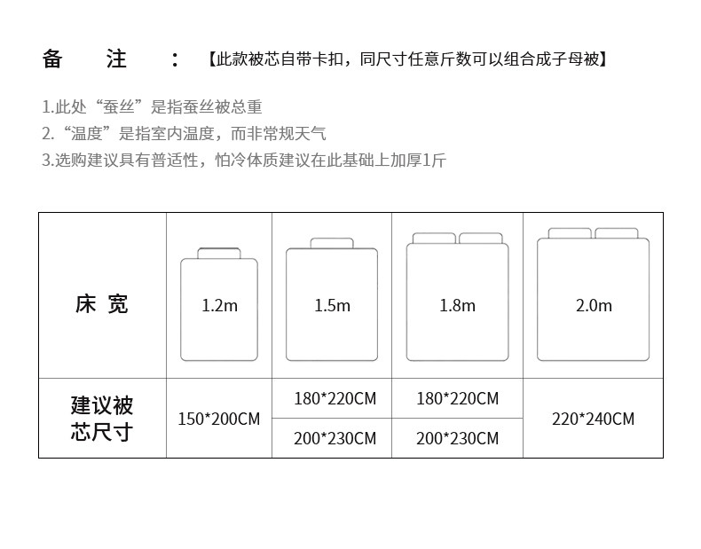 | Size | 150*200cm 1.15kg Summer Quilt [100% Mulberry Silk],150*200cm about 1.5kg Spring and Autumn Quilt [100% Mulberry Silk],150*200cm about 2kg Spring and Autumn Quilt [100% Mulberry Silk],150*200cm about 3kg Winter Quilt [100% Mulberry Silk],150*200cm 4kg Thickened Winter Quilt [100% Mulberry Silk],180*220cm about 1.35kg Summer Quilt [100% Mulberry Silk],180*220cm about 2kg Spring and Autumn Quilt [100% Mulberry Silk],180*220cm about 3kg Winter Quilt [100% Mulberry Silk],180*220cm about 4kg Thickened Winter Quilt [100% Mulberry Silk],200*230cm 1.6kg Summer Quilt [100% Mulberry Silk],200*230cm about 2kg Spring and Autumn Quilt [100% Mulberry Silk],200*230cm about 3kg Winter Quilt [100% Mulberry Silk],200*230cm about 4kg Thickened Winter Quilt [100% Mulberry Silk],200*230cm about 5kg Extra Thick Winter Quilt [100% Mulberry Silk],220*240cm about 1.7kg Summer Quilt [100% Mulberry Silk],220*240cm about 2kg Spring and Autumn Quilt [100% Mulberry Silk],220*240cm about 3kg Winter Quilt [100% Mulberry Silk],220*240cm about 4kg Thickened Winter Quilt [100% Mulberry Silk],220*240cm about 5kg Extra Thick Winter Quilt [100% Mulberry Silk],150*200cm about 3+ 3kg Double Quilt [100% Mulberry Silk],180*220cm about 4+ 3kg Double Quilt [100% Mulberry Silk],200*230cm about 4+ 3kg Double Quilt [100% Mulberry Silk],200*230cm about 4+ 4kg Double Quilt [100% Mulberry Silk],220*240cm about 4+ 3kg Double Quilt [100% Mulberry Silk],220*240cm about 4+ 4kg Double Quilt [100% Mulberry Silk] |