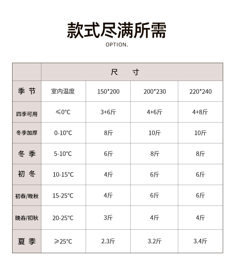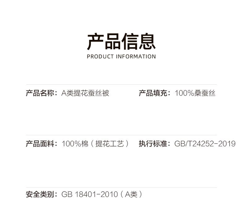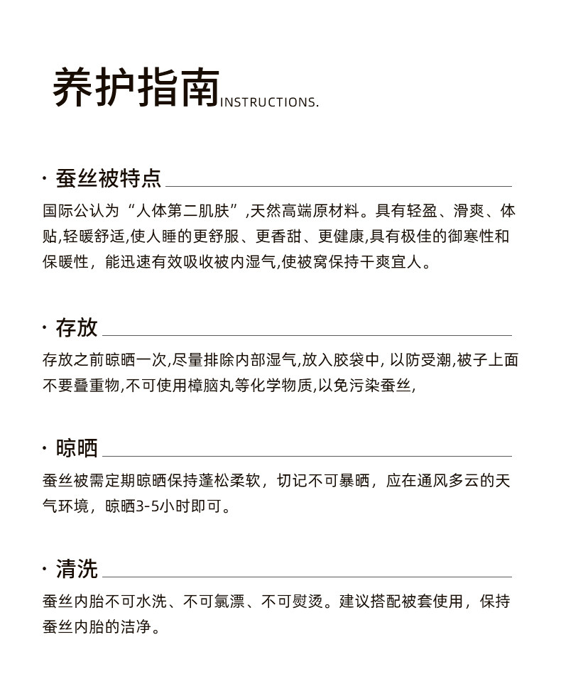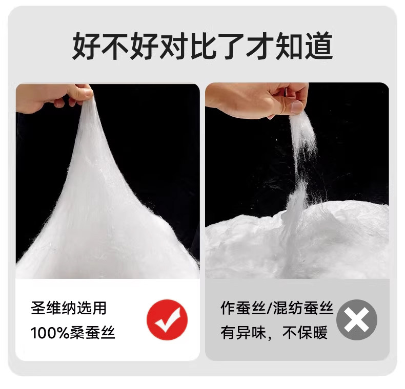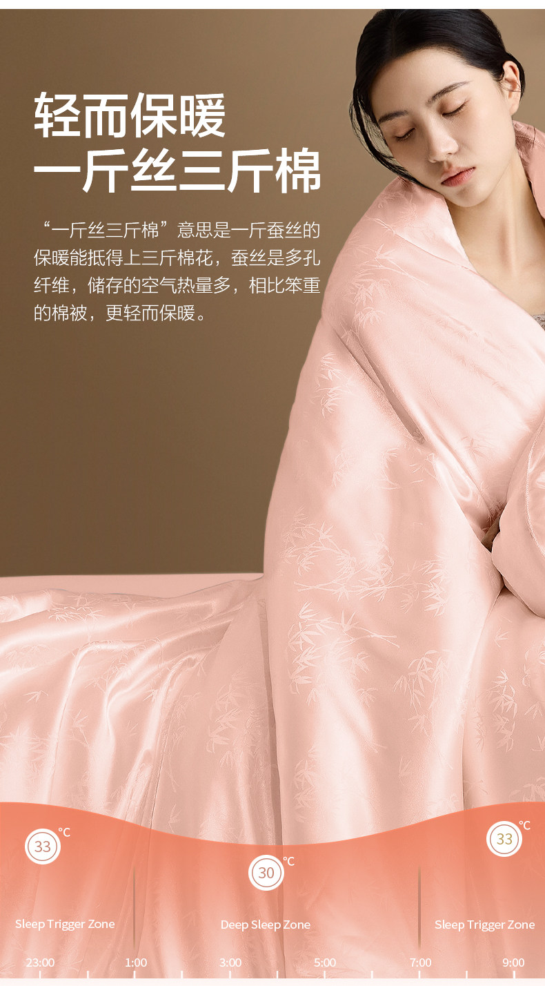 | Size | 150*200cm 1.15kg Summer Quilt [100% Mulberry Silk],150*200cm about 1.5kg Spring and Autumn Quilt [100% Mulberry Silk],150*200cm about 2kg Spring and Autumn Quilt [100% Mulberry Silk],150*200cm about 3kg Winter Quilt [100% Mulberry Silk],150*200cm 4kg Thickened Winter Quilt [100% Mulberry Silk],180*220cm about 1.35kg Summer Quilt [100% Mulberry Silk],180*220cm about 2kg Spring and Autumn Quilt [100% Mulberry Silk],180*220cm about 3kg Winter Quilt [100% Mulberry Silk],180*220cm about 4kg Thickened Winter Quilt [100% Mulberry Silk],200*230cm 1.6kg Summer Quilt [100% Mulberry Silk],200*230cm about 2kg Spring and Autumn Quilt [100% Mulberry Silk],200*230cm about 3kg Winter Quilt [100% Mulberry Silk],200*230cm about 4kg Thickened Winter Quilt [100% Mulberry Silk],200*230cm about 5kg Extra Thick Winter Quilt [100% Mulberry Silk],220*240cm about 1.7kg Summer Quilt [100% Mulberry Silk],220*240cm about 2kg Spring and Autumn Quilt [100% Mulberry Silk],220*240cm about 3kg Winter Quilt [100% Mulberry Silk],220*240cm about 4kg Thickened Winter Quilt [100% Mulberry Silk],220*240cm about 5kg Extra Thick Winter Quilt [100% Mulberry Silk],150*200cm about 3+ 3kg Double Quilt [100% Mulberry Silk],180*220cm about 4+ 3kg Double Quilt [100% Mulberry Silk],200*230cm about 4+ 3kg Double Quilt [100% Mulberry Silk],200*230cm about 4+ 4kg Double Quilt [100% Mulberry Silk],220*240cm about 4+ 3kg Double Quilt [100% Mulberry Silk],220*240cm about 4+ 4kg Double Quilt [100% Mulberry Silk] |