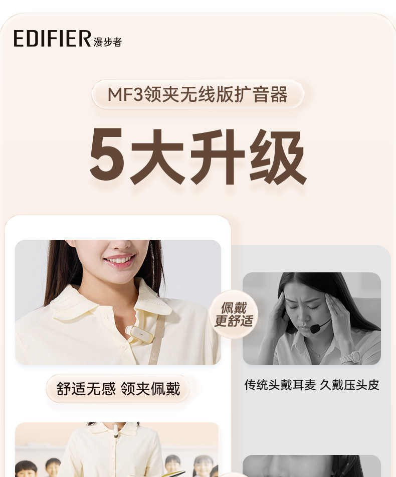 Edifier Mf3 Lavalier Microphone Amplifier, Small Bee, High Volume, Wireless Microphone Headset for Teachers to Use in Class