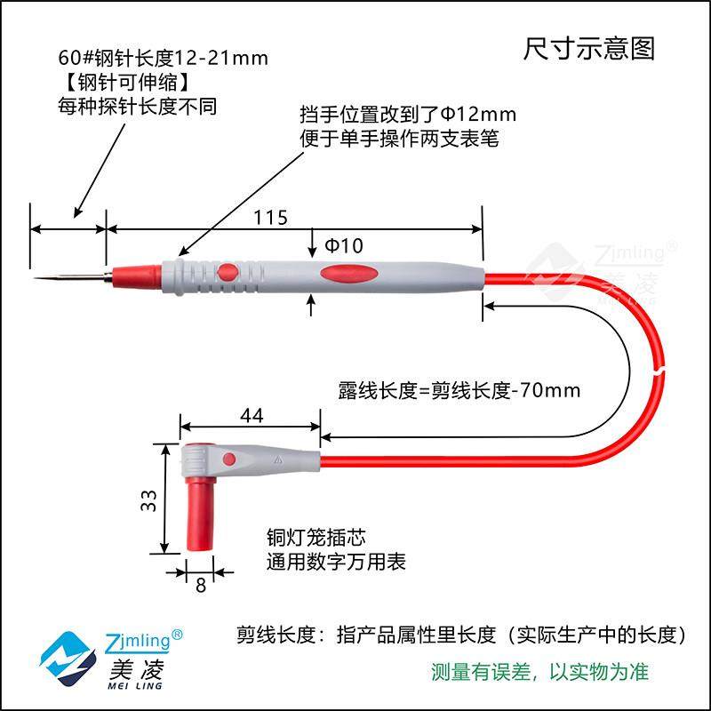 Meiling Multimeter Probe with Extra-Sharp Steel Needle, Anti-Freeze, Anti-Scald, Soft Silicone Wire, 198 Core 2208