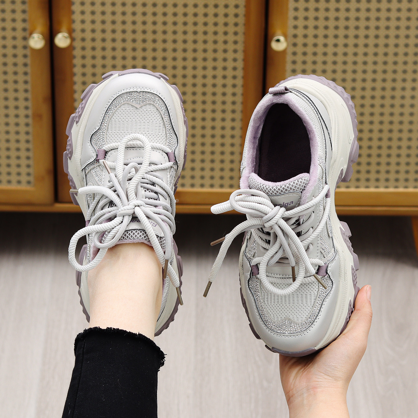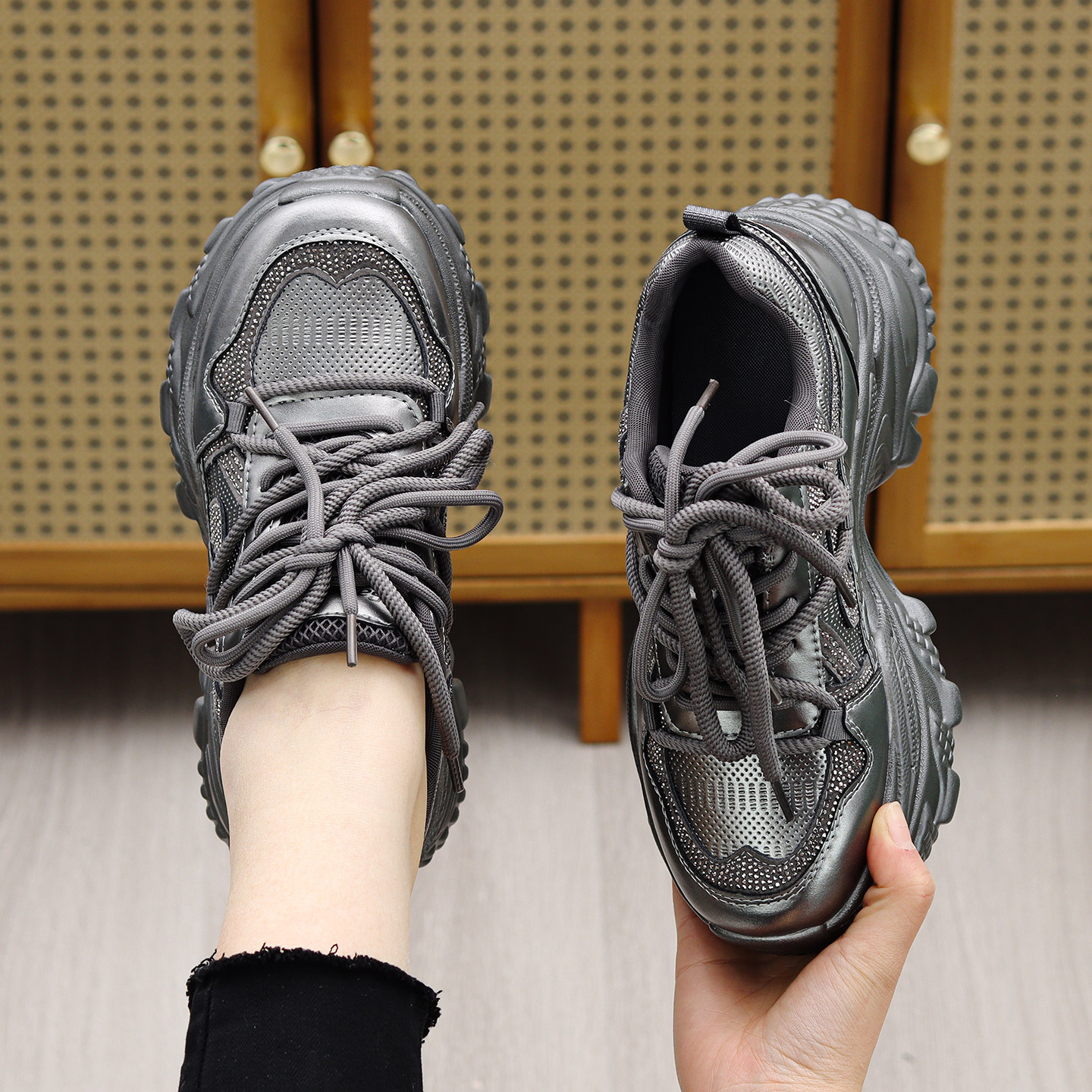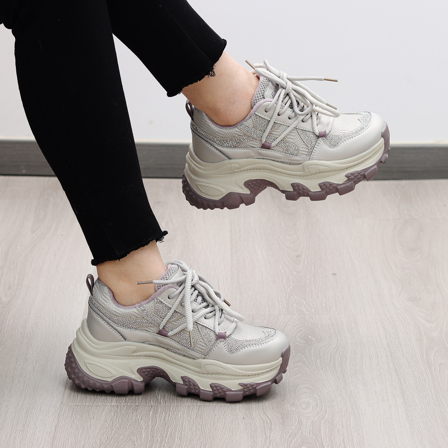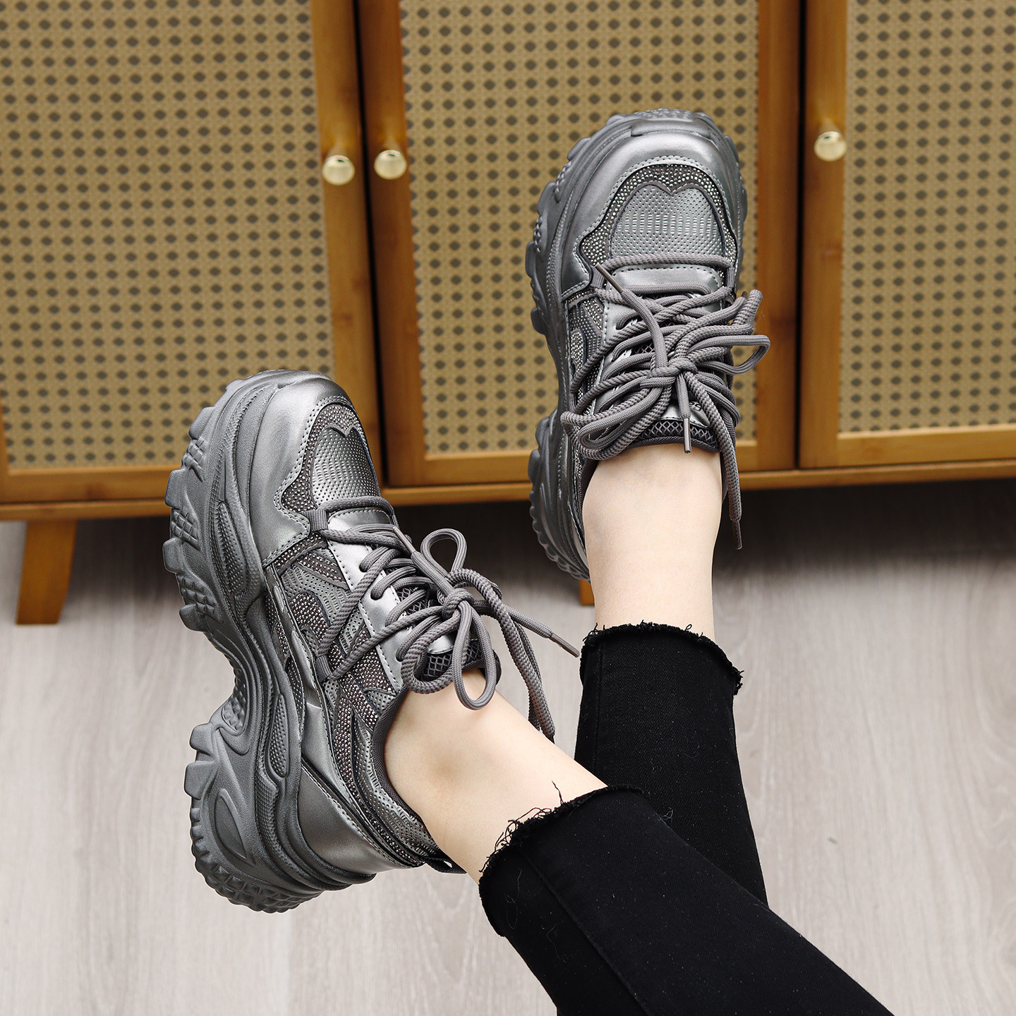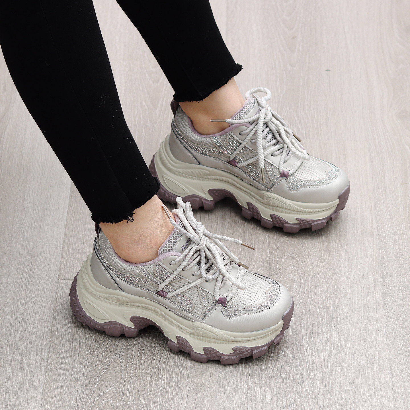 Genuine Leather Thick-Soled Dad Shoes for Women, 2026 Spring New Fashion Versatile Internet Celebrity Height-Increasing Slimming Sports Casual Shoes