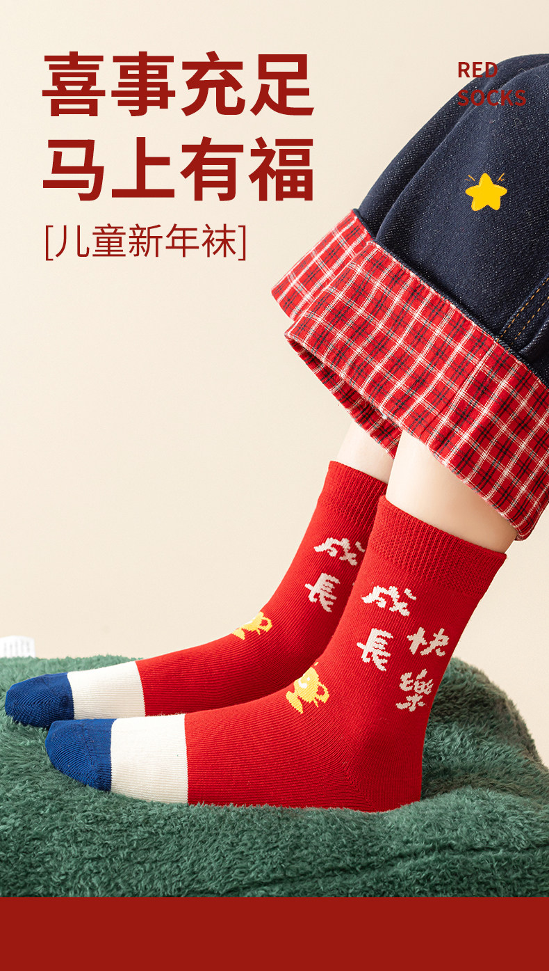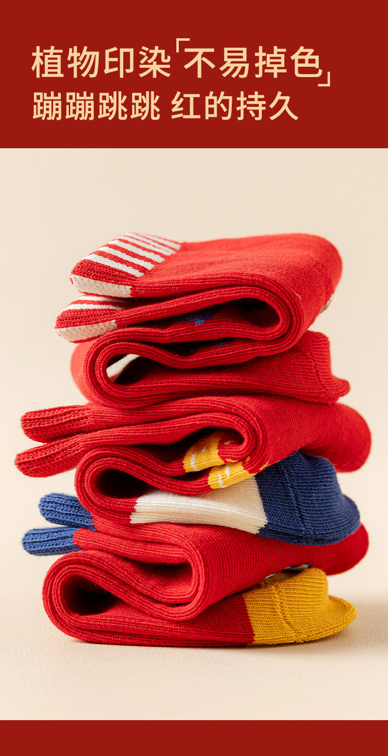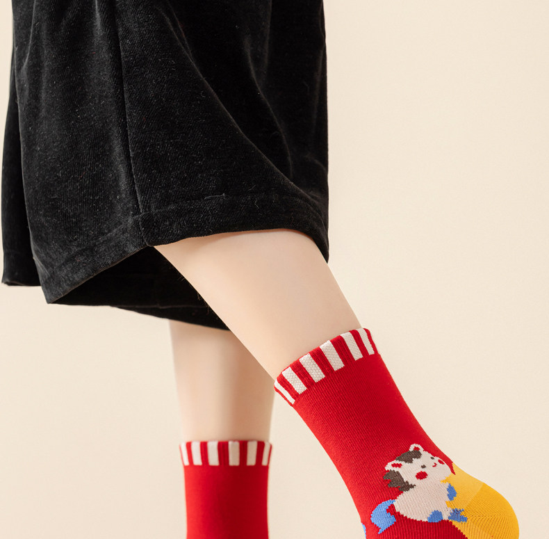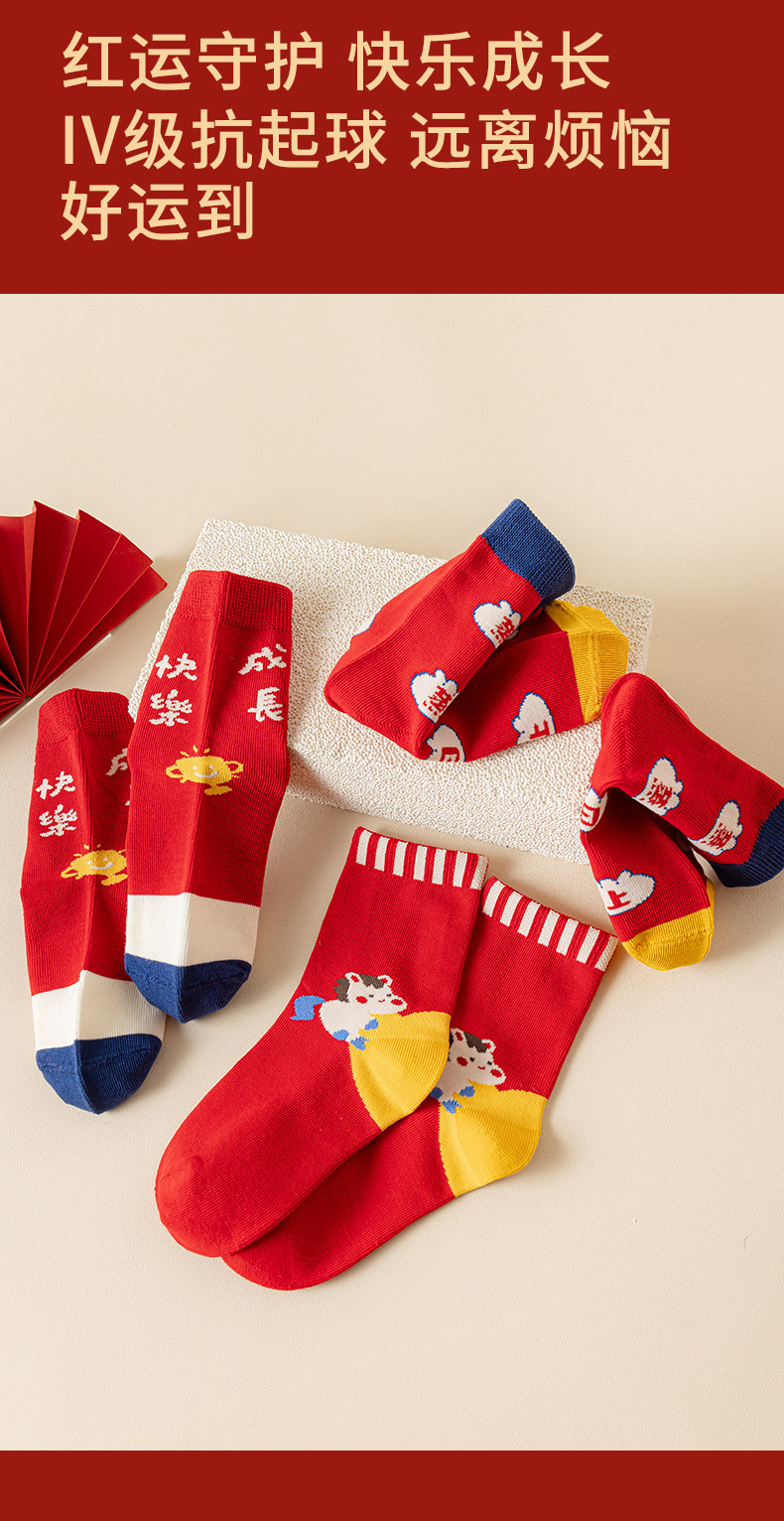 2026 Year of the Horse Children's Zodiac Year Red Socks Pure Cotton 12-Year-Old Boys and Girls Cute New Year Socks Red Socks