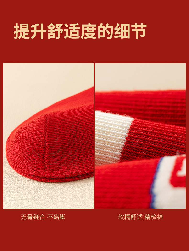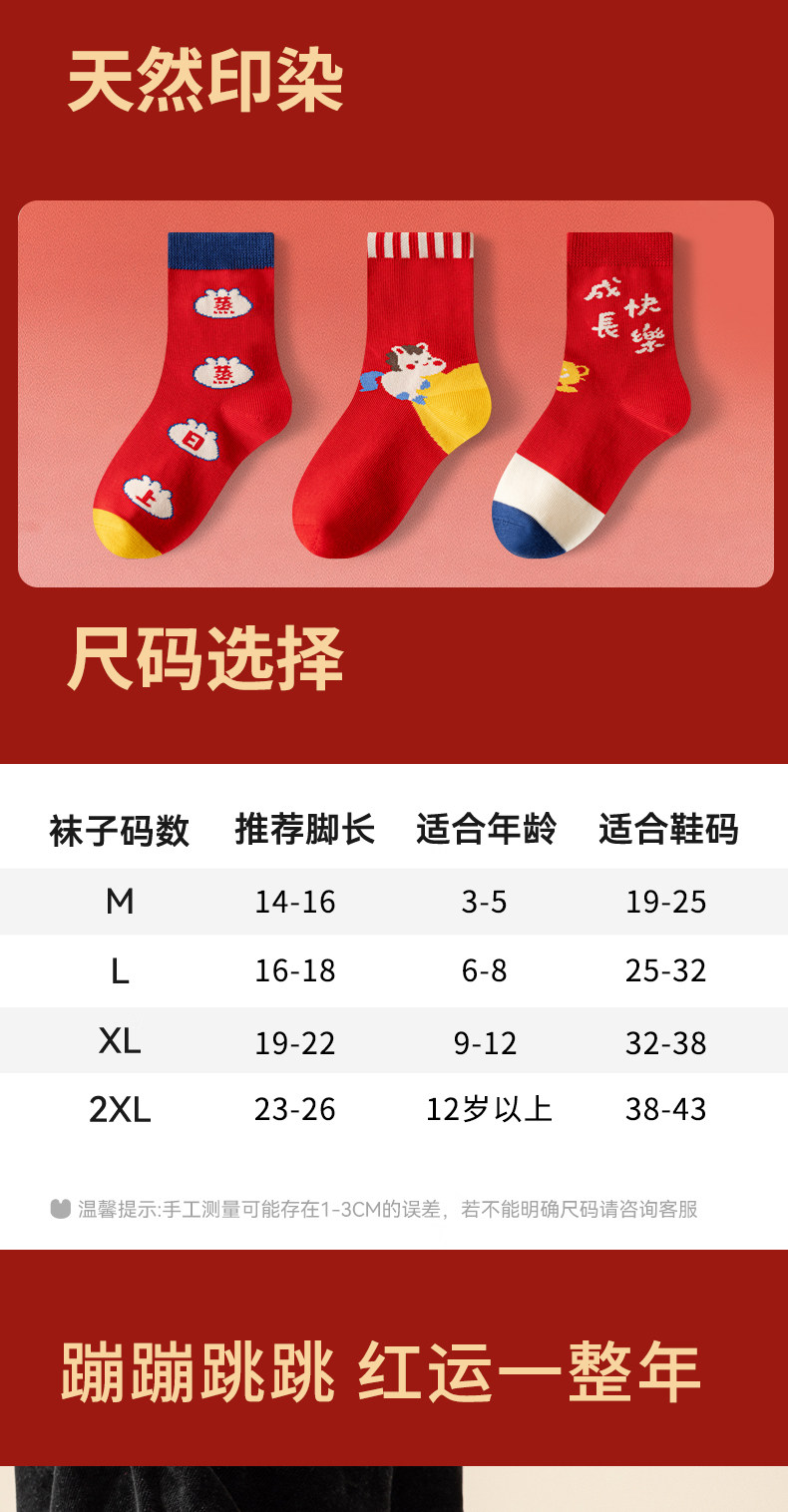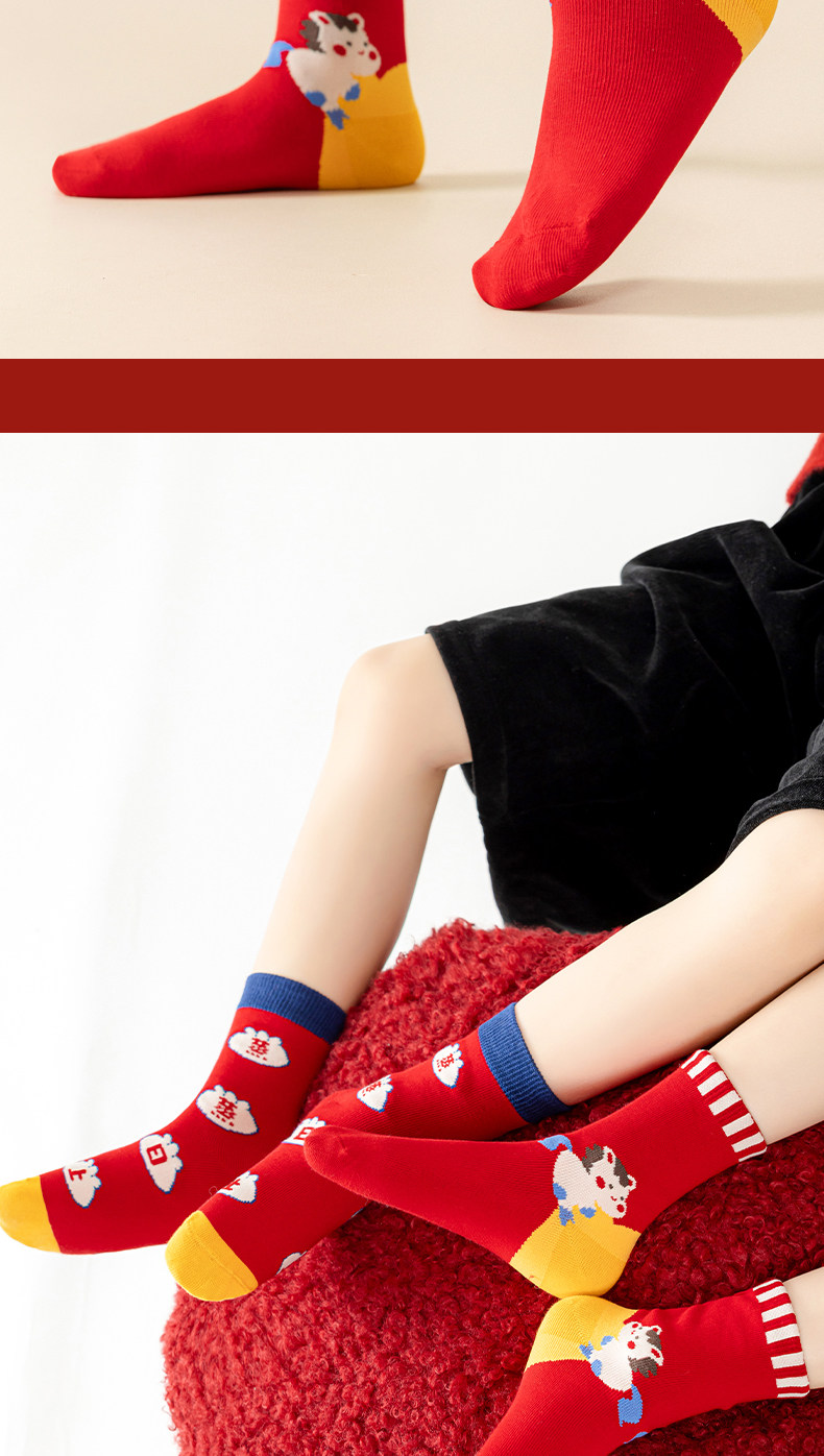2026 Year of the Horse Children's Zodiac Year Red Socks Pure Cotton 12-Year-Old Boys and Girls Cute New Year Socks Red Socks