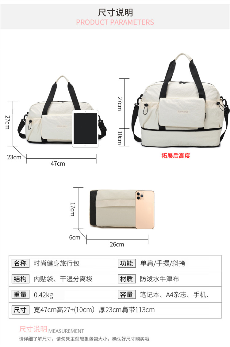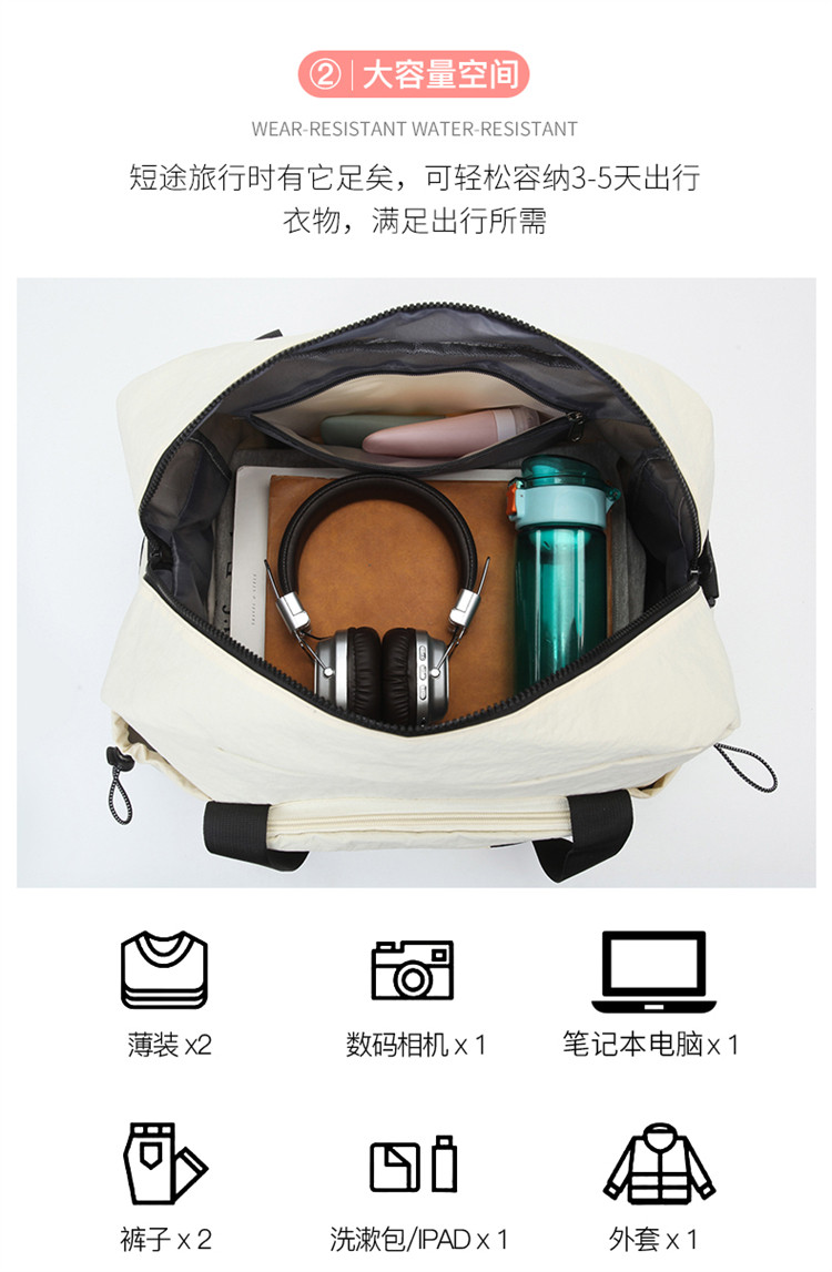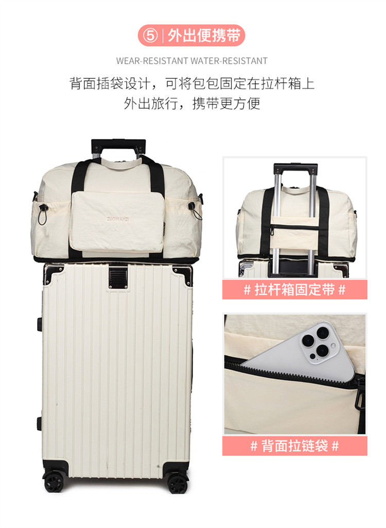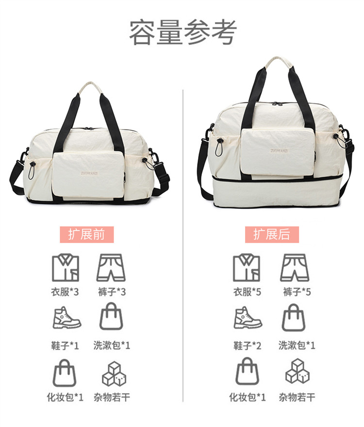 | Color Classification | White [Wet and Dry Separation/Independent Shoe Compartment/Attachable to Trolley Case],Pink [Wet and Dry Separation/Independent Shoe Compartment/Can Be Put on a Trolley Case],Gray [Wet and Dry Separation/Independent Shoe Compartment/Attachable to Trolley Case],Orange [Wet and Dry Separation/Independent Shoe Compartment/Can Be Put on a Trolley Case],Blue [Wet and Dry Separation/Independent Shoe Compartment/Attachable to Trolley Case],Black [Wet and Dry Separation/Independent Shoe Compartment/Attachable to Trolley Case] |