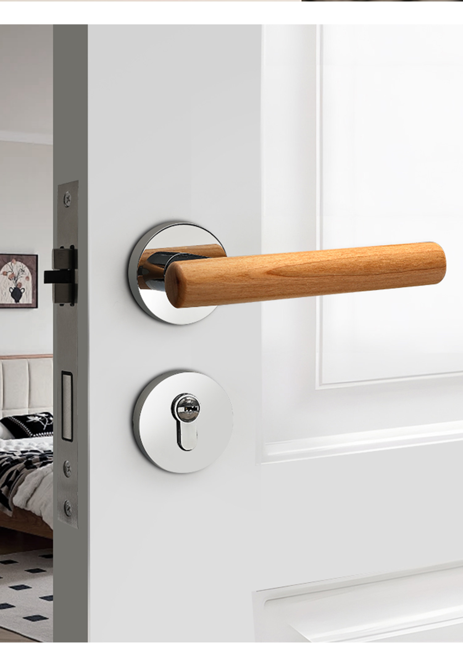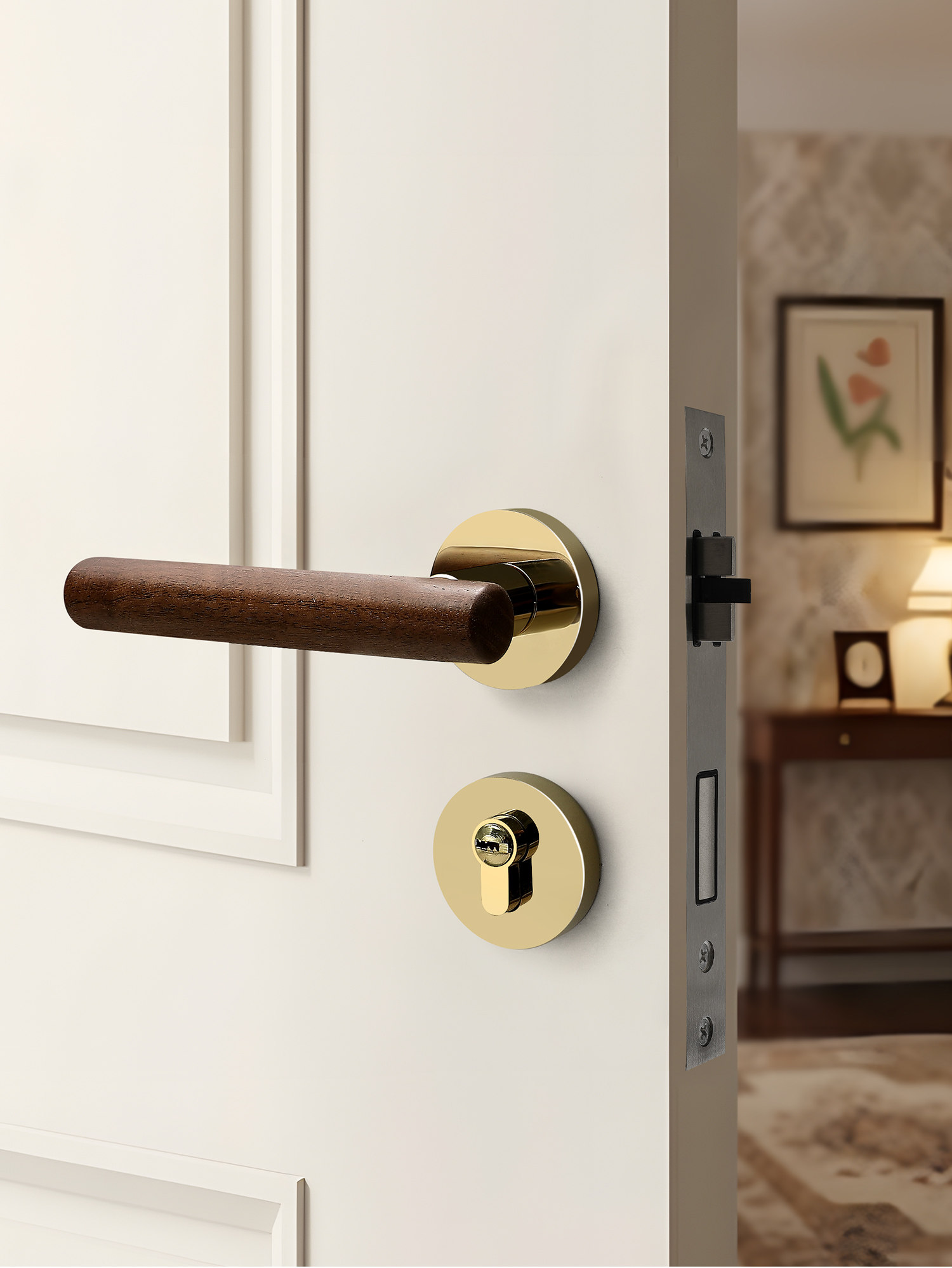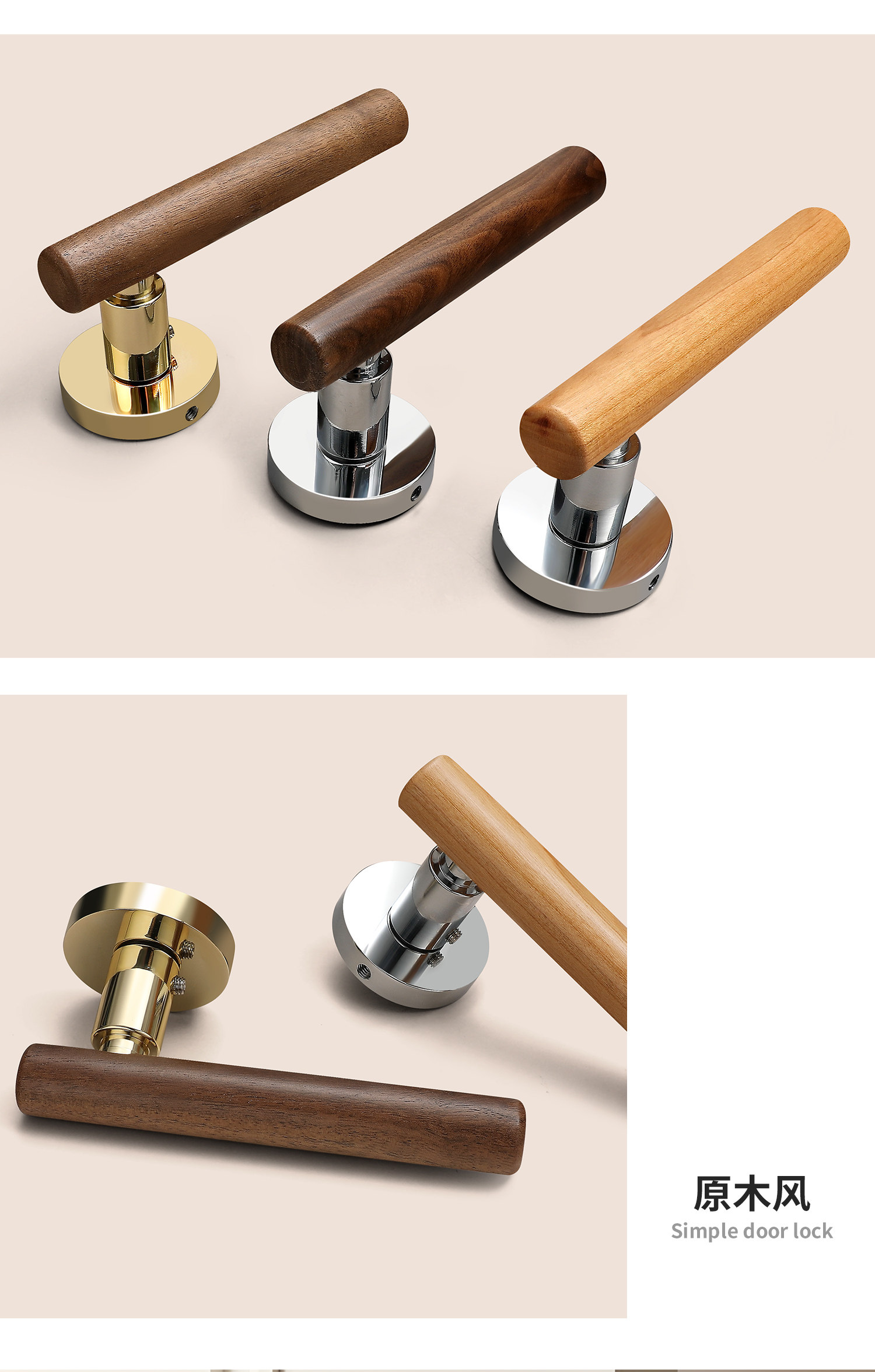 Mu'An Light Luxury French Style Walnut Bedroom Home Door Lock Indoor Wooden Door Magnetic Silent Door Handle
