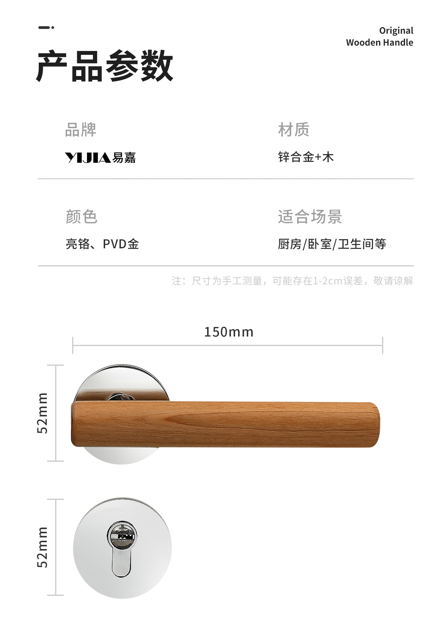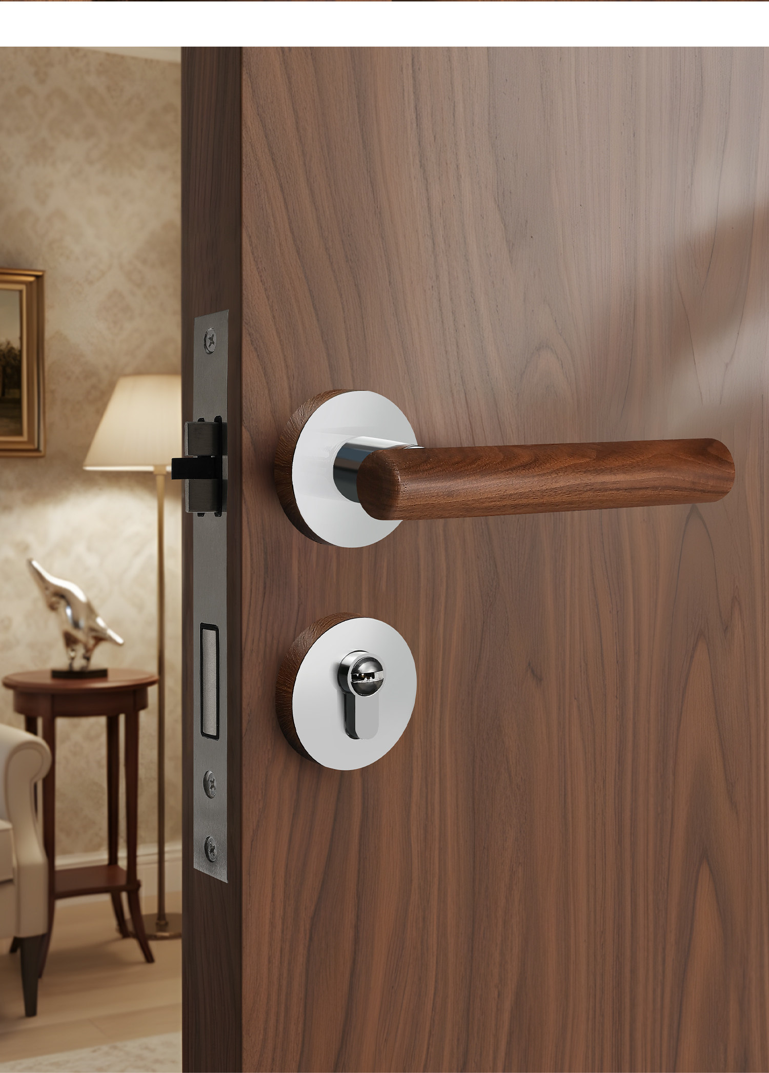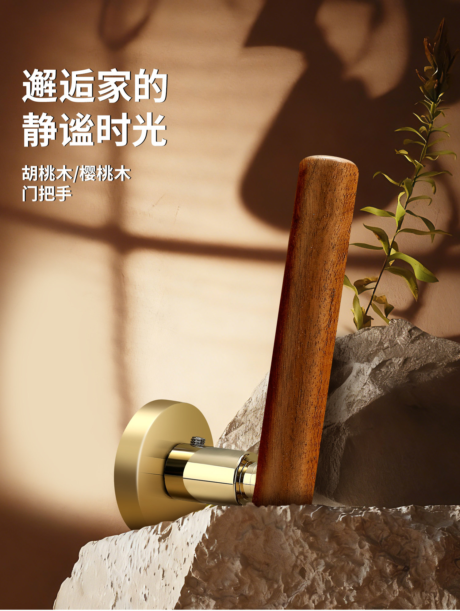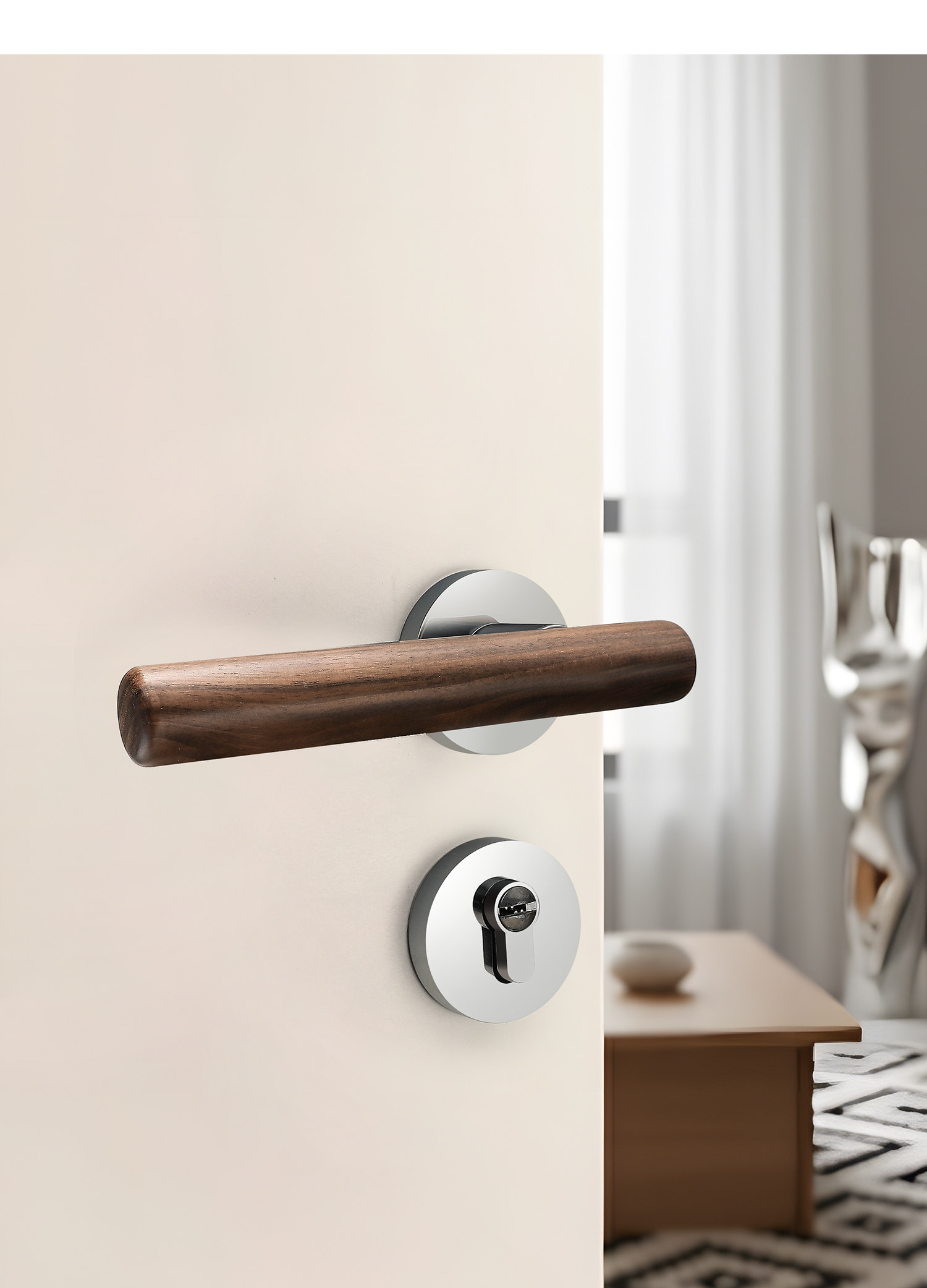Mu'An Light Luxury French Style Walnut Bedroom Home Door Lock Indoor Wooden Door Magnetic Silent Door Handle