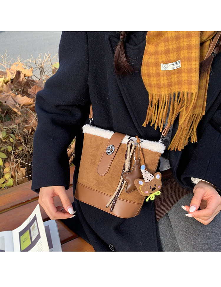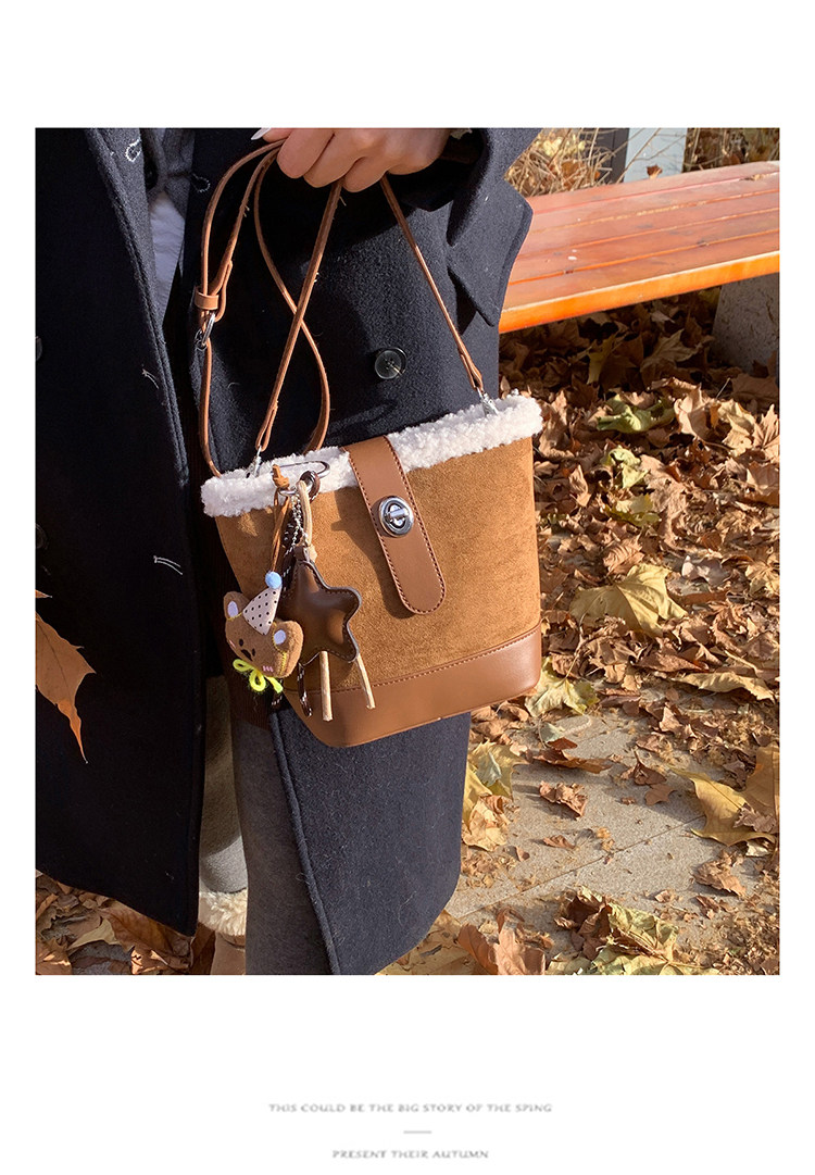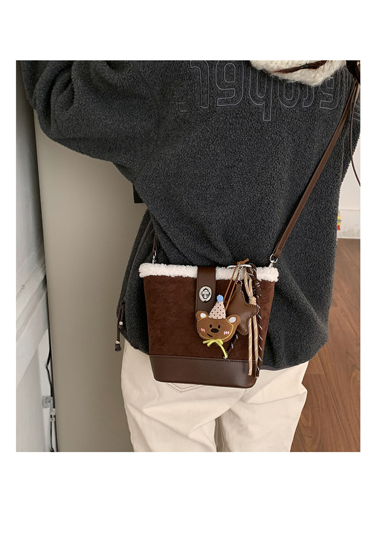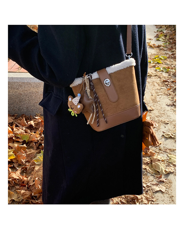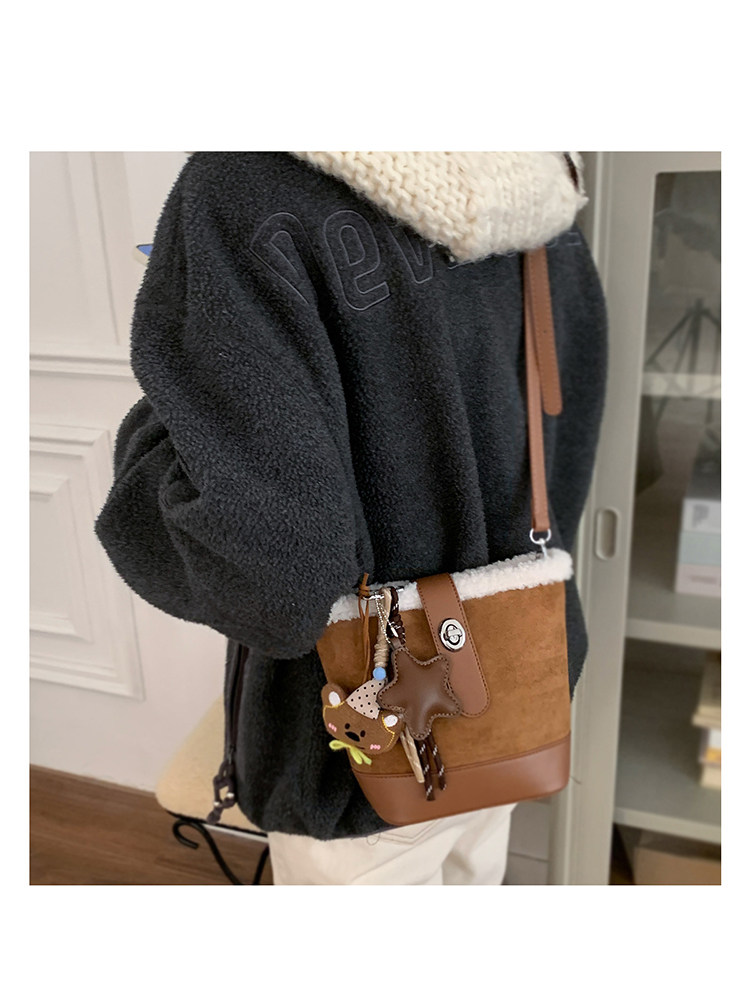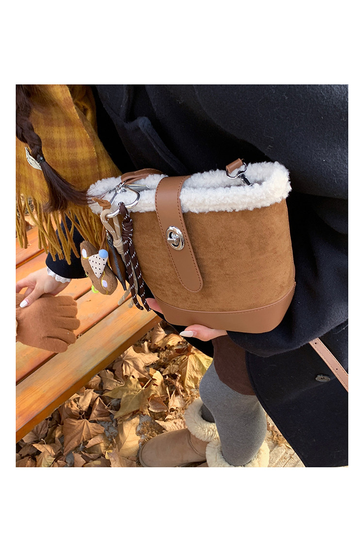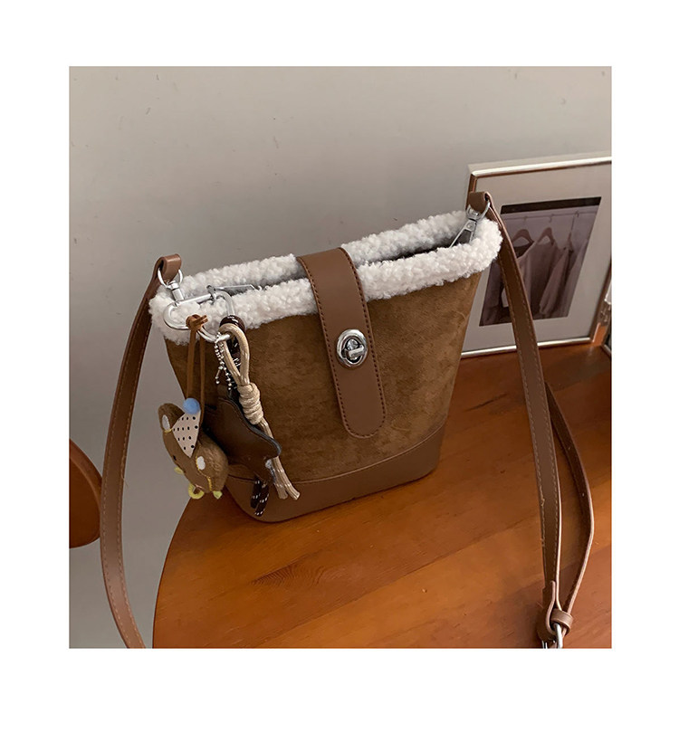 Niche Retro Brown Suede Bucket Bag for Women, Crossbody 2025 New Trendy Fashion Furry Versatile Shoulder Bag