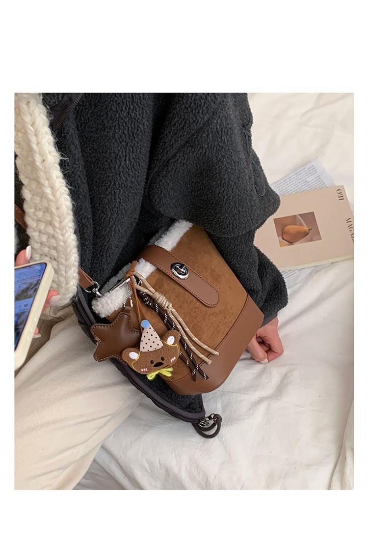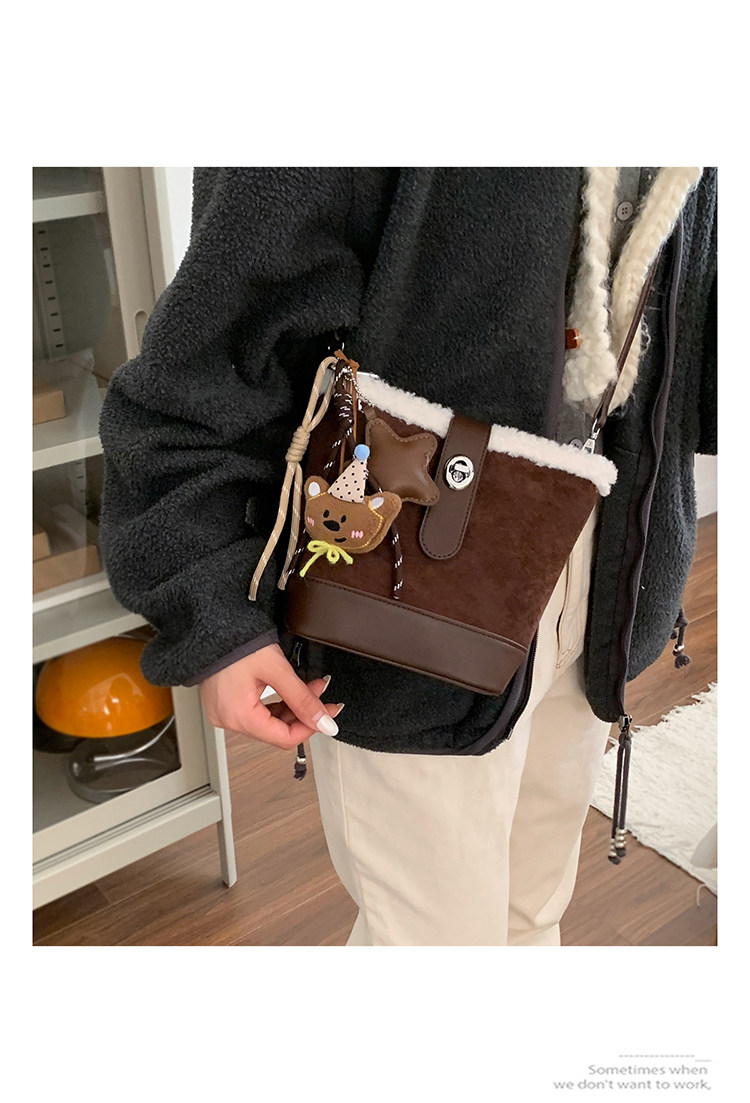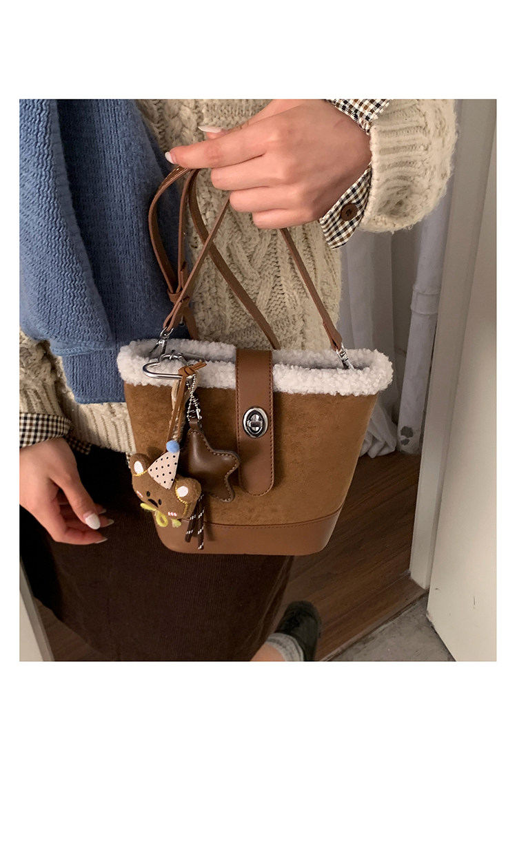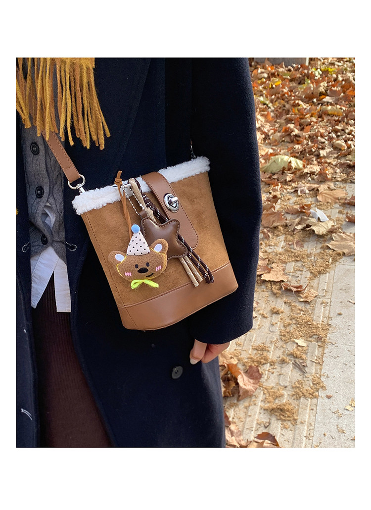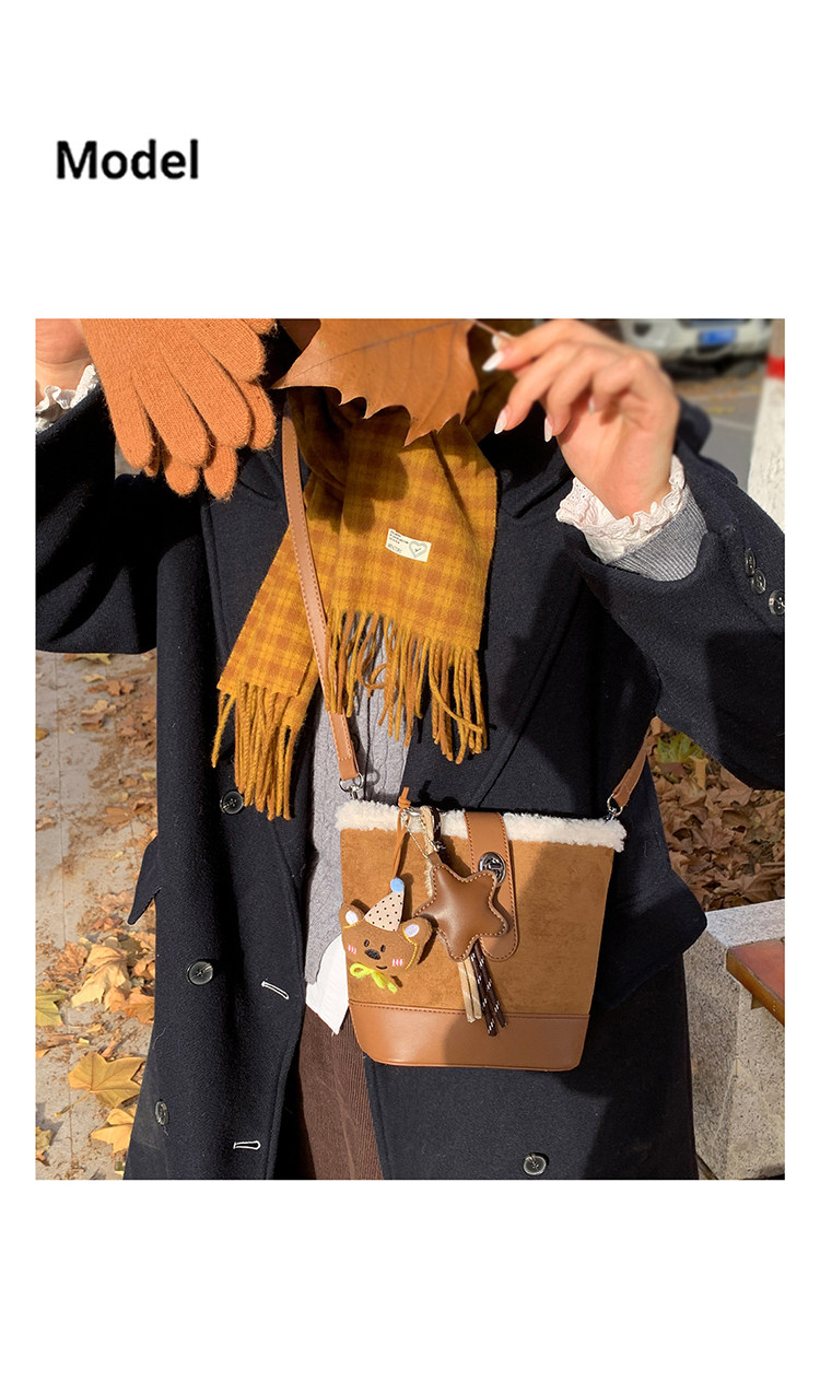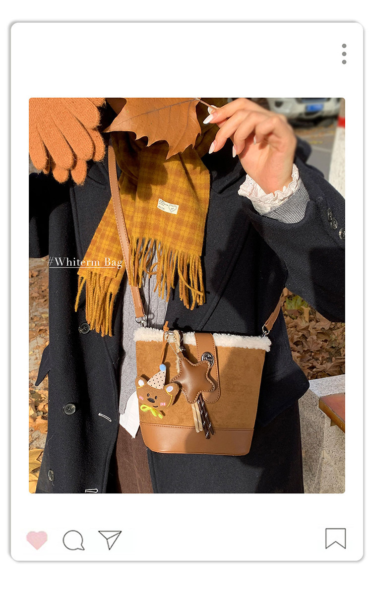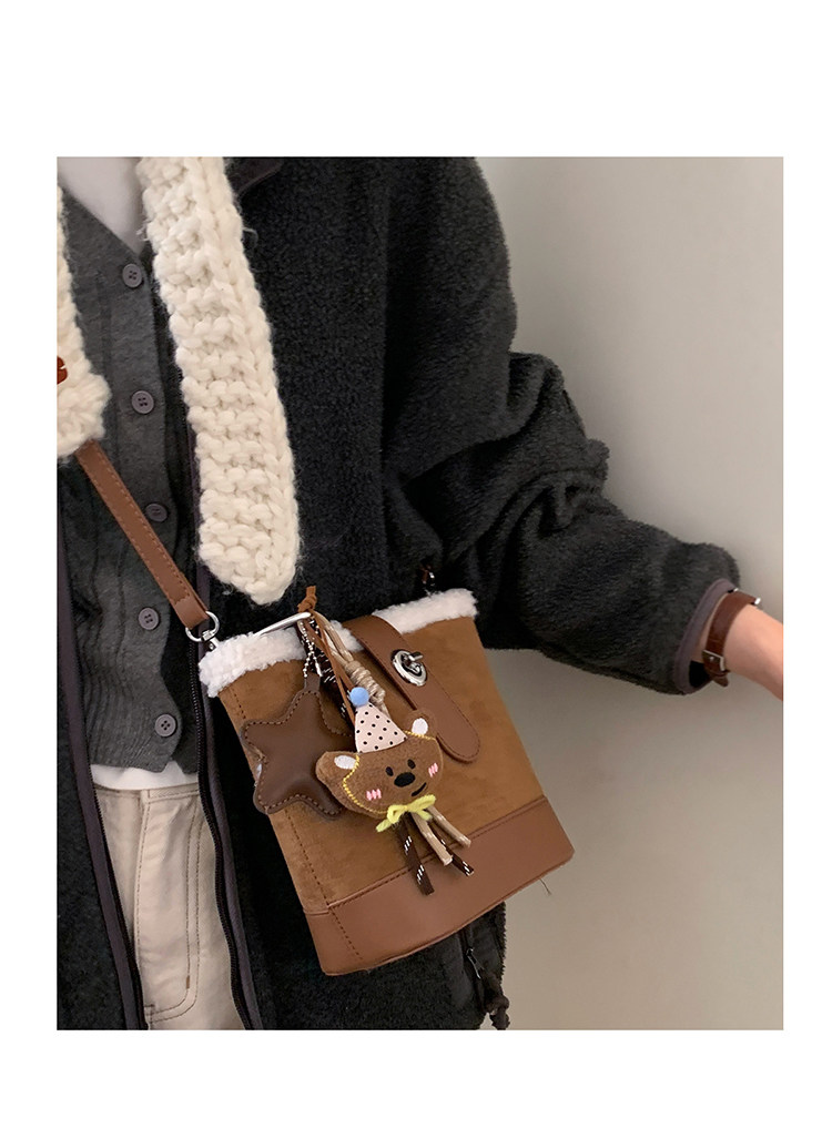 Niche Retro Brown Suede Bucket Bag for Women, Crossbody 2025 New Trendy Fashion Furry Versatile Shoulder Bag