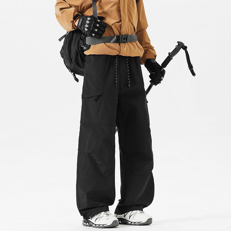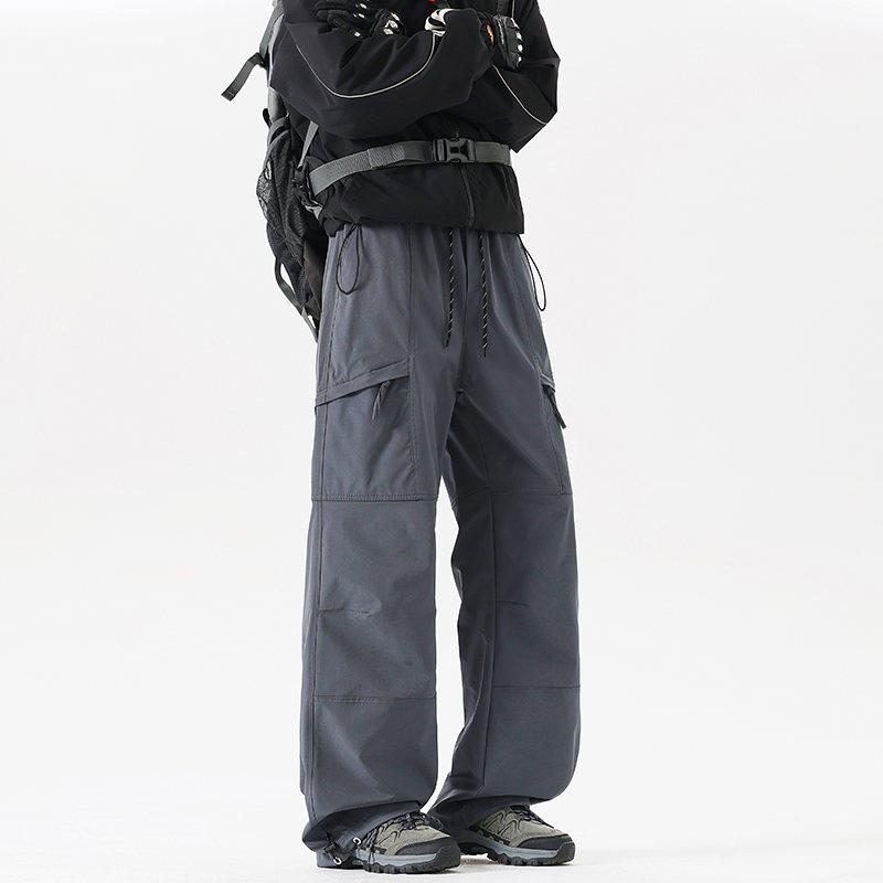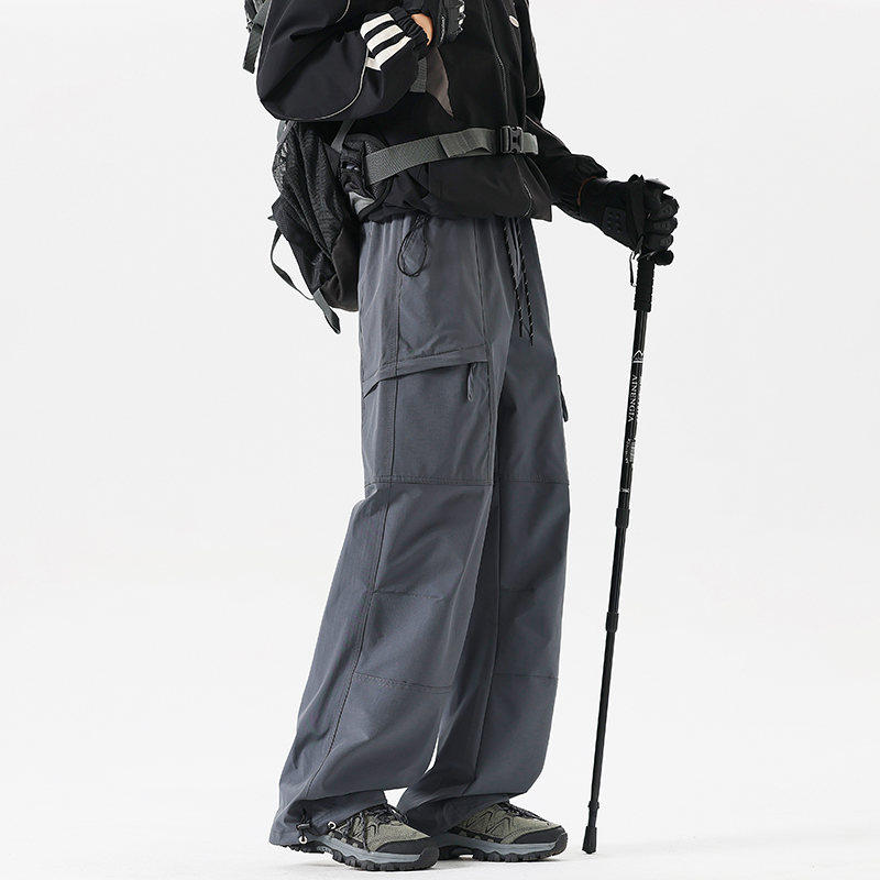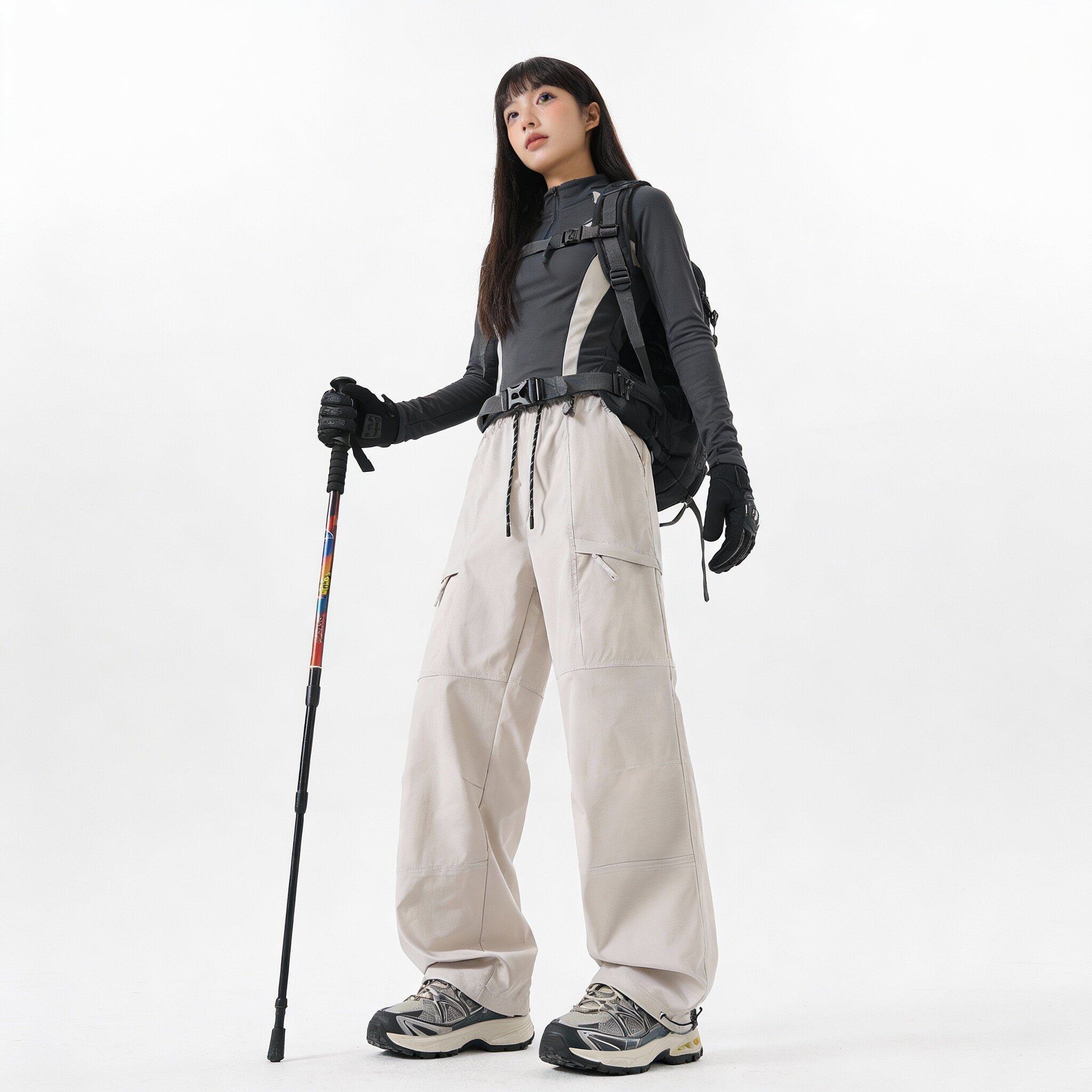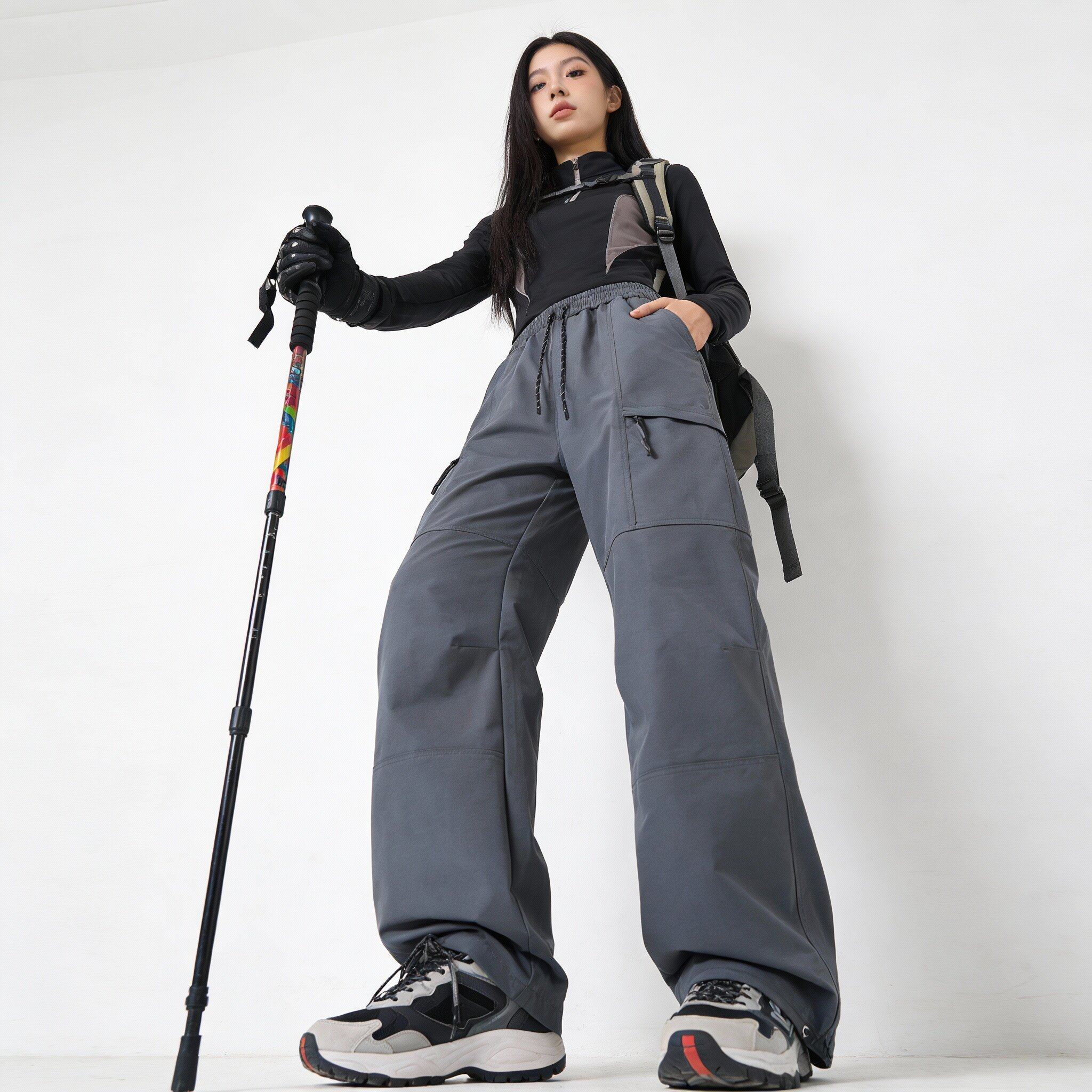 Workwear Style High-Waisted Wide-Leg Pants for Women, Loose and Slimming, Multi-Pocket Outdoor Casual Pants, Straight-Leg Autumn and Winter Hiking Pants, Trendy