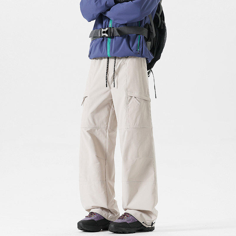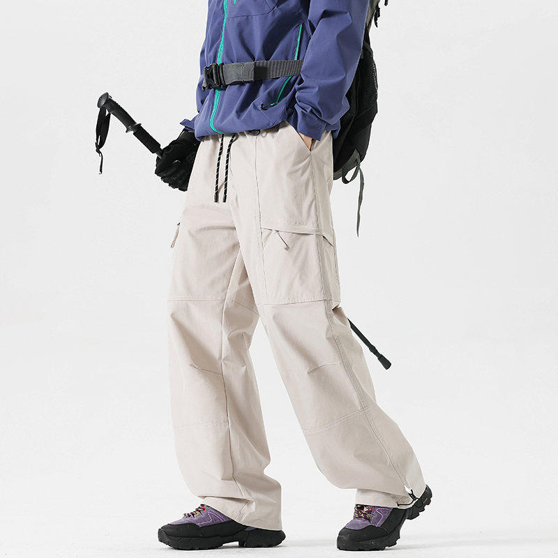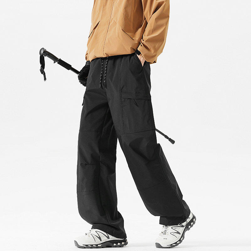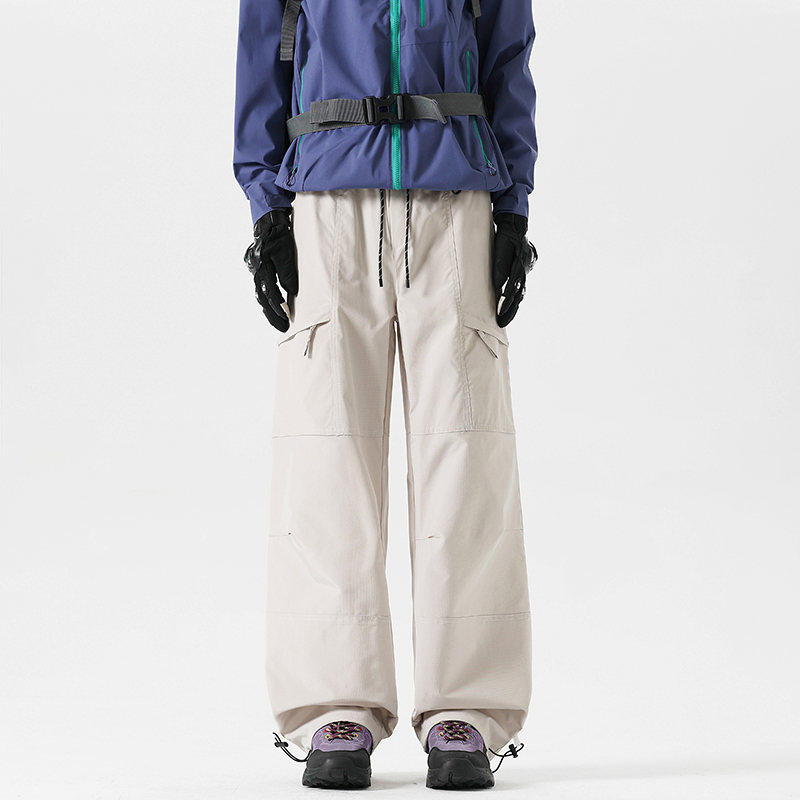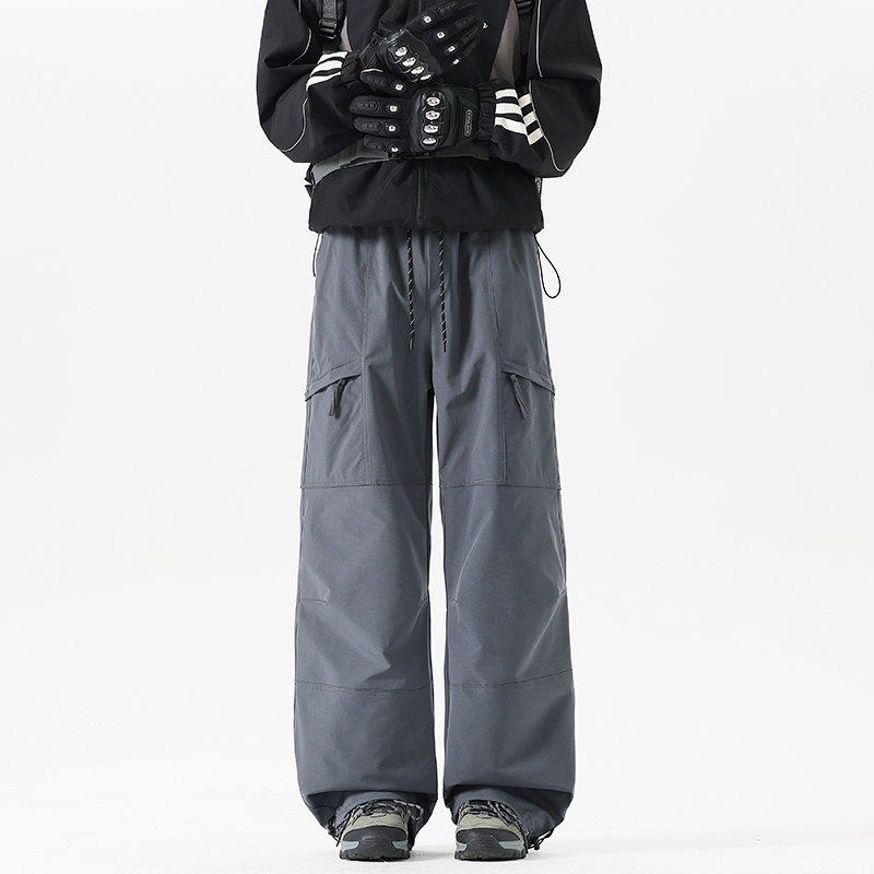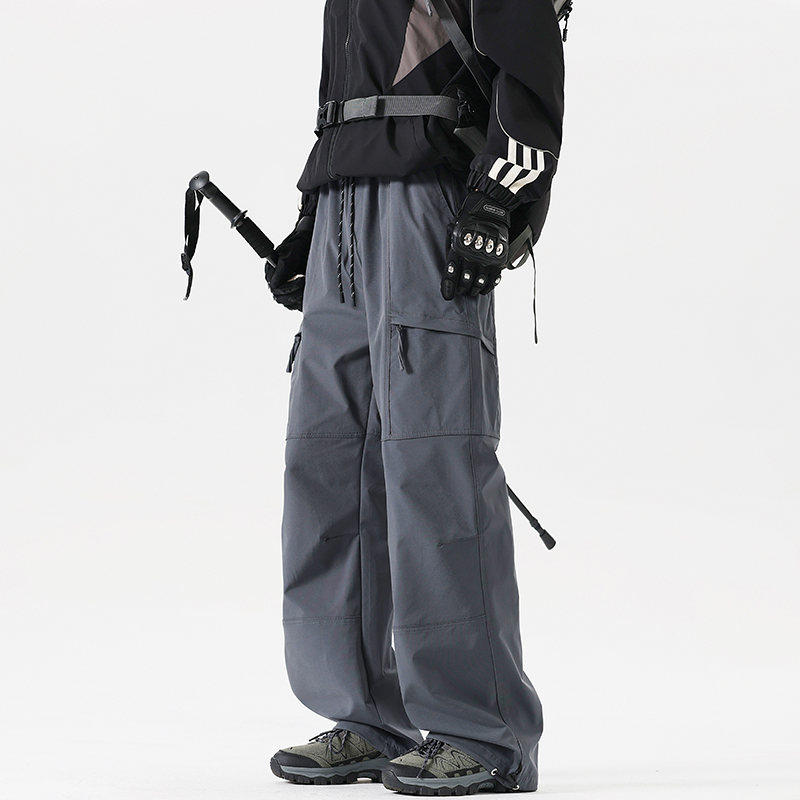 Workwear Style High-Waisted Wide-Leg Pants for Women, Loose and Slimming, Multi-Pocket Outdoor Casual Pants, Straight-Leg Autumn and Winter Hiking Pants, Trendy