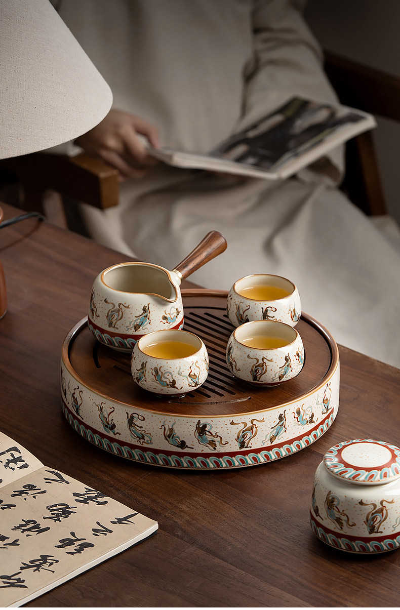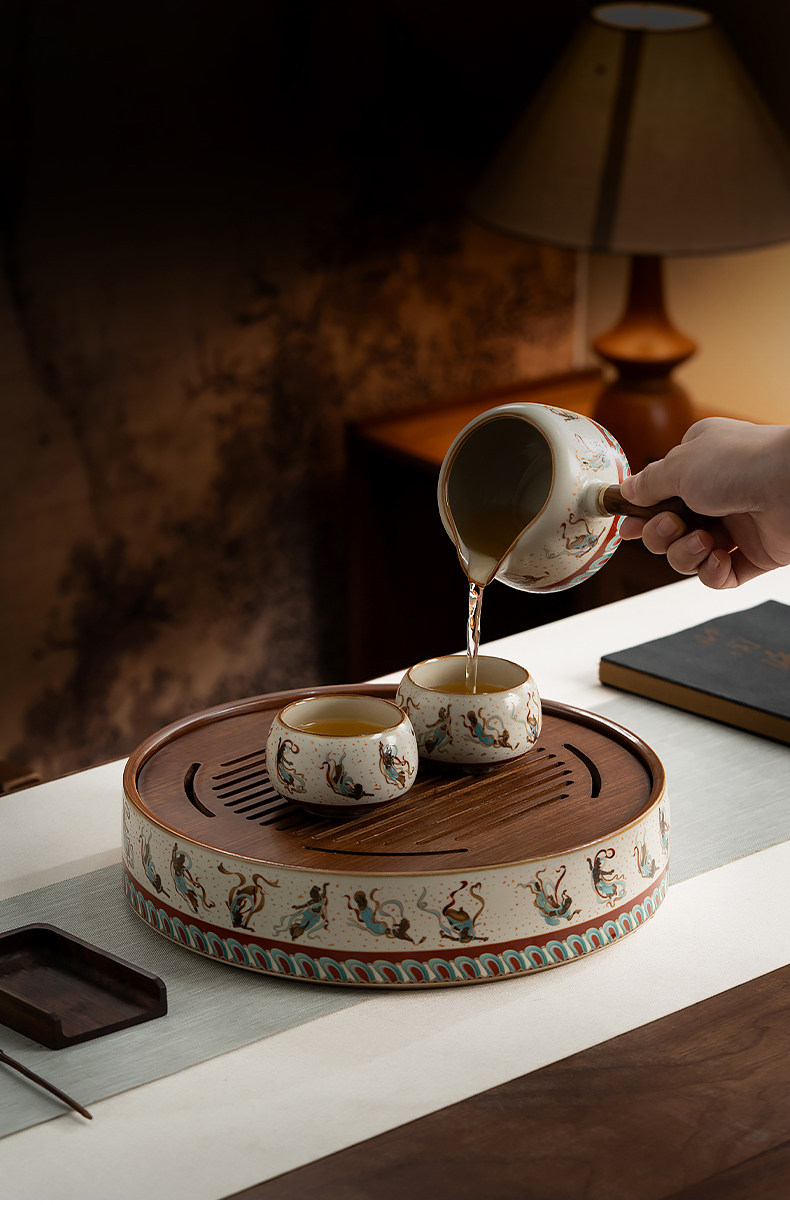 Ru Kiln Dunhuang Flying Fairy Gilded Tea Tray Household Drainage Tray Water Storage Tray Kung Fu Tea Set Dry Brewing Tea Table Ceramic Tea Tray