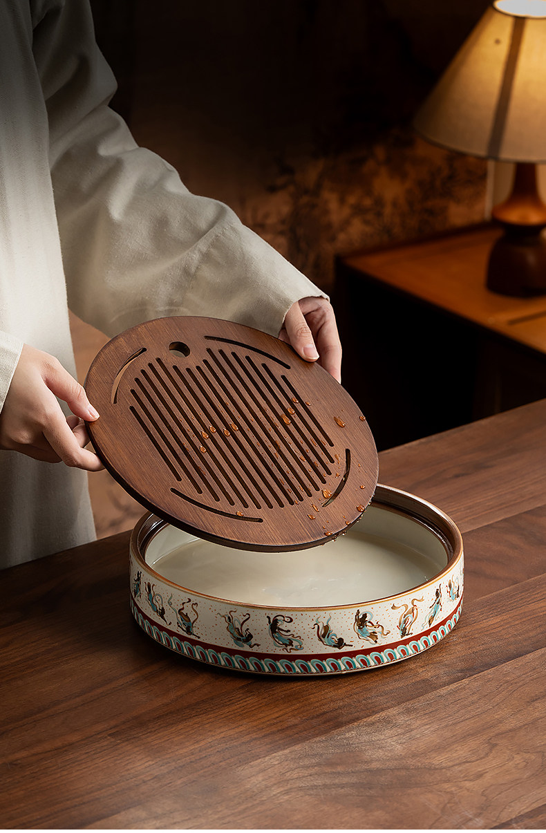 | Color Classification | Ru Kiln Dunhuang Feitian Round Porcelain Tea Tray |