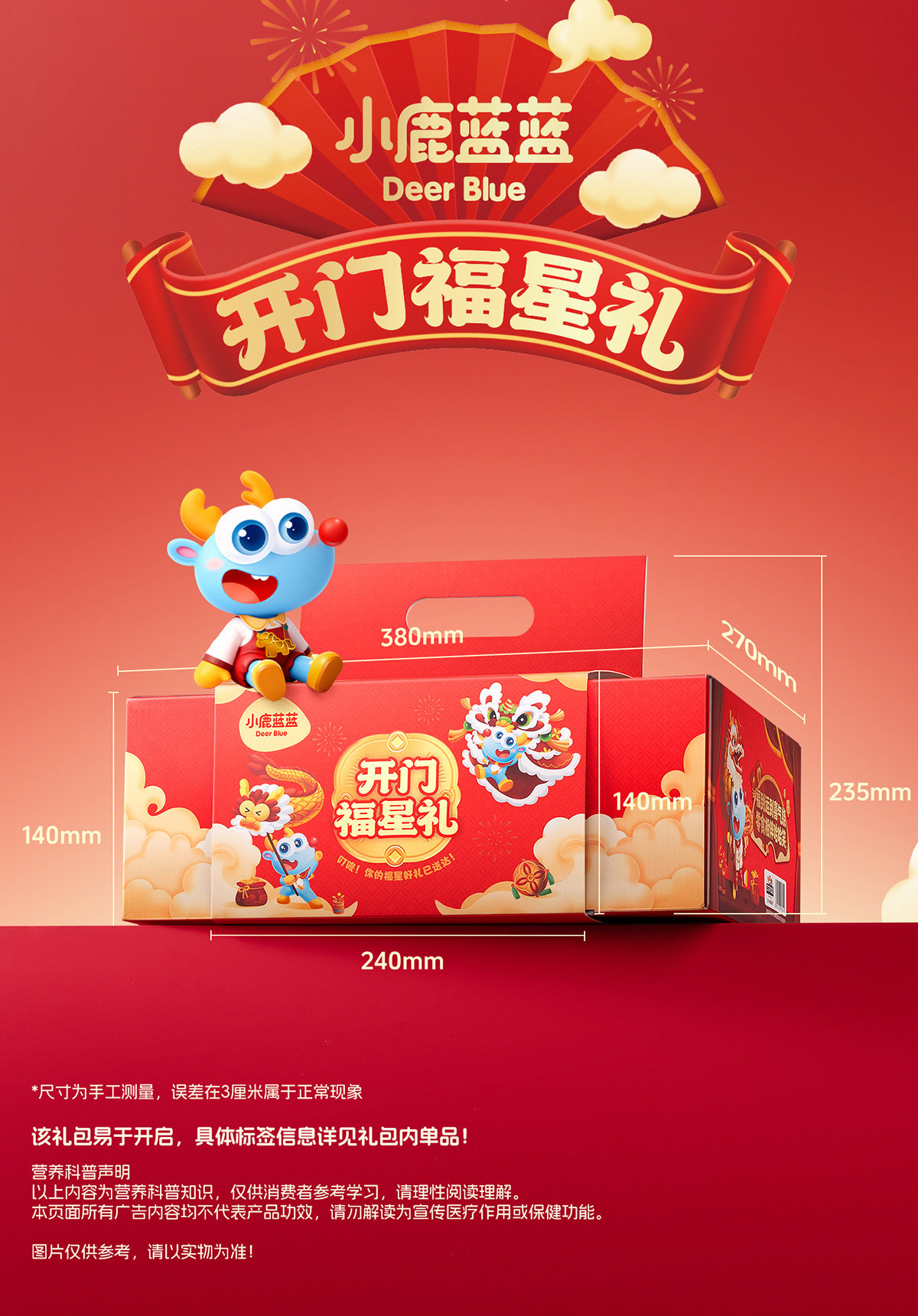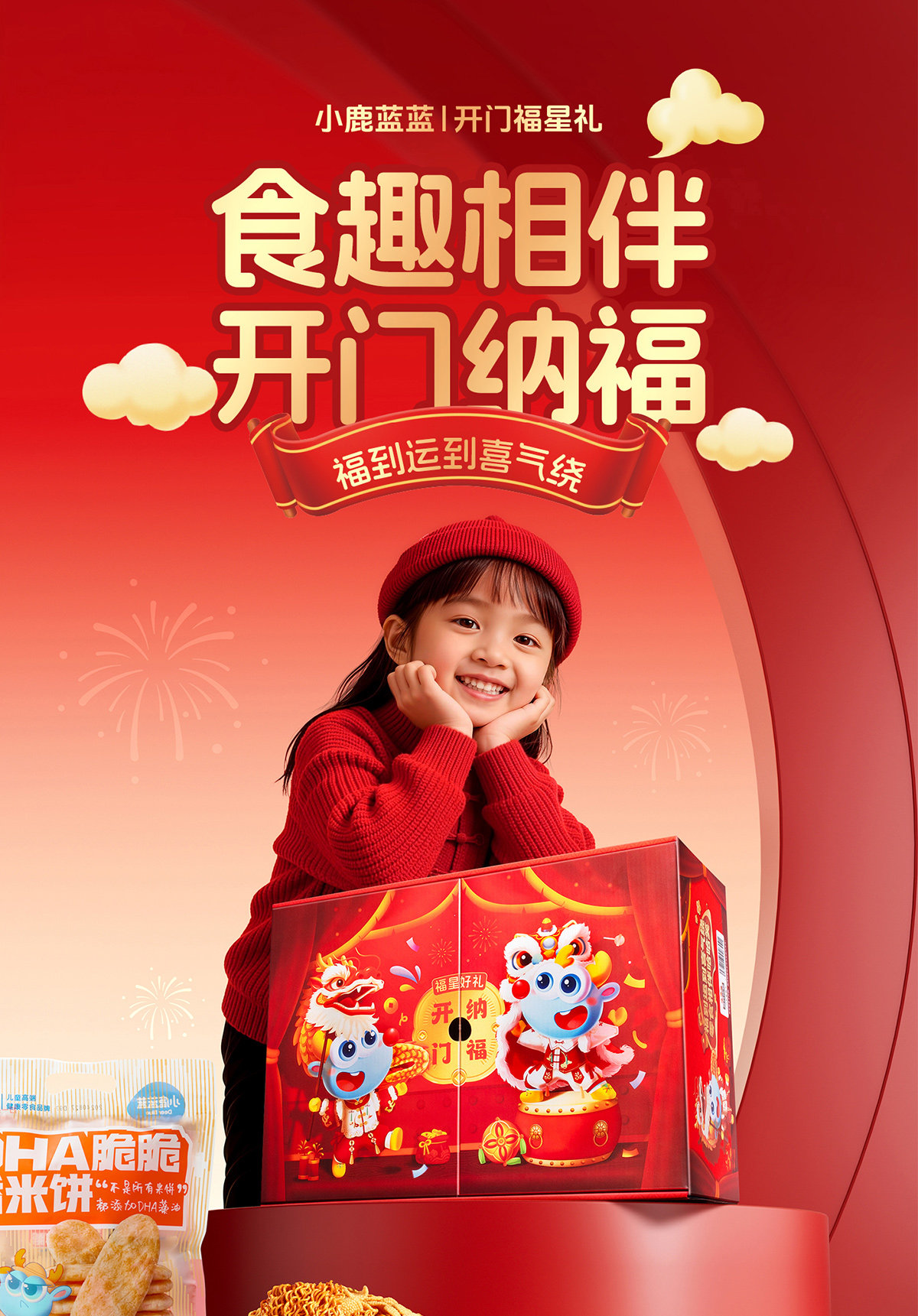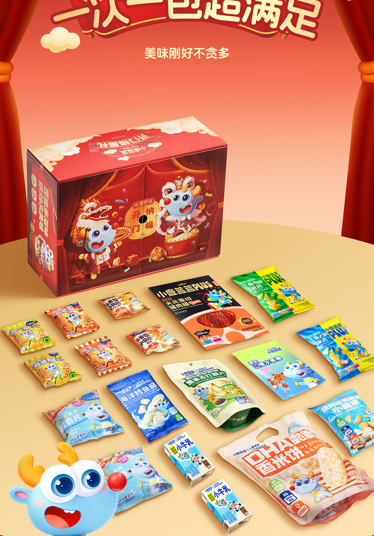 Little Deer Lanlan Snacks Double-Door Box Gift Set Cod Fish Sausage Jerky Calf Milk Children's Snacks New Year Gift Box