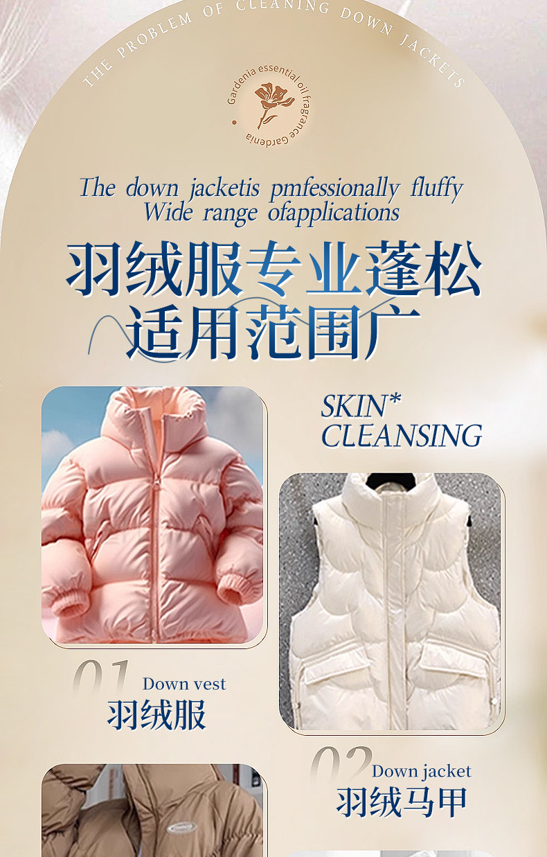 Down Jacket Fluffing Agent, No-Wash, Removes Stubborn Stains, Fluffs and Removes Oil Stains from Clothes, Household Cleaning Agent, Official Product