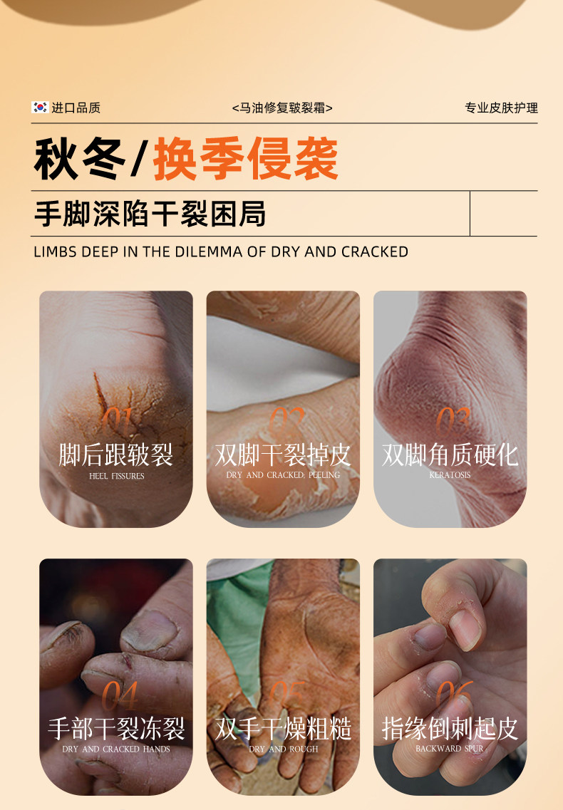 | Scent | [Imported from South Korea | Best-Selling 100W on the Internet] Horse Oil Repairing Crack Cream,[Exclusive for Theaters | Horse Oil Repair Cream for Chapped Skin]⭐Moisturizing/Hand Care/Preventing Dryness,[Second Item Half Price]⭐Repair Dry Cracks⭐Smooth Skin,[the Third Item Is 0 Yuan]⭐Scientific Research Grade Repair⭐Dry and Cracked Hands and Feet,[5 Bottles for Home Stocking] a Must-Have for Autumn and Winter⭐Repair + Maintenance,Real-World Tested: Witness Cinema-Grade First Aid Performance. |