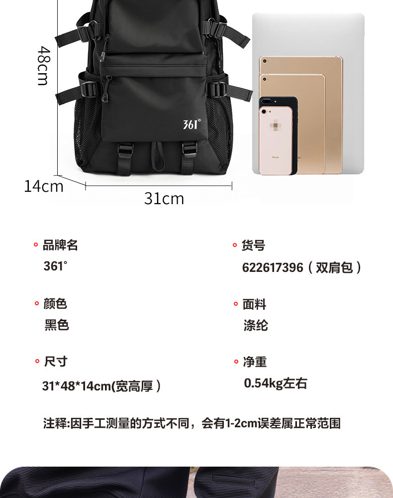 361 Trendy Brand Backpack for Men and Women, Outdoor Commuting Large-Capacity School Bag, College Student Travel Hiking Backpack, Laptop Bag