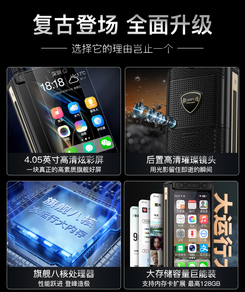 Gionee D999 Classic Flip Phone with Large Buttons for Seniors, Large Screen, Loud Volume, Backup Phone, Black Classic Retro Business Phone