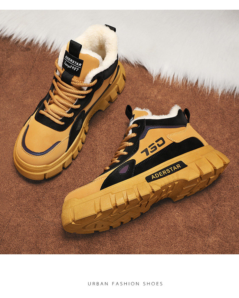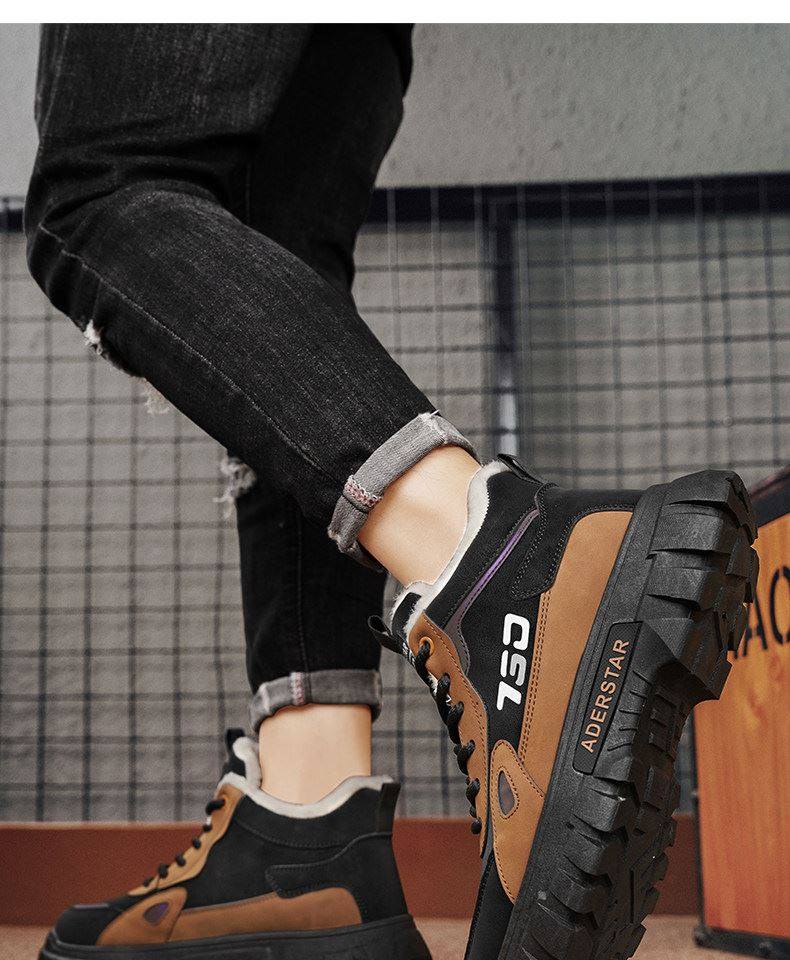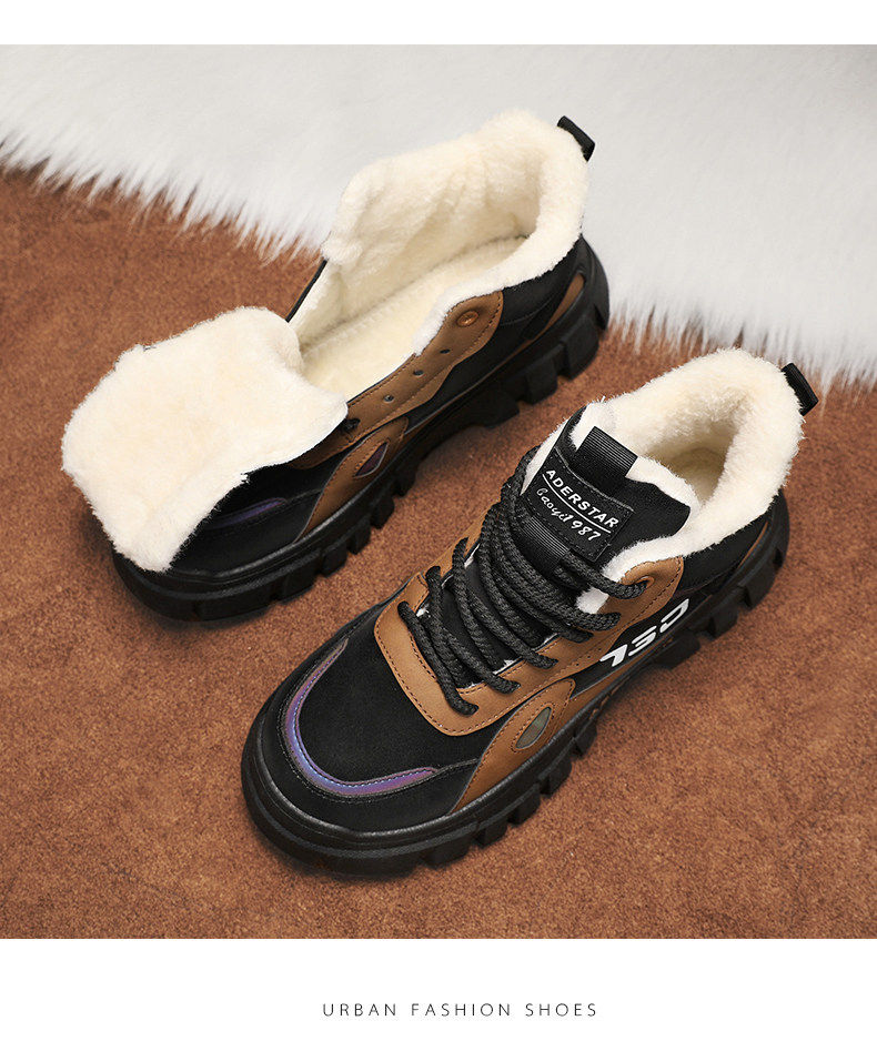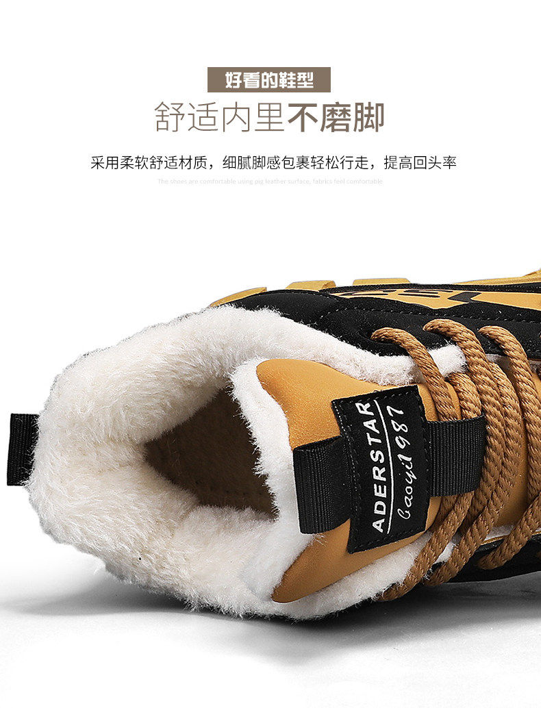 High-Top Men's Shoes, Winter Fleece-Lined, Thickened, Warm, Cold-Proof Snow Boots, Outdoor Hiking, Casual Sports, Martin-Style Large Cotton Shoes
