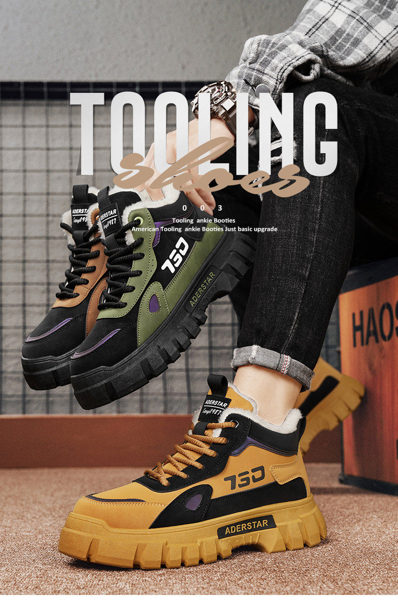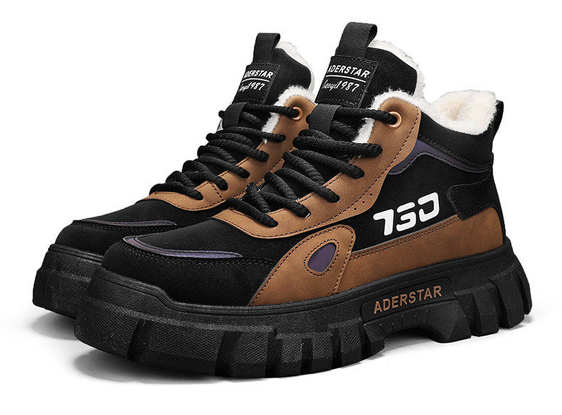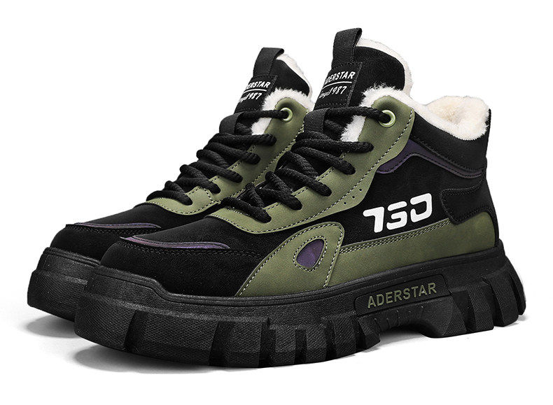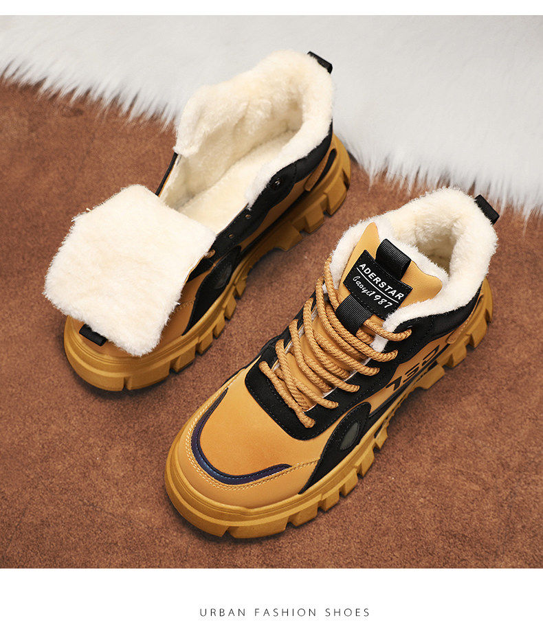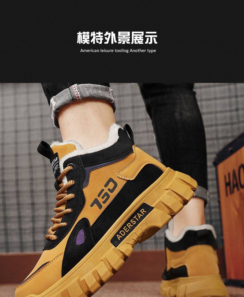 High-Top Men's Shoes, Winter Fleece-Lined, Thickened, Warm, Cold-Proof Snow Boots, Outdoor Hiking, Casual Sports, Martin-Style Large Cotton Shoes