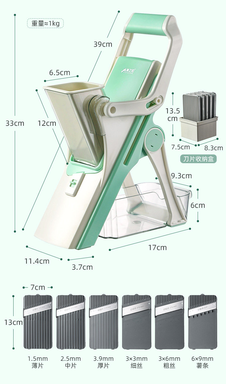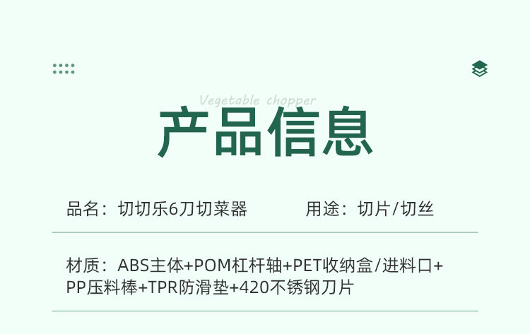 | Color Classification | 6-Blade Chopping Fun: Your All-In-One Solution for Cutting Vegetables and Meat! |