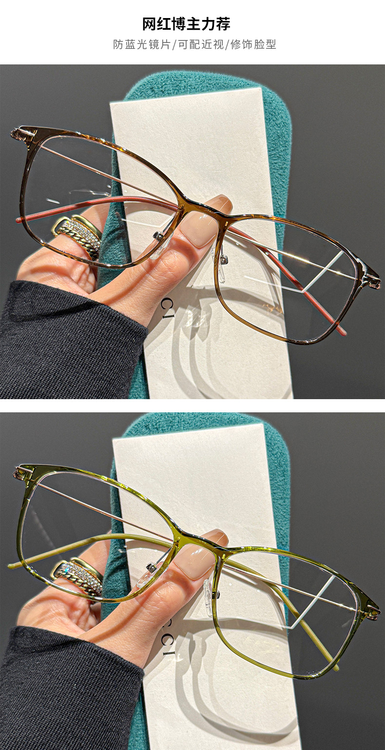 Artistic Cool Tea-Colored Titanium Eyeglasses for Women with Myopia, Suitable for Square and Round Faces, Slimming, Ultra-Light 6g Eyeglass Frame