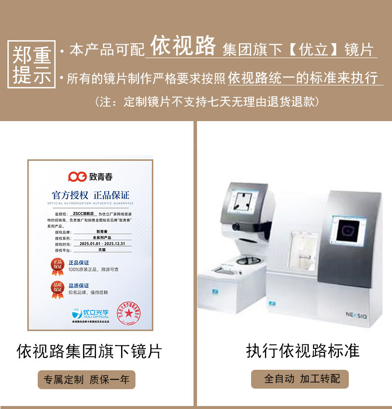 | Lens Refractive Index | Frame + 0-Degree Anti-Blue Light Lenses [Can Be Tried on for 7 Days and Can Be Returned or Exchanged Without Any Reason],Frame + 1.56 Anti-Blue Light Radiation Lens [Suitable for 0-300 Degrees],Frame + 1.61 Anti-Blue Light Radiation Lens [Suitable for 0-500 Degrees],Frame + 1.67 Anti-Blue Light Radiation Lens [Suitable for 0-800 Degrees],Frame + 1.74 Anti-Blue Light Radiation Lens [Suitable for 0-1200 Degrees],Frame + 1.56 Aspherical Radiation-Proof Lens [Suitable for 0-300 Degrees],Frame + 1.61 Aspherical Anti-Radiation Lens [Suitable for 0-500 Degrees],Frame + 1.67 Aspherical Radiation-Proof Lens [Suitable for 0-800 Degrees],Frame + 1.74 Aspherical Anti-Radiation Lens [Suitable for 0-1200 Degrees],Equipped with [Essilor] Yuli 1.56 Multi-Screen Anti-Blue Light Lenses [Suitable for 0-300],Equipped with [Essilor] Yuli 1.60 Multi-Screen Anti-Blue Light Lenses [Suitable for 0-500],Equipped with [Essilor] Yuli 1.67 Multi-Screen Anti-Blue Light Lenses [Suitable for 0-800],Equipped with [Essilor] Yuli 1.74 Multi-Screen Anti-Blue Light Lenses [Suitable for 0-1200],Equipped with [Essilor] Yuli 1.56 Daily Anti-Radiation Lenses [Suitable for 0-300],Equipped with [Essilor] Yuli 1.60 Daily Anti-Radiation Lenses [Suitable for 0-500],Equipped with [Essilor] Yuli 1.67 Daily Anti-Radiation Lenses [Suitable for 0-800],Equipped with [Essilor] Yuli 1.74 Daily Radiation-Proof Lenses [Suitable for 0-1200],↓[Photochromic Lenses]↓Sun Protection and Uv Protection↓,Frame + [Grey/Tea] 1.56 Anti-Blue Light and Anti-Uv Lenses [Suitable for 0-300],Frame + [Grey/Tea] 1.61 Anti-Blue Light and Anti-Uv Lenses [Suitable for 0-500],Frame + [Grey/Tea] 1.67 Anti-Blue Light and Anti-Uv Lenses [Suitable for 0-800],Frame + [Grey/Tea] 1.74 Anti-Blue Light and Anti-Uv Lenses [Suitable for 0-1200],↓【Authentic Zeiss Licensed Product】↓ Get 10X Your Money Back if It's Fake! Lens Packaging Included.,Equipped with [Zeiss Vision] 1.56 High-Definition Aspherical [Applicable to 0-300 Degrees],Equipped with [Zeiss Vision] 1.60 High-Definition Aspherical [Applicable to 0-500 Degrees],Equipped with [Zeiss Vision] 1.67 High-Definition Aspherical [Applicable to 0-800 Degrees],Equipped with [Zeiss Vision] 1.56 High-Definition Anti-Blue Light [Applicable to 0-300 Degrees],Equipped with [Zeiss Vision] 1.60 High-Definition Anti-Blue Light [Applicable to 0-500 Degrees],Equipped with [Zeiss Vision] 1.67 High-Definition Anti-Blue Light [Applicable to 0-800 Degrees] |