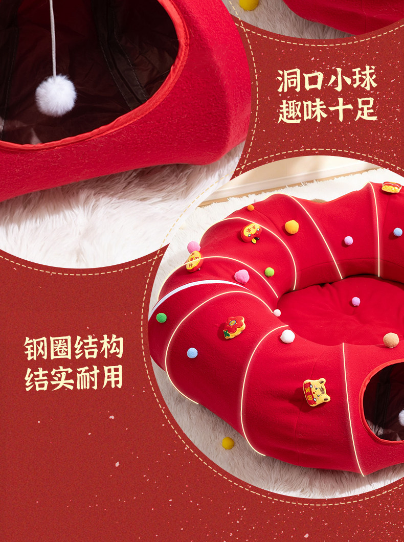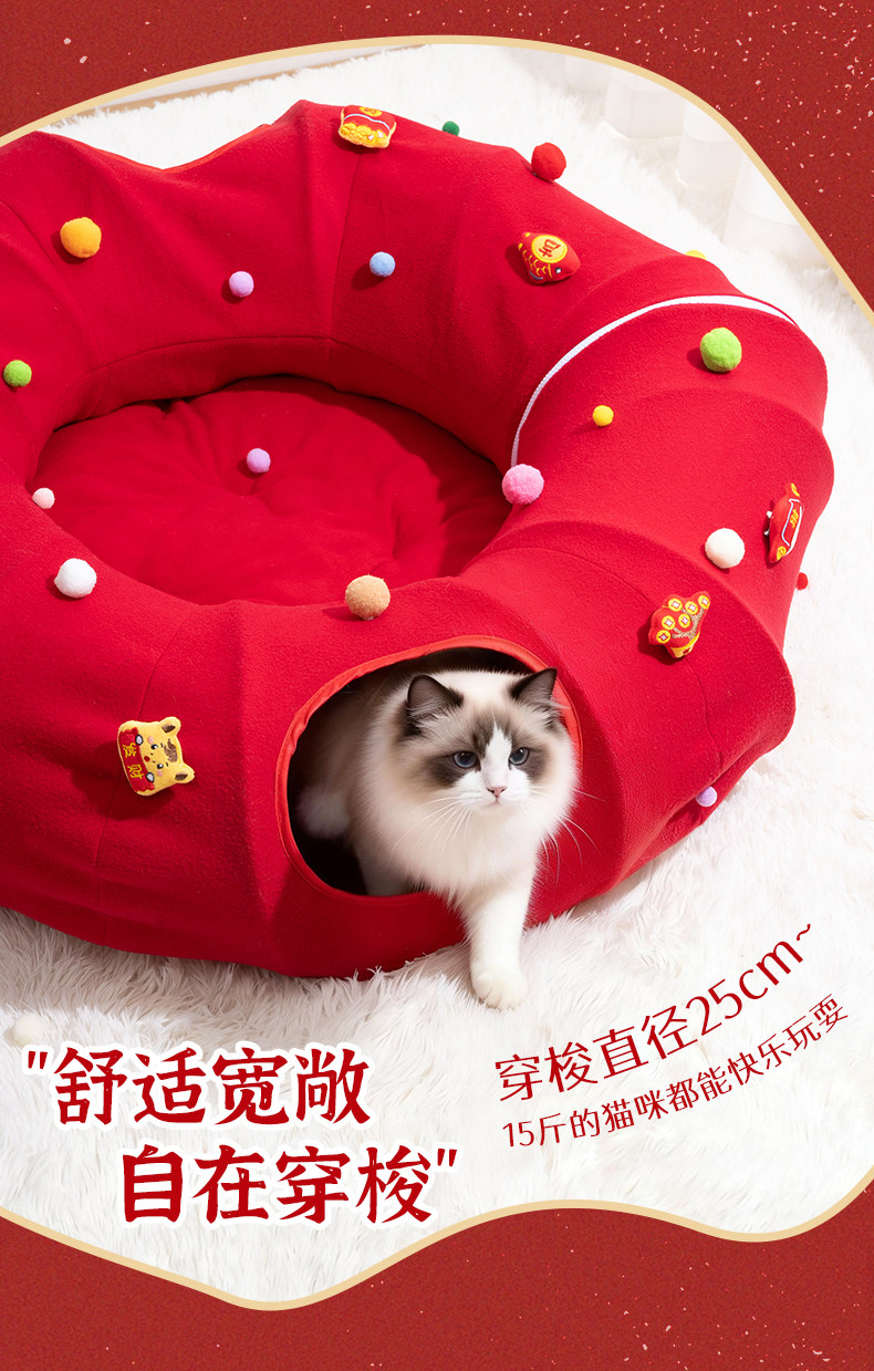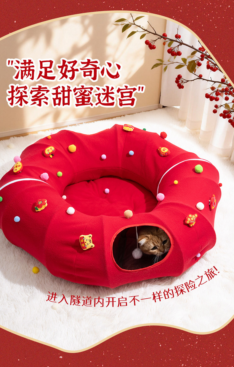 New Year Limited Edition | Cat Tunnel Cat House Enclosed Cat Tunnel Hideaway Foldable Cat Toy Gift for All Seasons