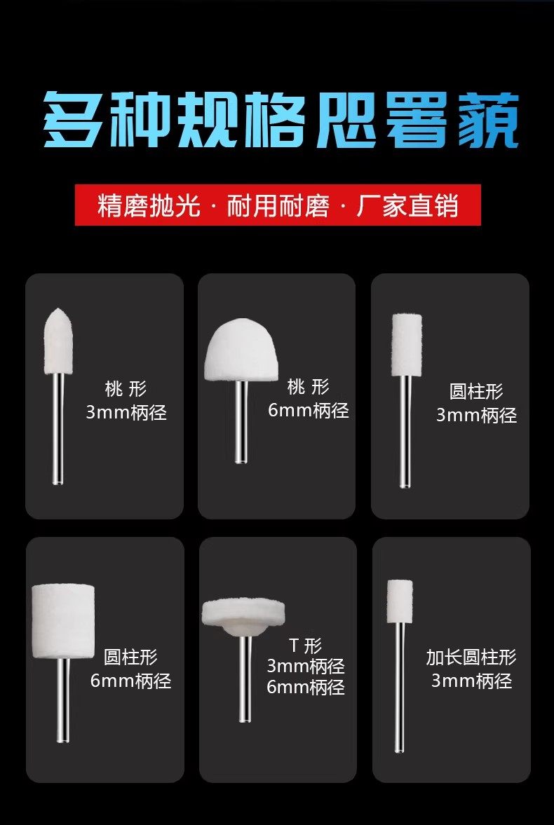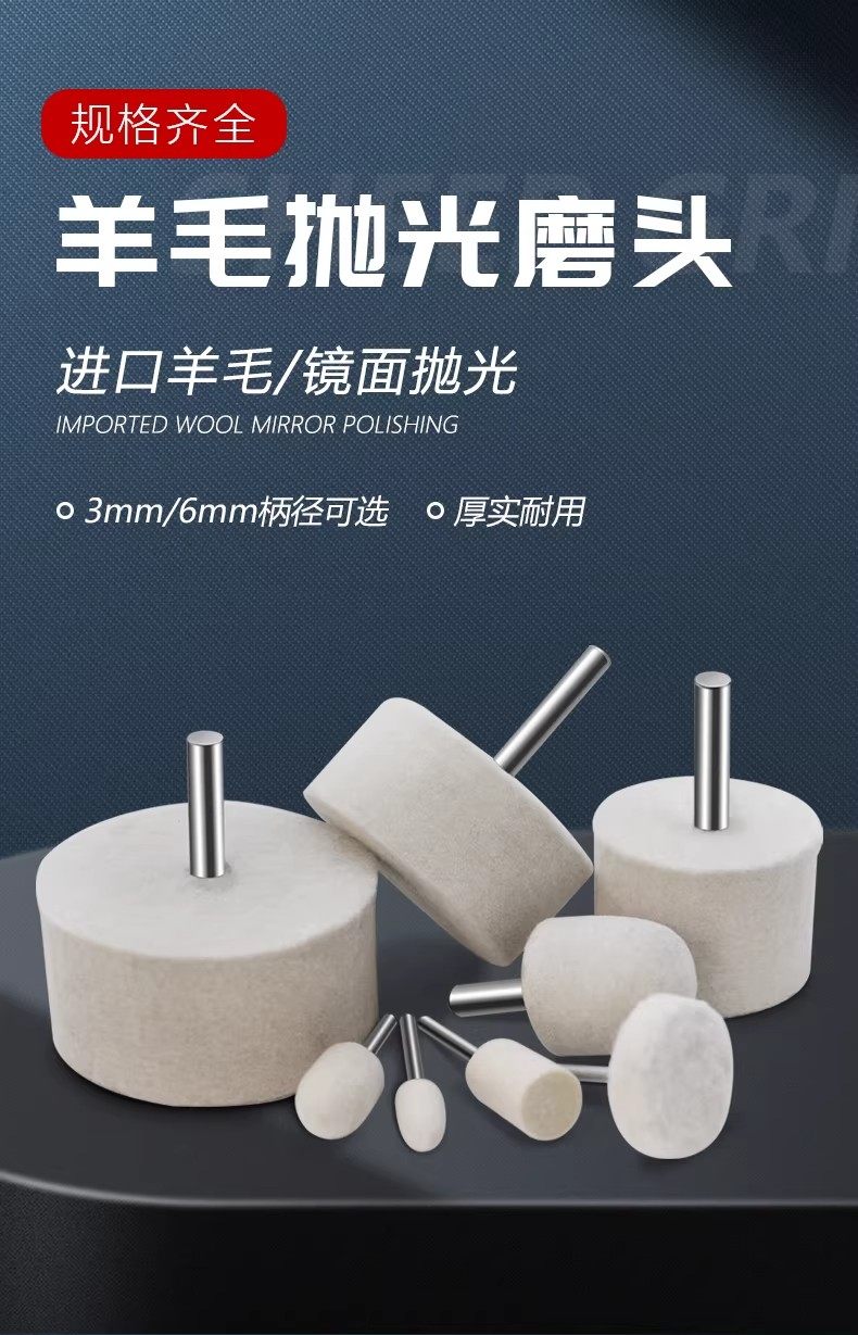 Wool Polishing and Grinding Head with Handle, Wool Wheel Polishing Ball, Mirror Surface, Jade, Metal, Jadeite Tool, Polishing Magic Tool