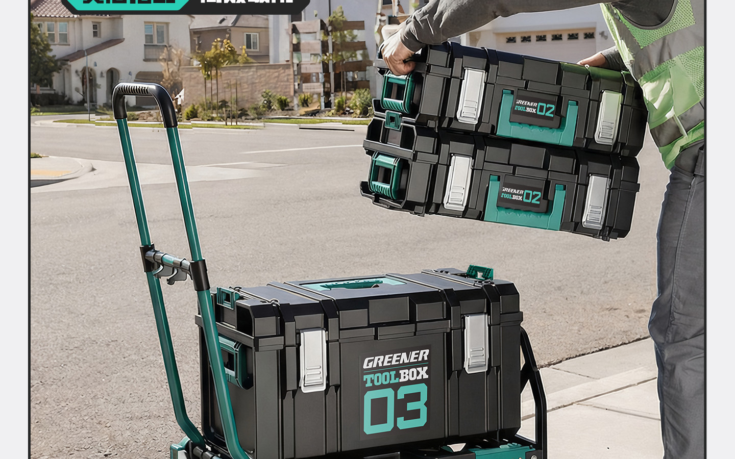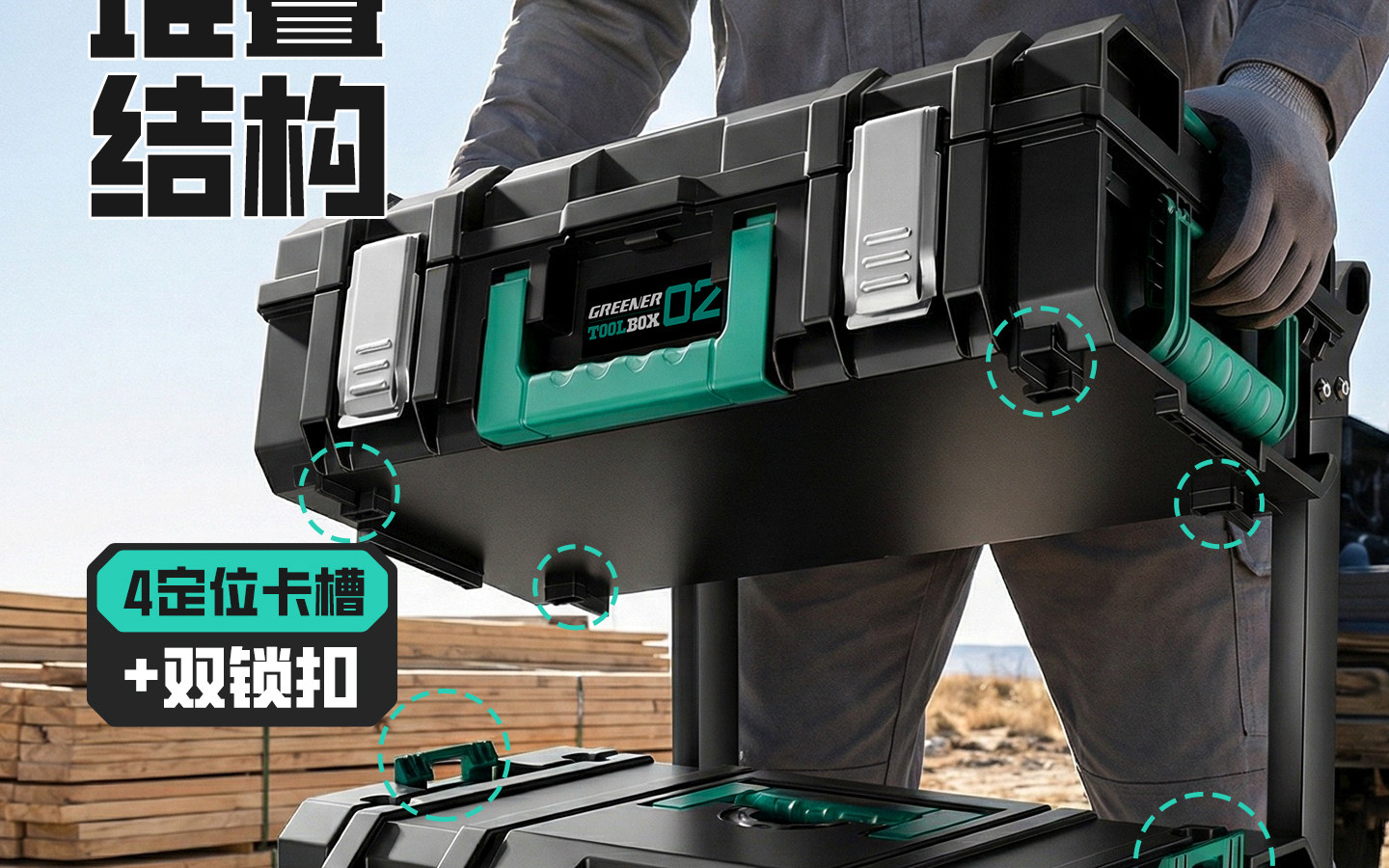 Green Forest Stacking Box Large-Capacity Modular Hardware Tool Box Storage Box Multi-Functional Industrial-Grade Set Trolley Box